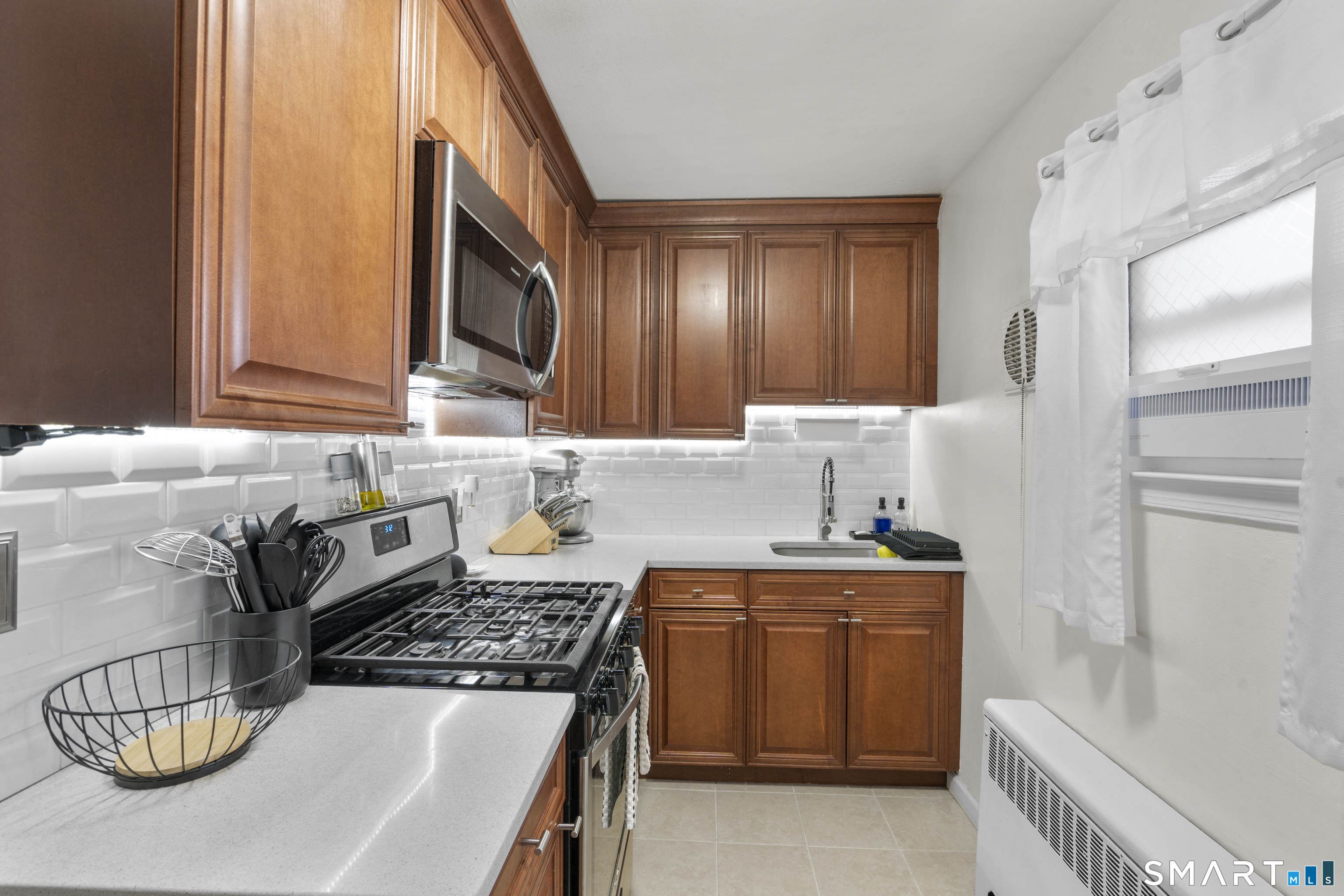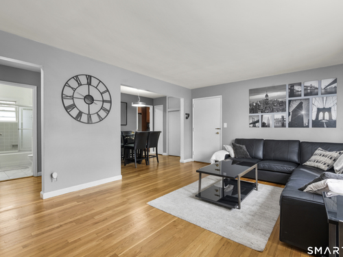 Welcome to this well-maintained Co-Op located in the desirable Strawberry Hill area of Stamford. This mid-rise unit offers a comfortable layout featuring 2 bedrooms and 1 full bathroom, all on a single level for convenient living. The interior includes a spacious living room and bedrooms with hardwood flooring, along with a kitchen equipped with quartz countertops, providing both functionality and style. With approximately 900 square feet of living space, this unit is designed to maximize comfort and efficiency. Situated within the Hampshire House complex, this property offers access to common laundry facilities and professionally managed grounds. Heat, hot water, and other essential services are included in the common charges, adding value and convenience. The location provides easy access to nearby shopping, dining, public transportation, and major roadways, making it ideal for a variety of lifestyles. Whether you are looking for a primary residence instead of renting, this unit presents a great option in a well-established community.