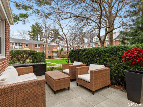 Nestled within the Putnam Park community in the heart Greenwich, this sun-drenched 2-bedroom, 2-bathroom co-op offers effortless, single-level living in a serene, park-like setting. Spanning over 1,200 square feet, the residence features three exposures, filling the home with natural light throughout the day. The open floor plan creates a seamless flow between living and dining spaces, complemented by an updated kitchen outfitted with stainless steel appliances--ideal for both everyday living and entertaining. Thoughtfully renovated bathrooms add a modern touch, while an oversized in-unit washer and dryer provide everyday convenience. Step outside to a private bluestone terrace--perfect for morning coffee or evening relaxation.