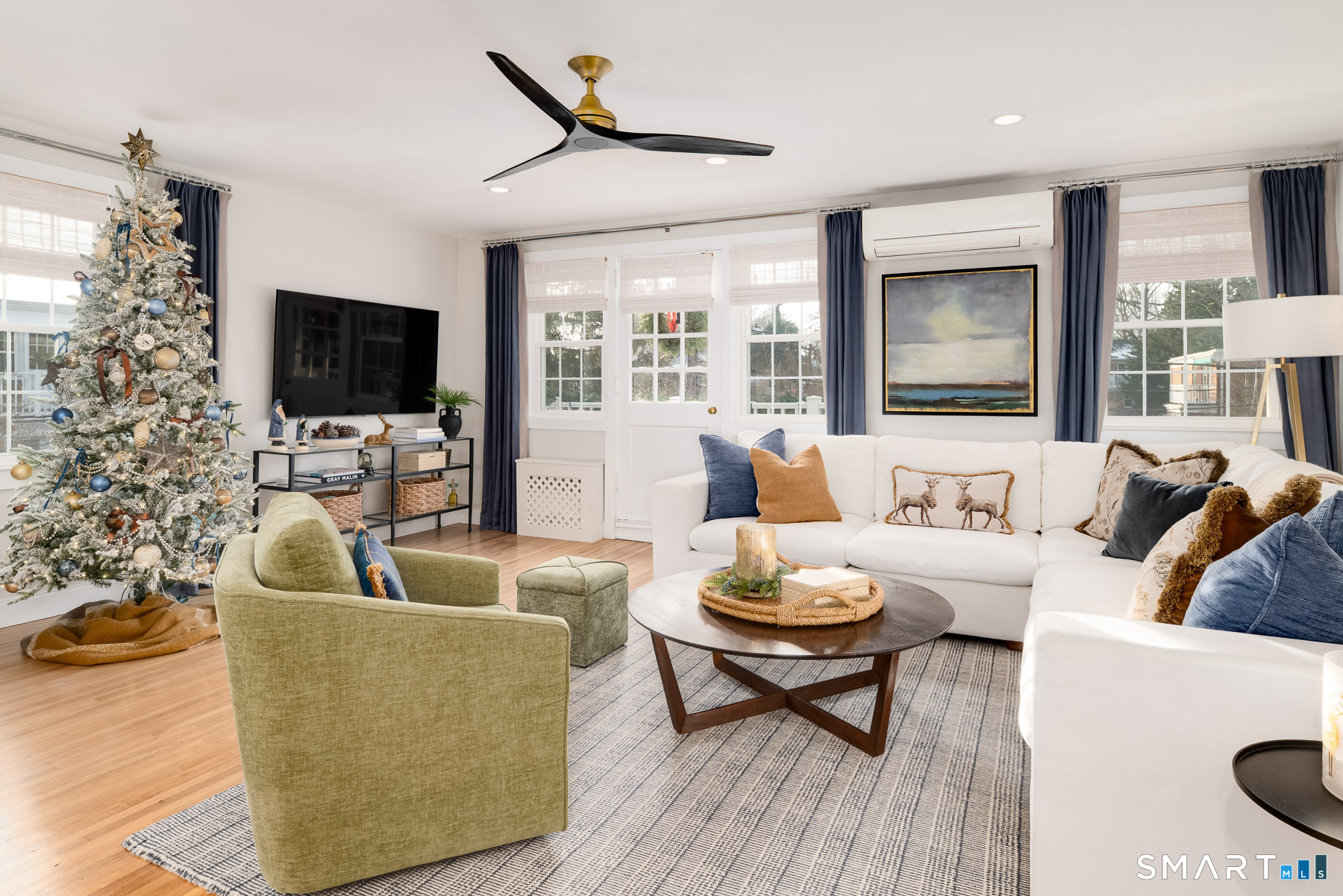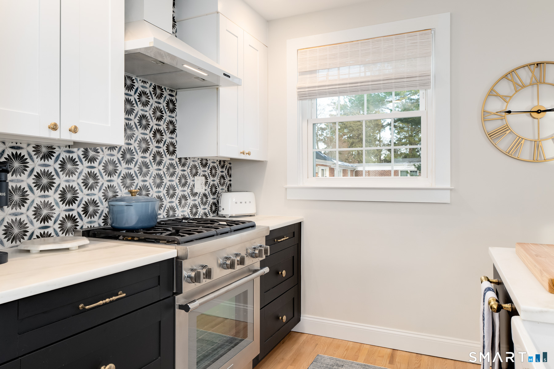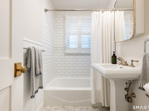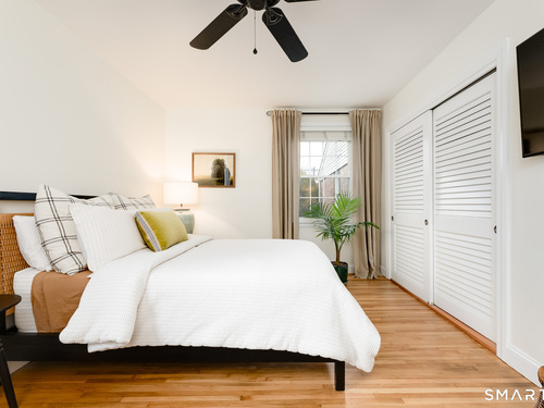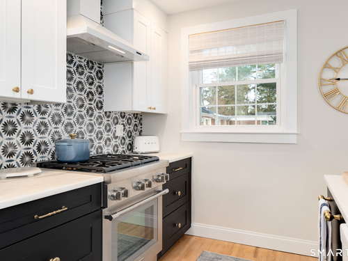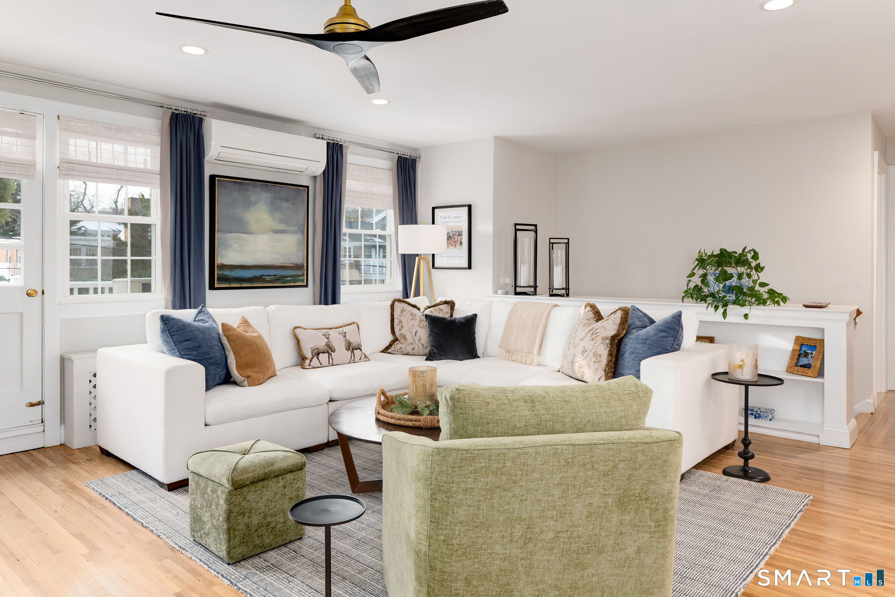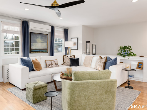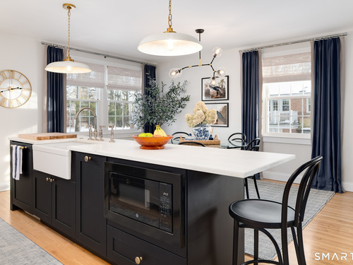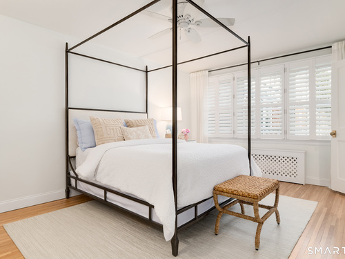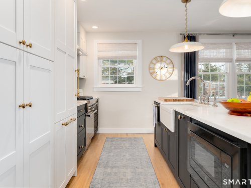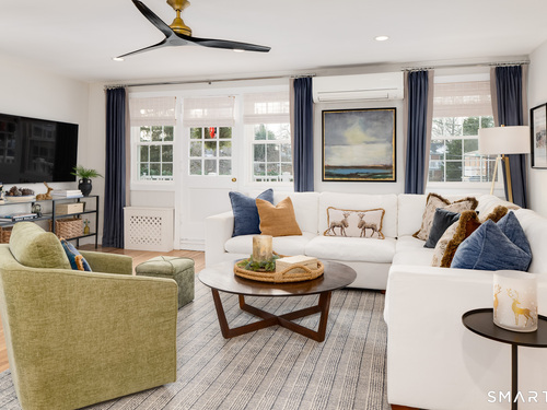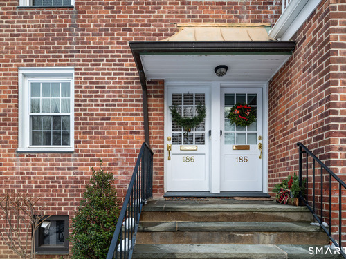 A chic pied-a-terre designed for luxury, this 2 bed, 2 bath end unit offers four exposures, & exceptional privacy. Renovated in 2023, the home features an open living and dining layout with refinished hardwood floors, custom built-ins, and brand-new windows. The chef's kitchen is elegantly composed with bespoke cabinetry, marble surfaces, Ann Sacks tile, Thermador appliances, and a Miele built-in refrigerator/freezer. Additional features include your private balcony, full-size washer and dryer, new Mitsubishi HVAC mini split system, custom window treatments, on-site parking, and private basement storage. Walking distance to Greenwich Avenue boutiques, cafes, fine dining, parks, train, and waterfront. This true turnkey delivers effortless living in a prime in-town location and is poised to be claimed quickly.