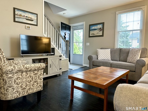 Move right into this lovely 2-bedroom townhouse featuring a stunning kitchen and bathroom. The newly renovated finished lower level offers additional living space with a durable luxury vinyl floor. As an end unit this home provides added privacy and an abundance of light. Enjoy the spacious, new back patio and garden area overlooking a charming grassy courtyard - perfect for summer entertaining. There is a new 40-gallon hot water heater. The parking lot is just steps from the unit. The desirable Sylvan Knoll community is conveniently located off of exit 9 on I-95. It is walking distance to Cove Island Park, the beach and Chelsea Piers, and just a short drive to town, shopping, and the train station. Located on 13 park-like acres with sidewalks throughout, Sylvan Knoll is a pet welcome community. Units are all owner occupied. They cannot be rented. Real estate taxes are included in the common charges.