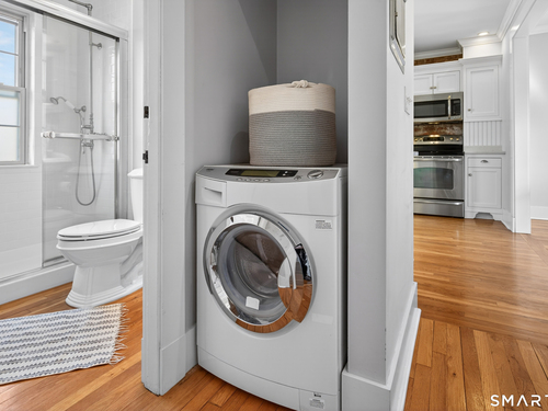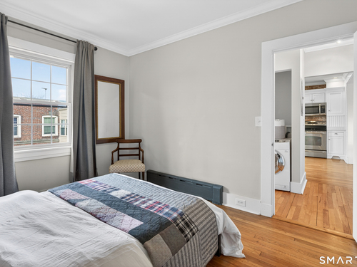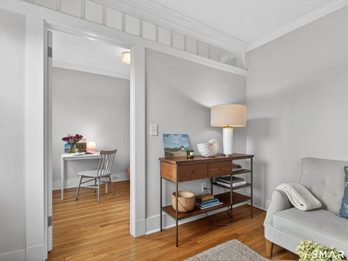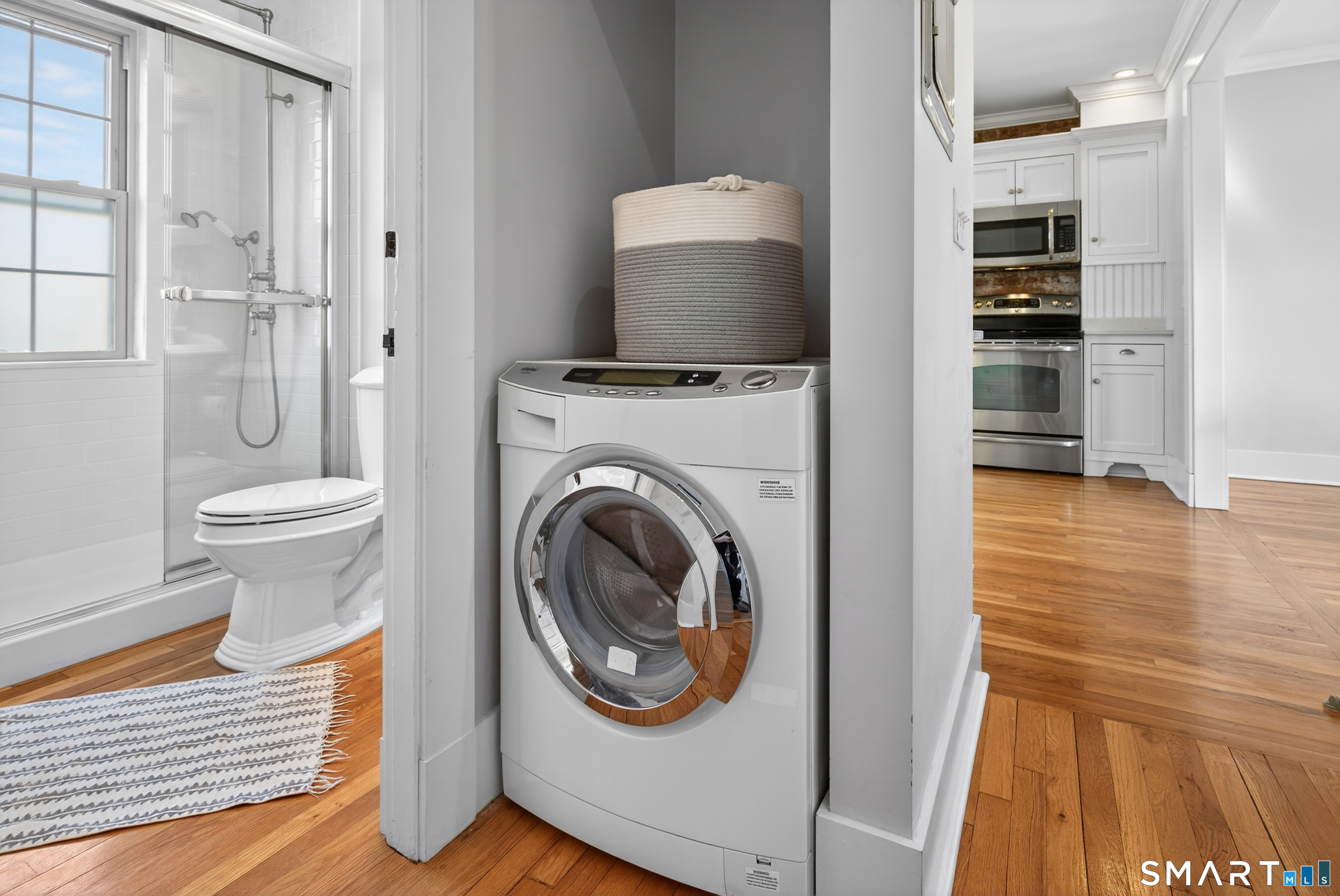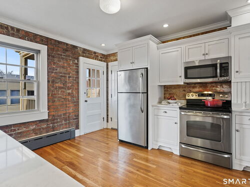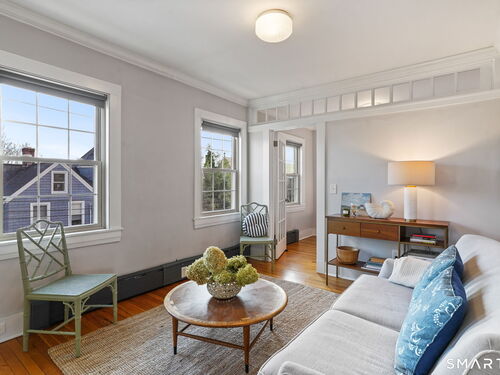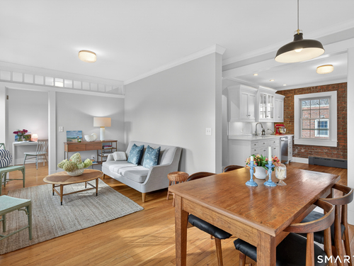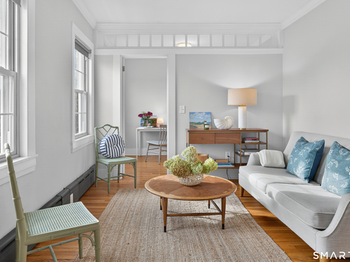 High end renovations that retain the charm of the historic Black Rock Garden Co-op complex! Custom kitchen with exposed brick, quartz countertops, stainless steel GE appliances, washer in hallway nook, floating glass shower, gorgeous hardwood floors throughout, hot water baseboard heat, insulated, tilt-in windows, and office with transom windows off living room/dining room. Open porch to enjoy spectacular sunsets. Don't miss this one! Common charges of $650/month include property taxes, heat, hot water, water, sewer, trash, and property maintenance! Over $100,000+ in renovations in past 12 years.