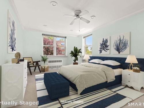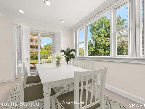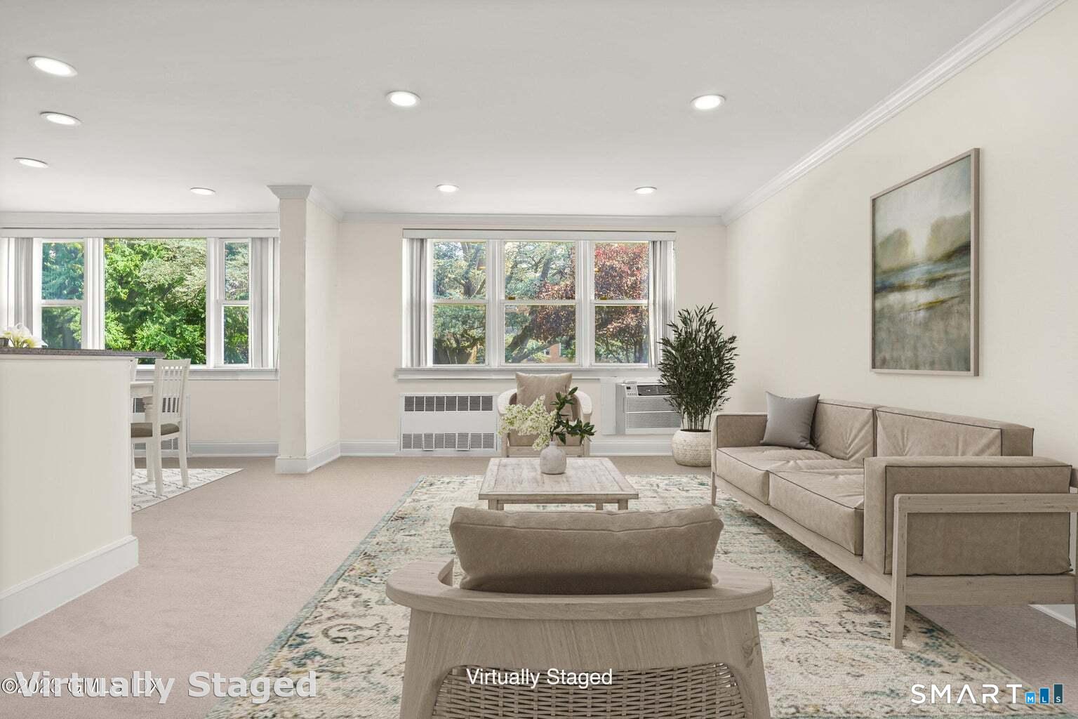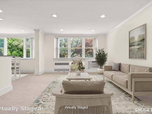 Rare 3BR/2BA corner co-op in sought-after Putnam Hill, just moments to downtown Greenwich. Sun-filled end unit with open floor plan, expansive living room with walls of windows, and updated kitchen flowing into dining area. Spacious primary suite with walk-in closet and full bath, plus two additional bedrooms and a second full bath. Features include in-unit W/D, private balcony, hardwood floors, high ceilings, and large storage area. Elevator building with on-site parking and garage. Set on 10 acres of beautifully maintained grounds. Maintenance includes property taxes, heat, hot water, trash, and grounds. Close to Greenwich Ave, train, shops, restaurants, and parks. Ideal in-town lifestyle.
