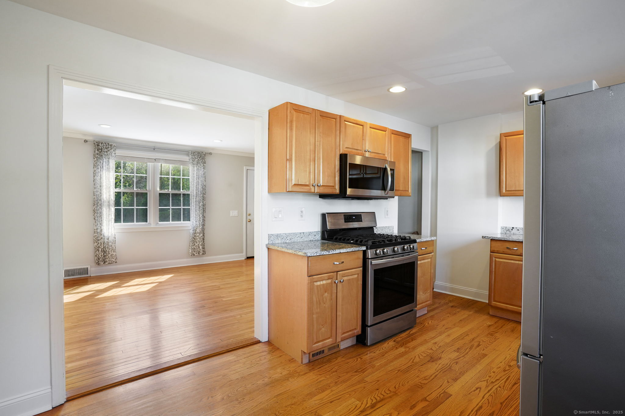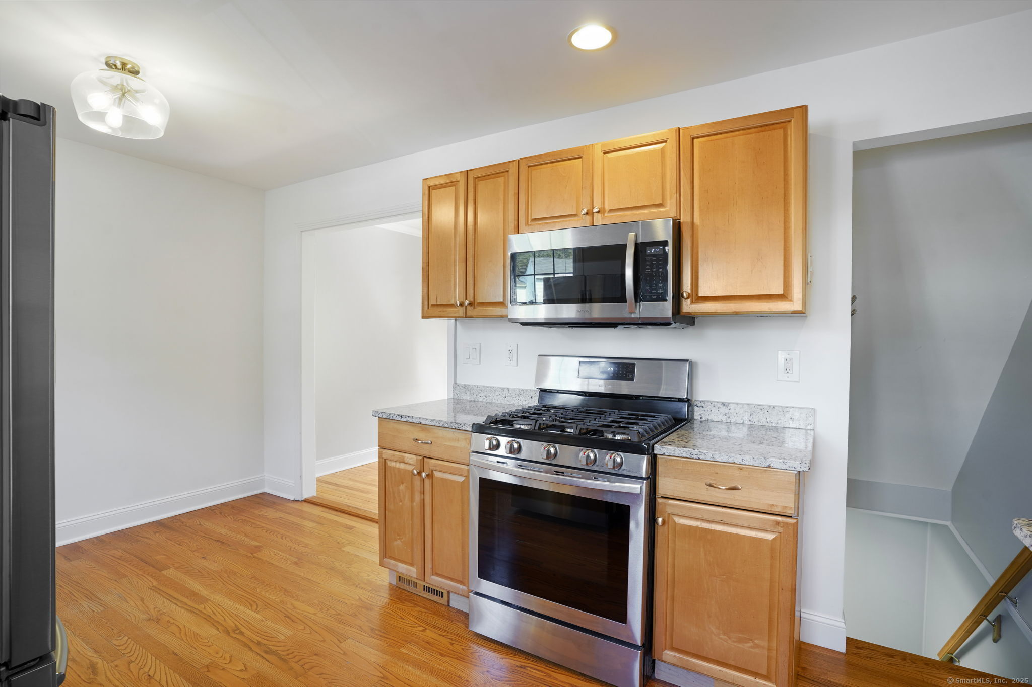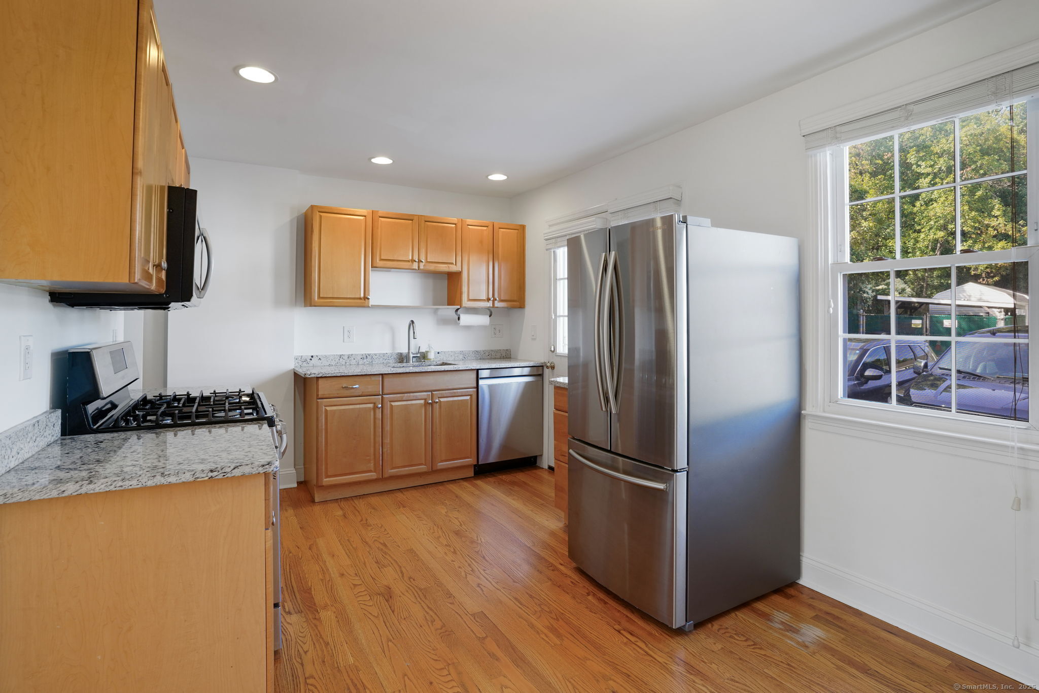 Welcome to Sylvan Knoll! This charming 2-bedroom, 1-bath townhouse features hardwood floors throughout and a beautifully updated kitchen that opens seamlessly to the dining area which is perfect for modern living. The finished lower level provides extra space for a home office, playroom, or gym. Enjoy the ease of parking right outside your back door and the natural setting where deer are often seen in the front yard. Ideally located just minutes to downtown Stamford, Metro-North, shops, and beaches, this home combines comfort, charm, and convenience.