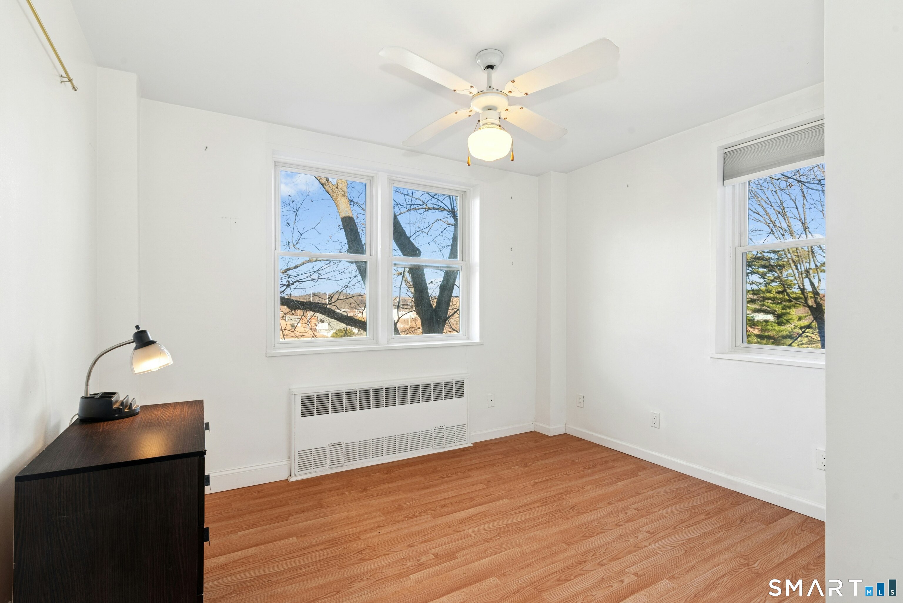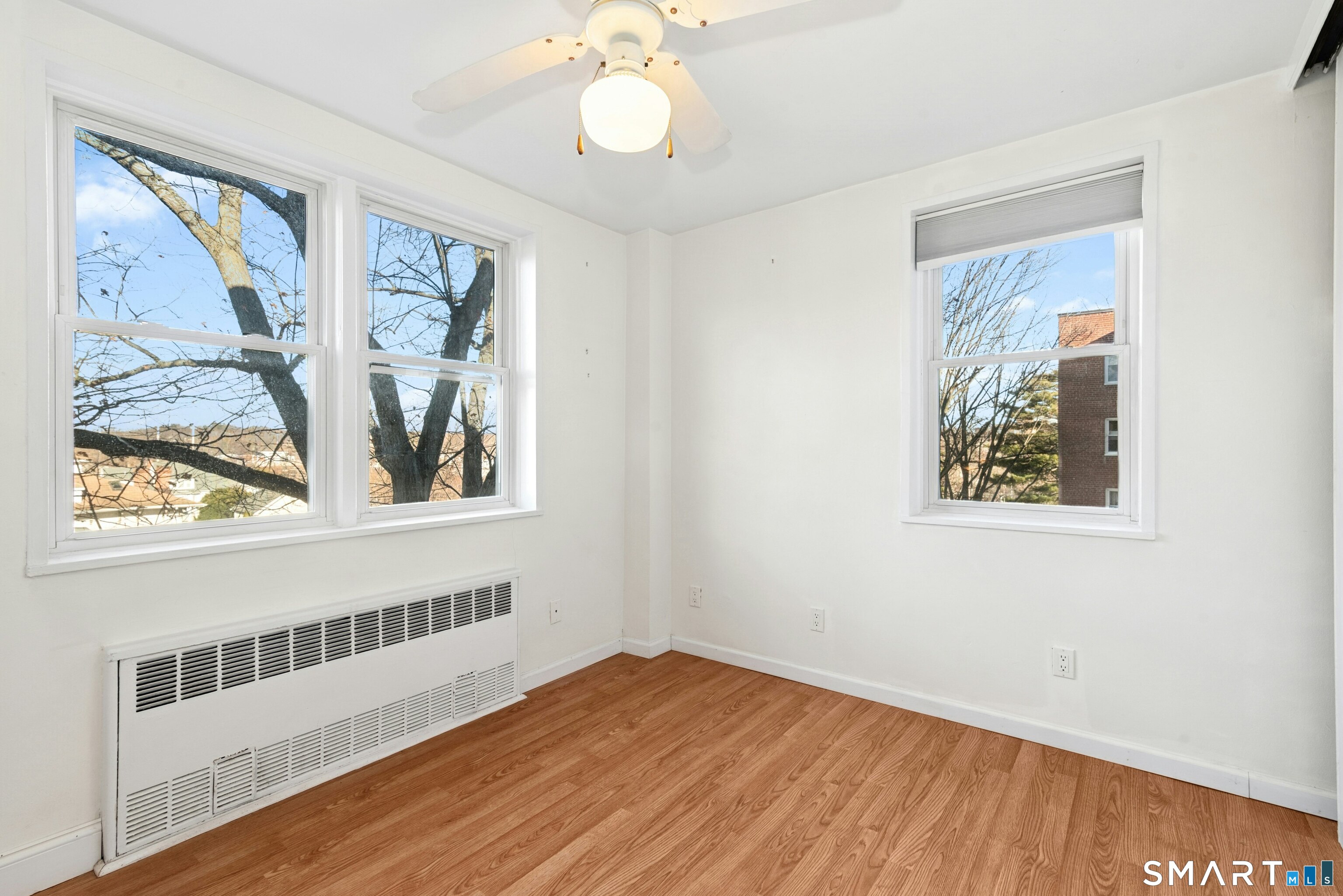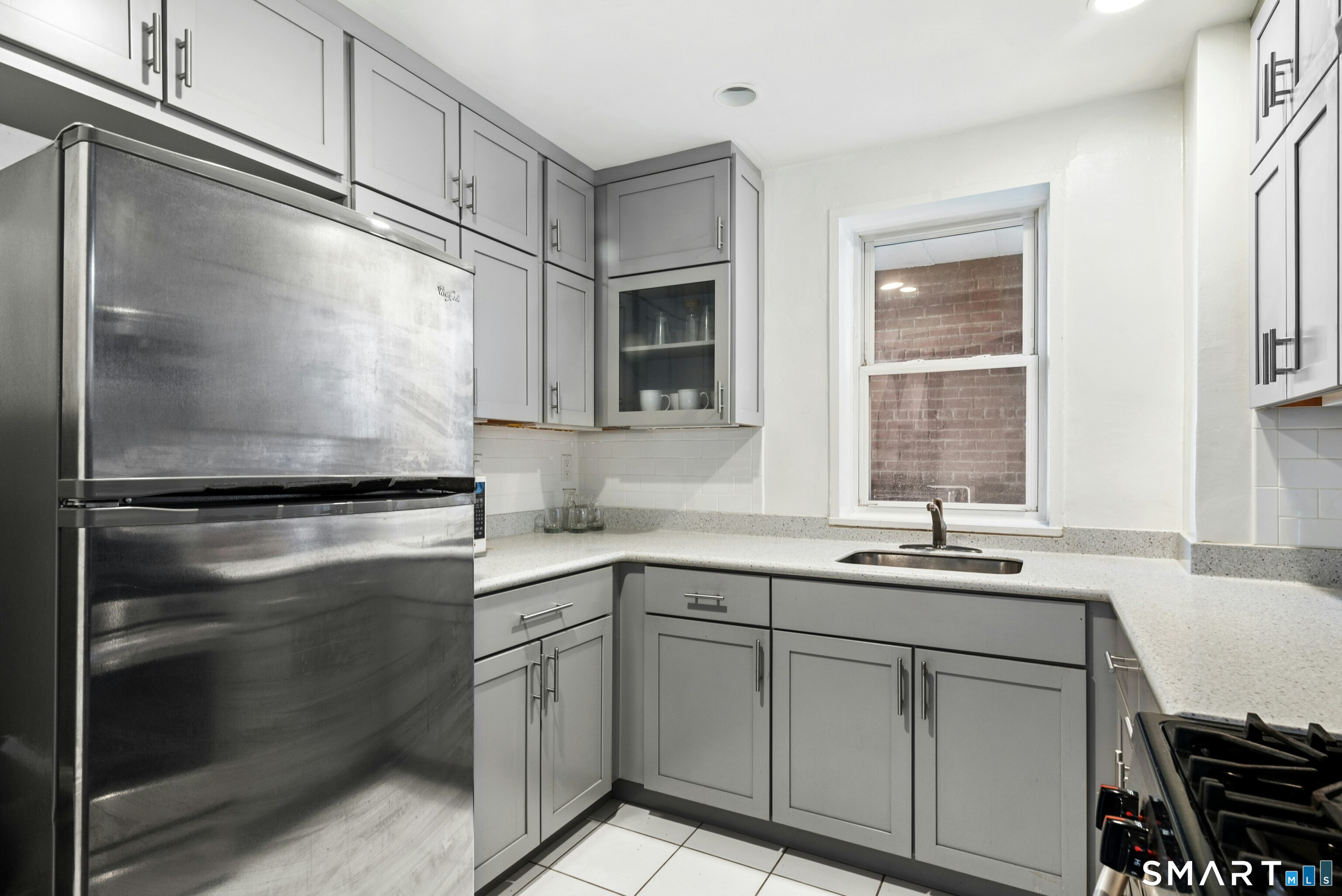 Spacious and nicely updated forth floor unit, with its own porch/balcony. Two bedrooms, one bath. New floors, updated modern kitchen with newer appliances. Well maintained and very convenient building with on-site laundry, secure entry. Co-Op association issues (unassigned) parking permits. Owner-occupied only. Professional photographs to follow.