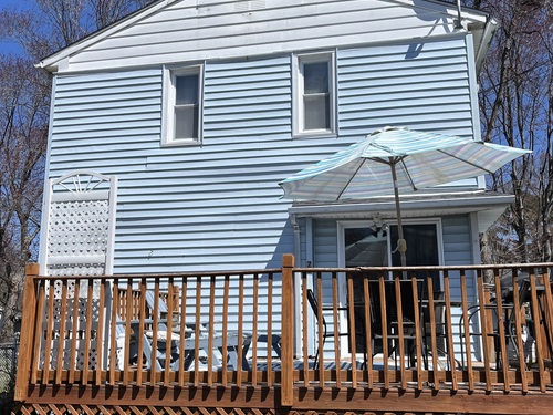 Open floor plan townhouse located at the end of a quiet cul-de-sac. Features include living room/dining area/kitchen all complete open; Sliders off the kitchen open to a lovely deck with plenty of room to enjoy being outdoors; Hardwood floors in the living room and in the bedrooms; upper level offers 2 bedrooms and one bathroom; plenty of closets. Laundry on main level. Fully fenced yard with shed for all outside equipment and furniture. Vinyl siding. Warm and functional layout. HOA includes real estate taxes, sewer, water, property management & more. Stonybrook Gardens Board requires a minimum credit score of 650, a monthly gross income of $3,500, 2 consecutive years of income tax returns. Unit can only be owner occupied.