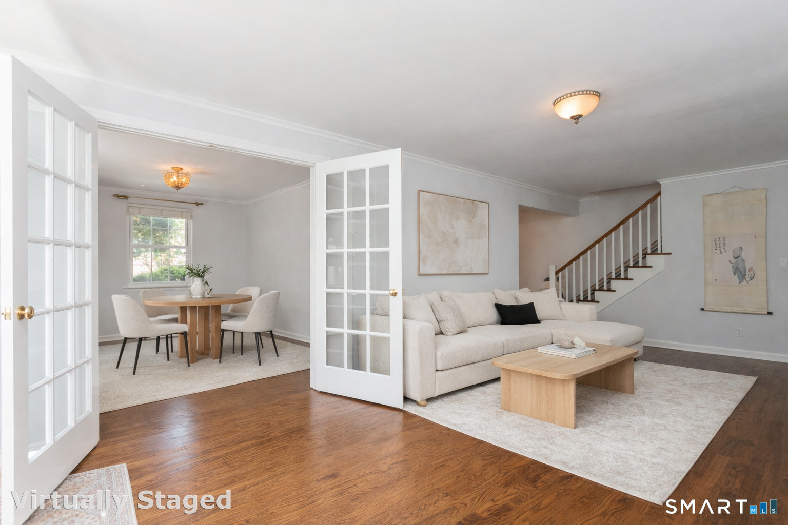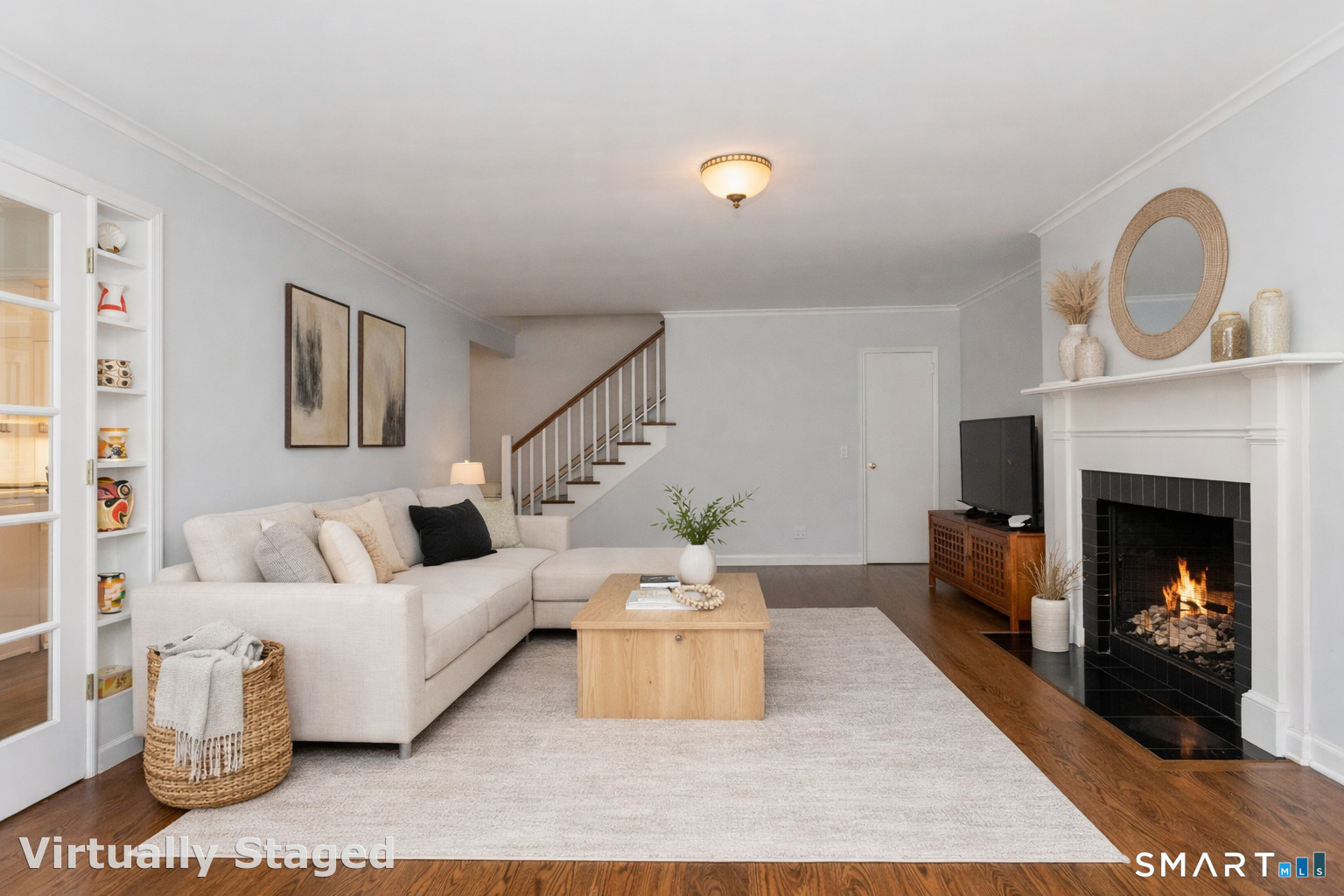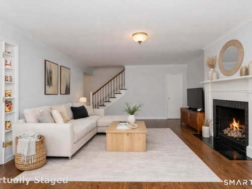 Unmatched value in the heart of downtown Greenwich. This sun-filled 3-bedroom, 2.5-bath townhouse offers a rare blend of space, privacy, and outdoor living-right in town. Enjoy a stair-free private entry, an expansive private patio, and the ability to BBQ grill-an almost unheard-of luxury in this location. Inside, a bright, open layout features pristine hardwood floors, a cozy wood-burning fireplace, and a spacious dining area ideal for entertaining or a stylish work-from-home setup. Brand-new windows (November 2025) flood the home with natural light while enhancing comfort and energy efficiency. Additional highlights include abundant closet space, dual entry doors, and an in-unit washer/dryer-making this home truly move-in ready. Set within the beautifully maintained, 13-acre park-like grounds of Putnam Park, just moments from Greenwich Avenue, Metro-North, Whole Foods, top dining, and shopping. Extra storage, plentiful free off-street parking, optional garage parking through the HOA, and property taxes included in the HOA (partially tax-deductible) add exceptional value. A rare opportunity to own a spacious downtown townhouse with private outdoor living at an exceptional price point. Some photos have been virtually staged to illustrate potential furniture placement and design; actual furnishings may differ.