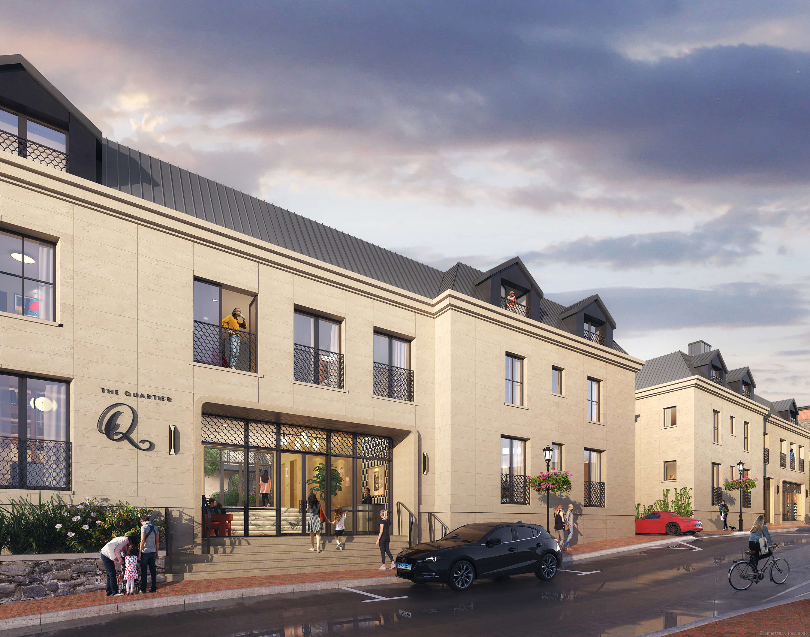 The Crown Jewel of New Canaan: Bespoke Luxury with an Unrivaled Lifestyle - Elevate your expectations in this nearly 3,400 sqft architectural masterpiece at The Quartier, where classic sophistication meets the effortless ease of modern living. This exquisitely designed 3-bedroom townhome features a private elevator serving all levels, 7" white oak flooring, and a sprawling living room that flows onto a private terrace. From the chef's kitchen-anchored by Leicht cabinetry and quartzite counters-to the top-floor primary sanctuary with cathedral ceilings and a cozy den with fireplace, every detail exudes refined taste. Beyond your two-car garage, enjoy world-class amenities including a full-time concierge, professional fitness studio, golf simulator, and a chic entertainment lounge. Perfectly positioned just steps from New Canaan's premier boutiques, elite dining, and the NYC train, this residence offers the ultimate blend of connection, convenience, and timeless prestige.