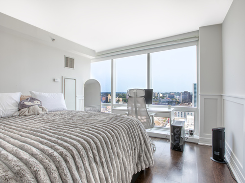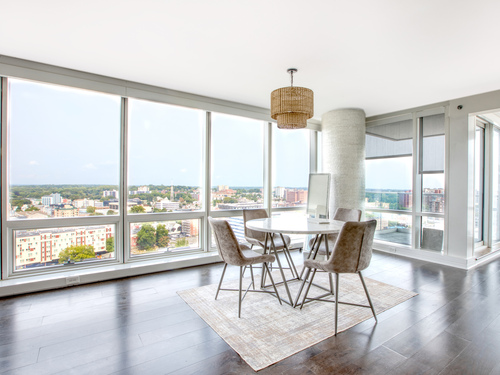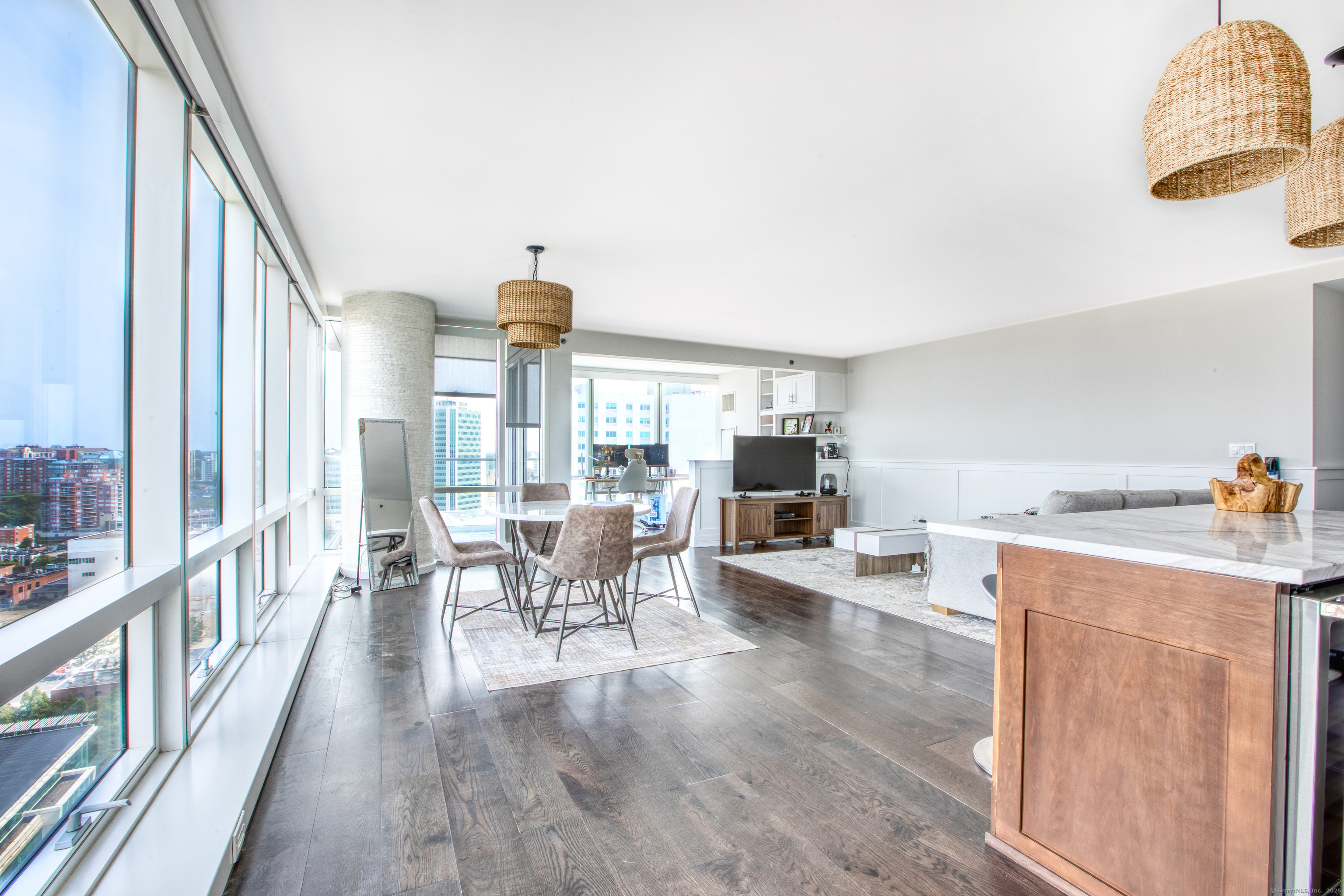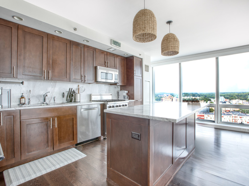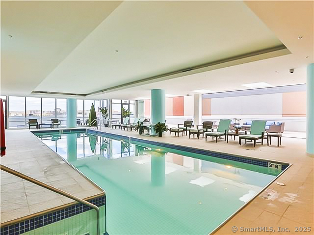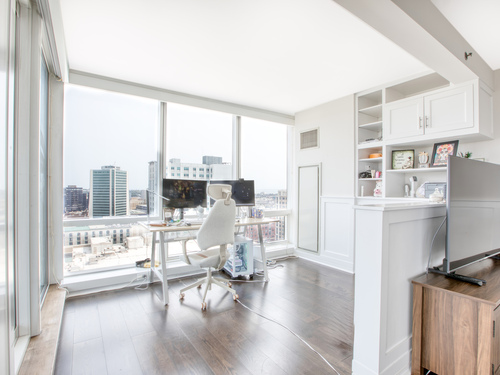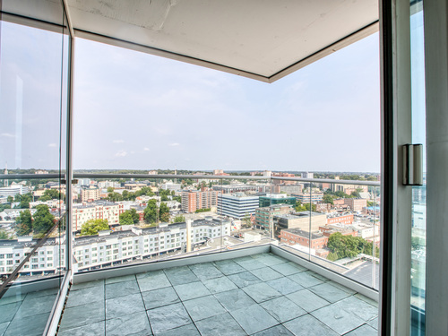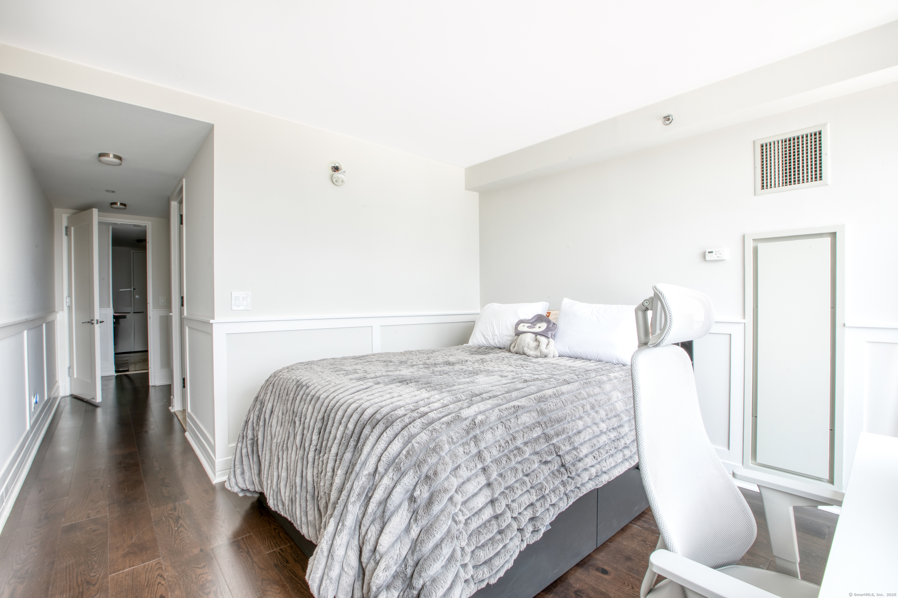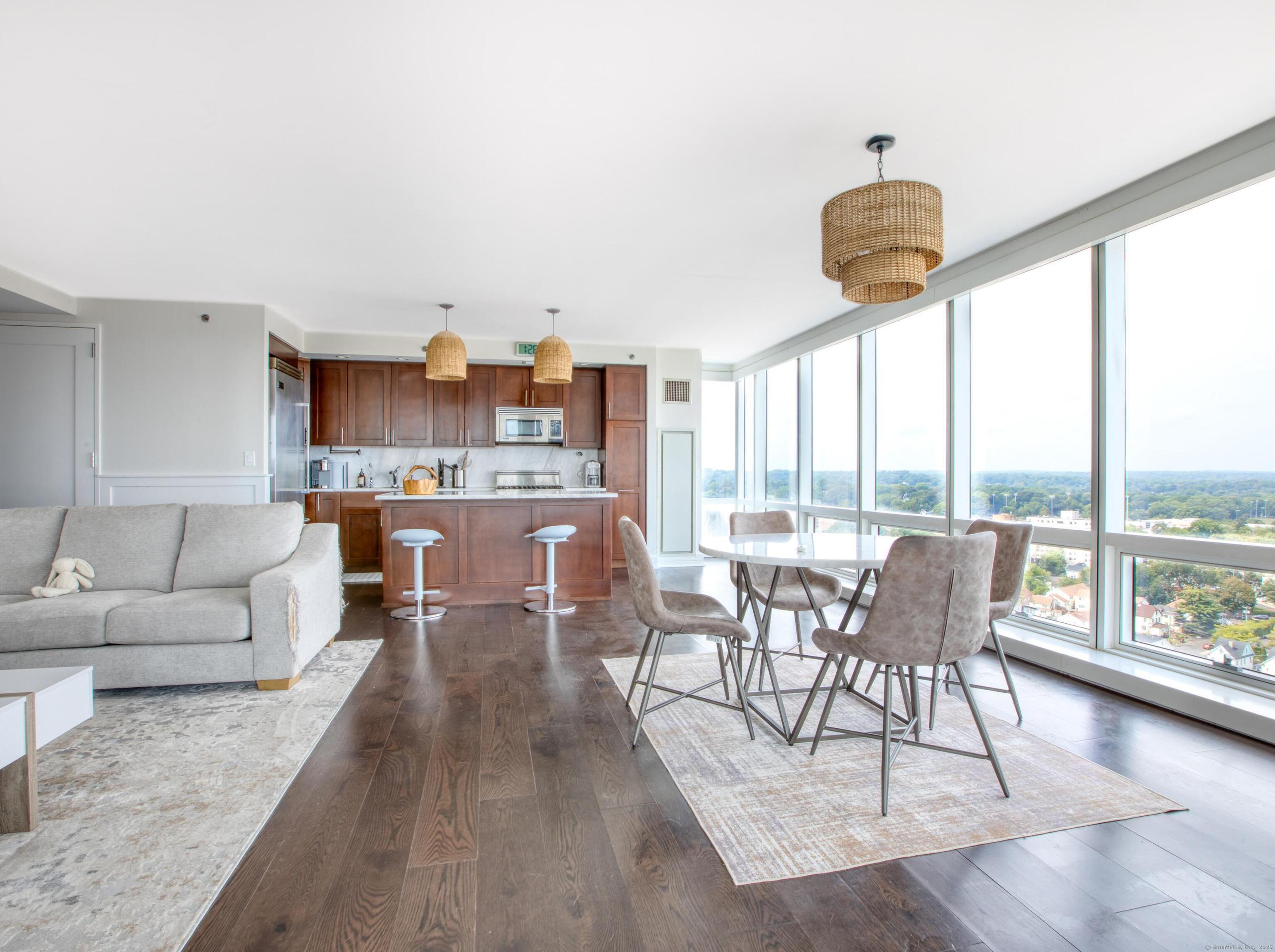 Light-filled corner unit on the 19th floor of Park Tower, Stamford's premier luxury condominium. A private balcony showcases spectacular city views, while inside the kitchen is appointed with white marble countertops and backsplash, hardwood floors, an office nook, and remote-controlled blinds. Both bedrooms feature en-suite baths and custom walk-in closets, with an additional powder room for guests. Residents enjoy top-tier amenities including a 24/7 doorman, pool, fitness center, playroom, and more-delivering the ultimate in comfort and convenience in the heart of Stamford. Shuttle service to Metro-North ensures an effortless commute.