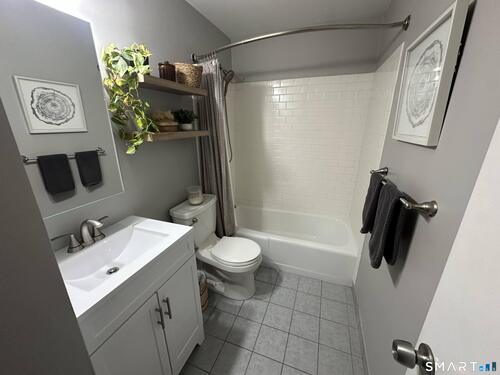 Really clean quiet unit located on the top floor with nice balcony. New water heater installed in 2022. Newly painted neutral walls and new carpet in 2025. Bath tub received new coating in 2025 as well and new vanity and sink. Spacious one bedroom, large living area, galley kitchen and dining area facing sliding glass doors. Excellent location convenient to train, Merritt Parkway and I-95. Beautiful inground pool with plenty of greenery and picnic area. Walking distance to Restaurants, shopping and medical facilities. One reserved parking spot, 1st one next to the building, additional spots available for second car and guests. Additional storage unit on premises. Stackable washer and dryer located in the unit.