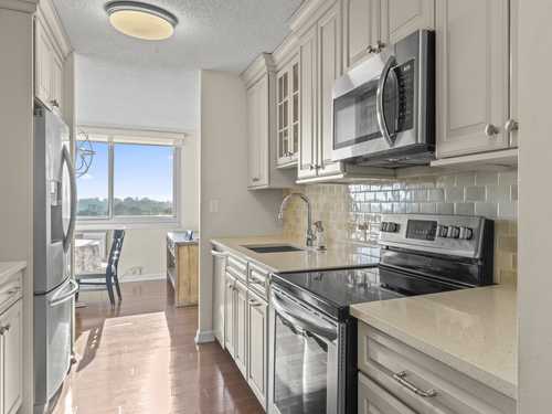 Opportunities like this don't come along often. This beautifully updated 10th-floor apartment offers stunning eastern (ESE) exposure, filling the home with natural light and bright, sunny mornings. Enjoy coffee or unwind on the enclosed terrace while soaking in the sunshine and peaceful views. The newly renovated white kitchen features stone countertops, stainless steel appliances, and a sleek, modern design that's both stylish and functional. Both bathrooms have been tastefully updated and feature attractive finishes that truly impress. The spacious living room and dining area provide the perfect setting for relaxing or entertaining guests. Generous closet space and additional storage make everyday living easy and convenient. Move-in ready and thoughtfully updated, this home checks all the boxes. Come see it in person or schedule a virtual tour. Homes like this don't stay on the market for long-don't miss your chance!