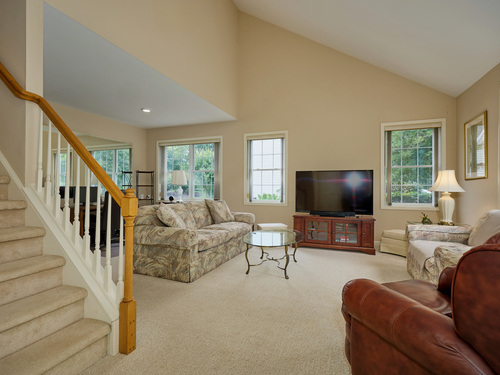 Welcome home to this desirable detached home in Sterling Woods Condo Complex. Enter into the Living/Dining Room open area enhanced by many windows which add an incredible bright space with close Powder Room. The kitchen/Family Room option offers convenient Country Kitchen with corner gas fireplace. First floor Primary suite offers full bath including tub, stall shower and walk in closet. Laundry Room and 2 car garage complete this level. Upstairs features 2 bedrooms and bath. Lower level has finished Family Room and extra large basement storage with many shelves and much more space for a work room, gym, etc. Many possibilities! Enjoy leisure living with clubhouse and amenities galore! Great location, close to everything. House is now in the process of improvements including wall paper removal and freshly painted throughout.