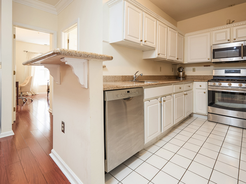 Breakfast Bar, Built-Ins, Granite Counters, Galley, Tile Floor