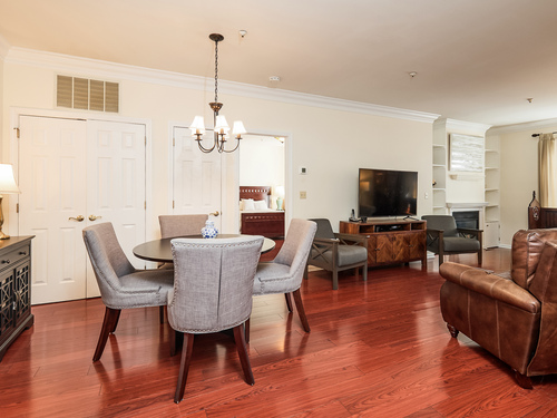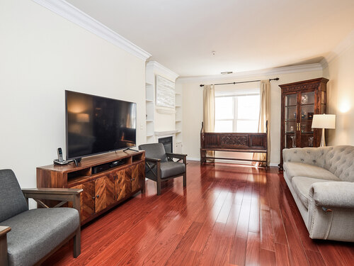 Book Shelves, Built-Ins, Gas Log Fireplace, Engineered Wood Floor, Tile Floor