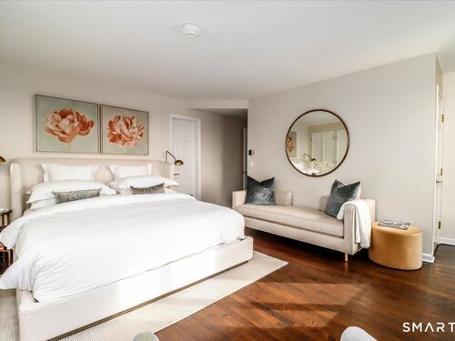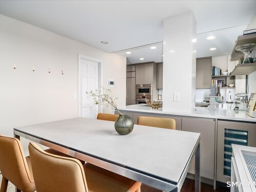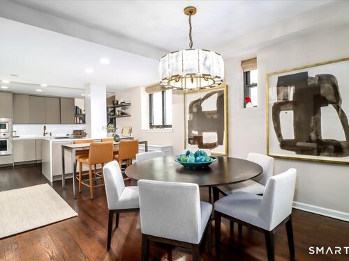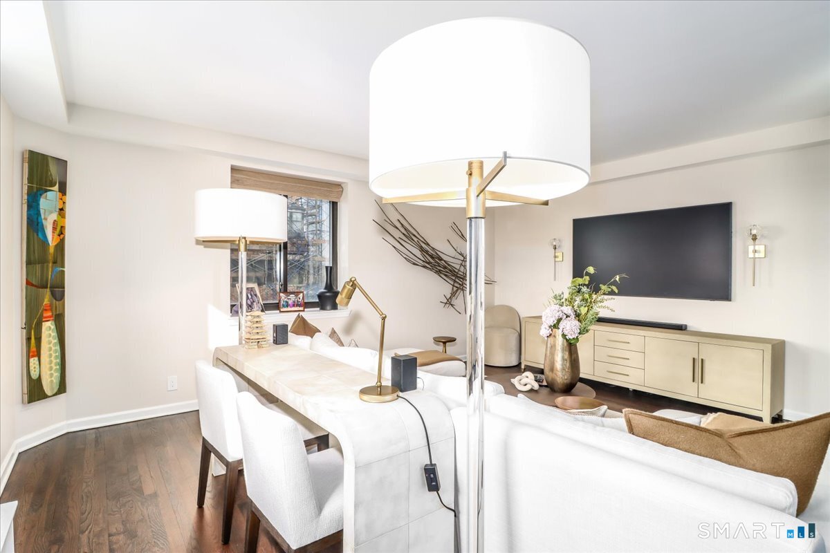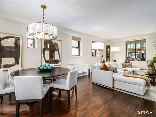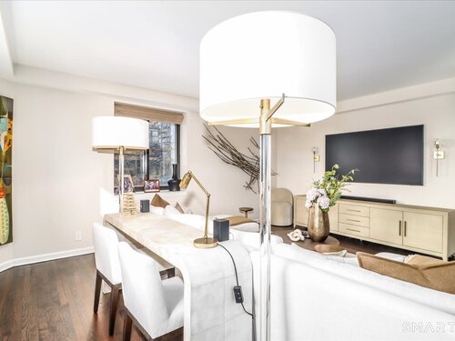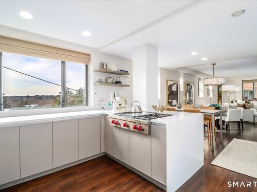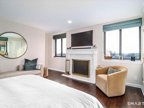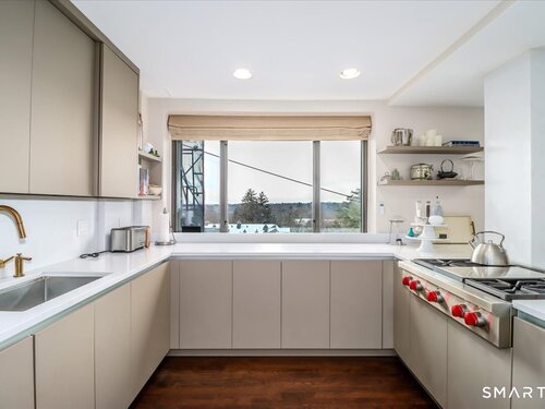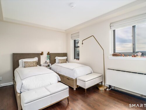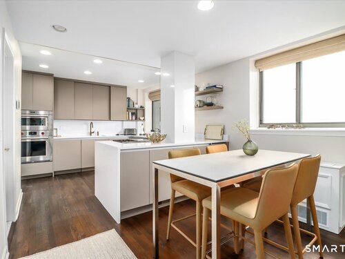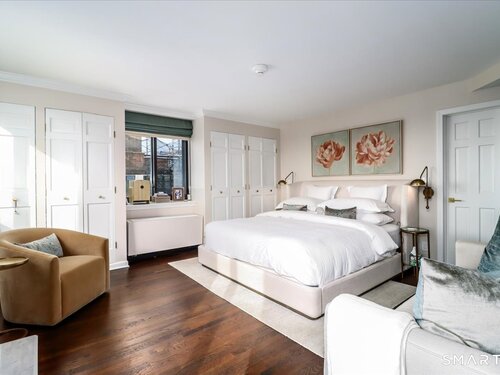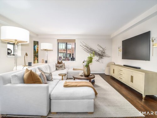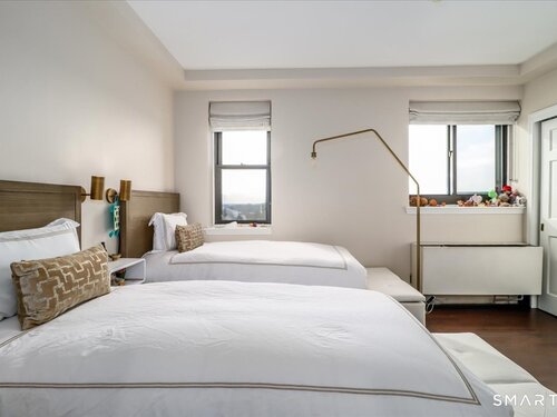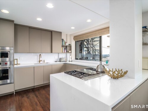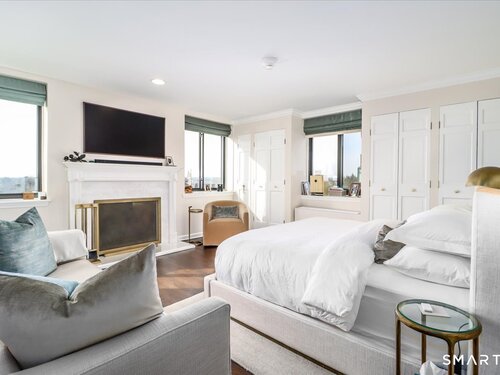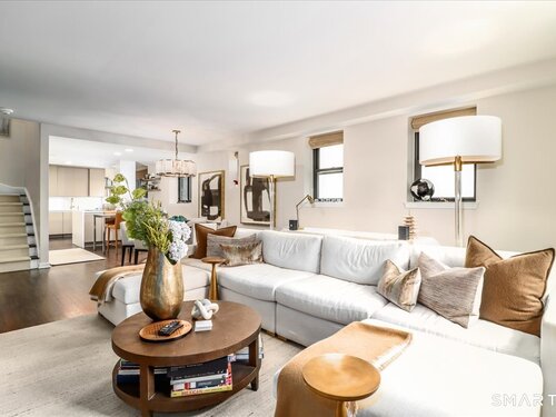 Experience life at elegant Greenwich Towers. Imagine owning a spacious, bright, 2-bedroom / 2.5 bath apartment in a premier in-town Greenwich location! Welcome to this splendid duplex with a wealth of newly added special features that includes rare ownership of TWO Deeded Garage Parking Spaces. It boasts a gracious, sun-filled, open floor plan with abundant windows that fill the space with sunlight and views of LI Sound & Manhattan's skyline. Owners have thoughtfully renovated and upgraded the home over the last 3-years by refinishing vintage floors, refurbishing and painting walls and deep windowsills, adding custom window treatments throughout, adding custom staircase rug / carpet up the stairs to the dramatic upper hallway, and by creating an unrivaled designer EIK! The custom EIK features natural quartzite counters & backsplash, beautiful Miralis cabinetry, abundant storage & workspace, SubZero, Wolf gas range w/oven + Wolf wall oven & microwave, wine chiller & integrated laundry center. Upstairs, the stunning Primary BR w/fireplace and sitting area plus 2nd BR w/lovely en suite both have closets with outfitted interiors. New heating units, new air conditioning and a 2Easy high tech system on each level add to the splendor - while feature sheet tells all! Residents enjoy a roof-top deck & basement storage unit that add to ease of condominium living. Enjoy Greenwich beaches, town shopping, dining and parks. Your ideal life awaits!
