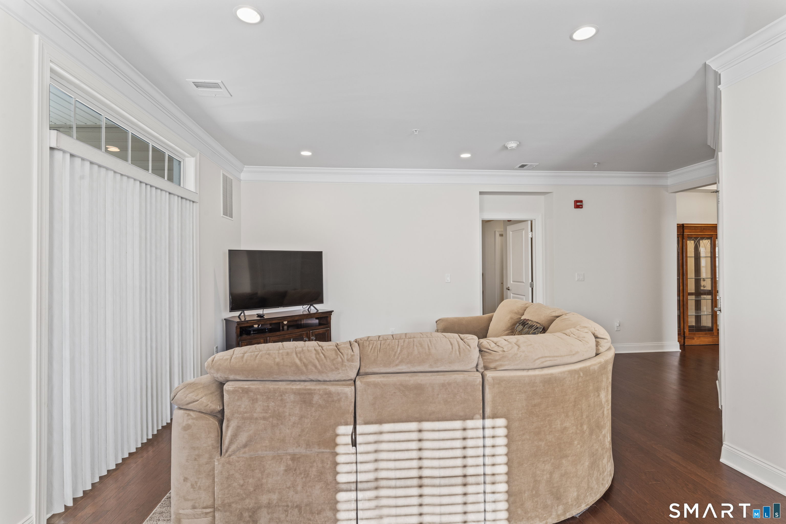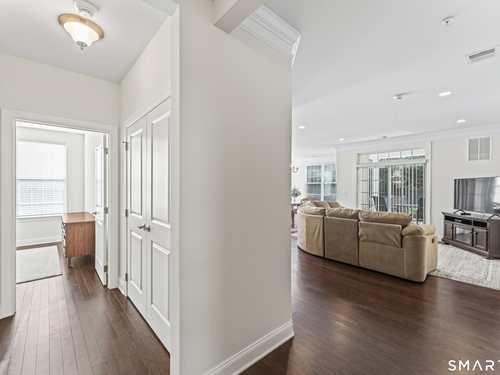Welcome to 1211 Brookside Court, an exceptional opportunity within the highly desirable Newtown Woods Regency Collection, a 55+ active adult community offering low maintenance, resort-style living. Originally designed as the community's sales office and completed in 2021, this premium Concord Grand model is a rare corner unit that stands apart with its private setting, elevated finishes, and sun-drenched open floor plan. Perfectly positioned on the lobby level, this condo offers the convenience of walk-out access to a patio and grassy outdoor space-ideal for enjoying fresh air right from your home. Inside, natural light pours through, highlighting beautiful hardwood flooring, fresh paint, and refined trim details. The elegantly appointed kitchen features granite countertops, a breakfast bar, stainless steel appliances including gas range, garbage disposal, and abundant cabinetry, seamlessly opening to the spacious living and dining areas-perfect for both everyday comfort and entertaining. The primary suite is a true retreat, complete with a sitting area, dual closets-incl a walk-in, and a well-appointed en-suite bathroom with upgraded finishes and granite countertops. A second bedroom and full bathroom also features thoughtful upgrades, while the home offers exceptional storage throughout. This unit's location within the building is unmatched-just steps from both guest parking and your private garage with additional storage, all on the same level for effortless accessibility