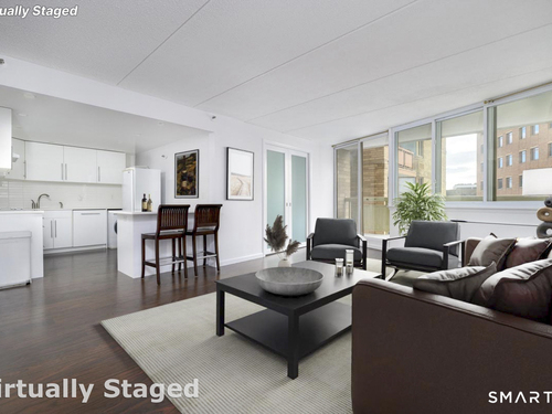 Welcome to effortless luxury at The Buckingham-where style, comfort, and convenience come together beautifully. This sun-drenched, meticulously maintained 1BR + den offers ultimate flexibility. The spacious den easily functions as a true second bedroom, home office, or guest retreat-ideal for today's work-from-home lifestyle. Step inside and be greeted by abundant natural light streaming through oversized windows. The open floor plan showcases an updated chef's kitchen with sleek countertops, modern appliances, and a generous island perfect for meal prep and casual dining. The kitchen flows seamlessly into the dining area and expansive living room, creating an inviting space for relaxation and effortless entertaining. Your private balcony beckons for morning coffee, evening cocktails, and breathtaking sunset views-a rare find at this price point. The spacious primary bedroom boast a double closet with ample storage, while the oversized spa-inspired bathroom impresses with custom cabinetry and a luxurious walk-in tub/shower designed for comfort and accessibility. In-unit washer and dryer. Resort-style amenities include: 24-hour concierge, state-of-the-art fitness center, sauna, sparkling outdoor pool, library/conference room, and vibrant community lounge with full kitchen. One deeded garage parking space and private storage unit included. Walk to shopping, dining, entertainment, library, Metro North. Move-in ready and waiting for you. Owner absorbed assessment.