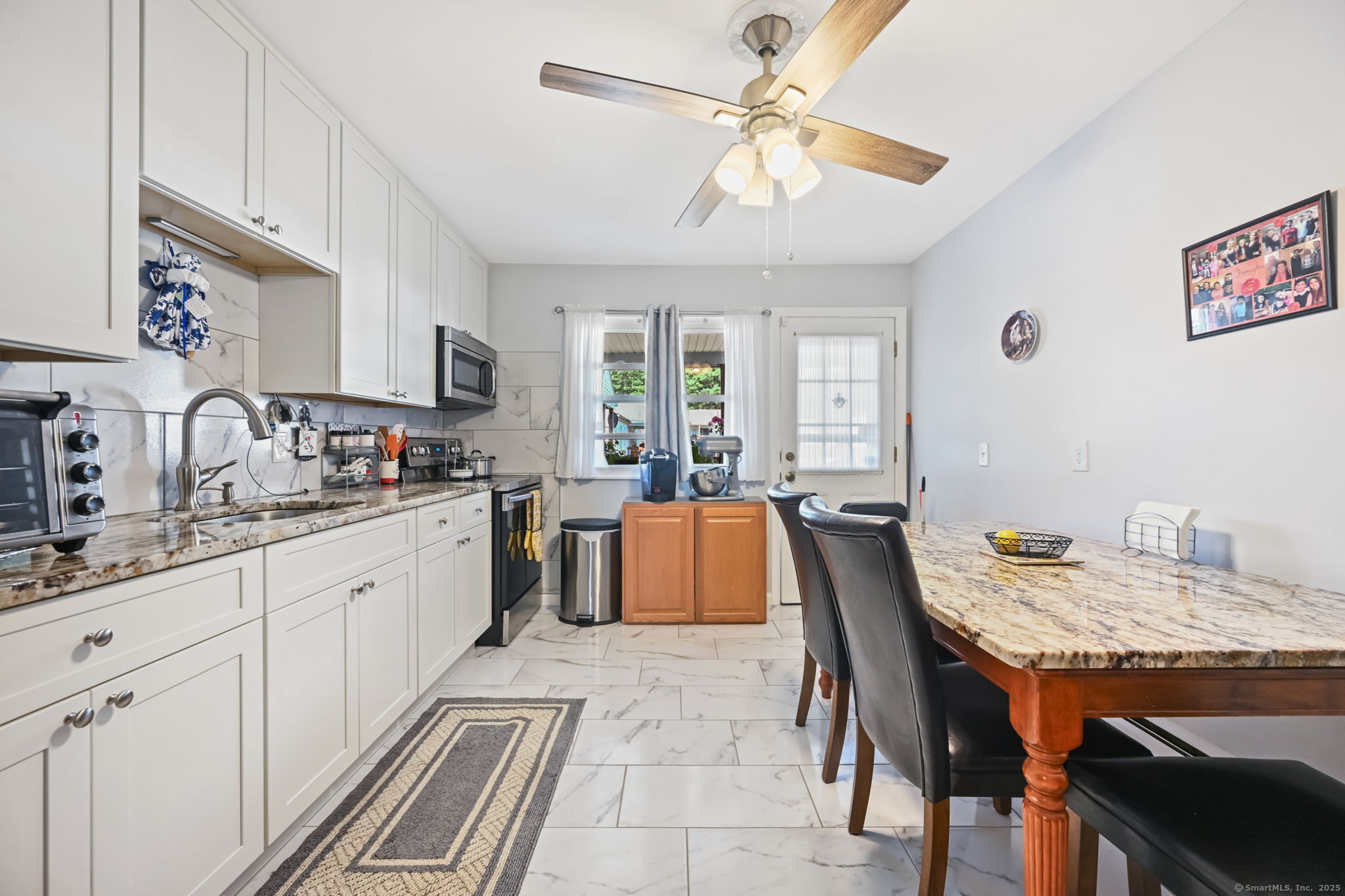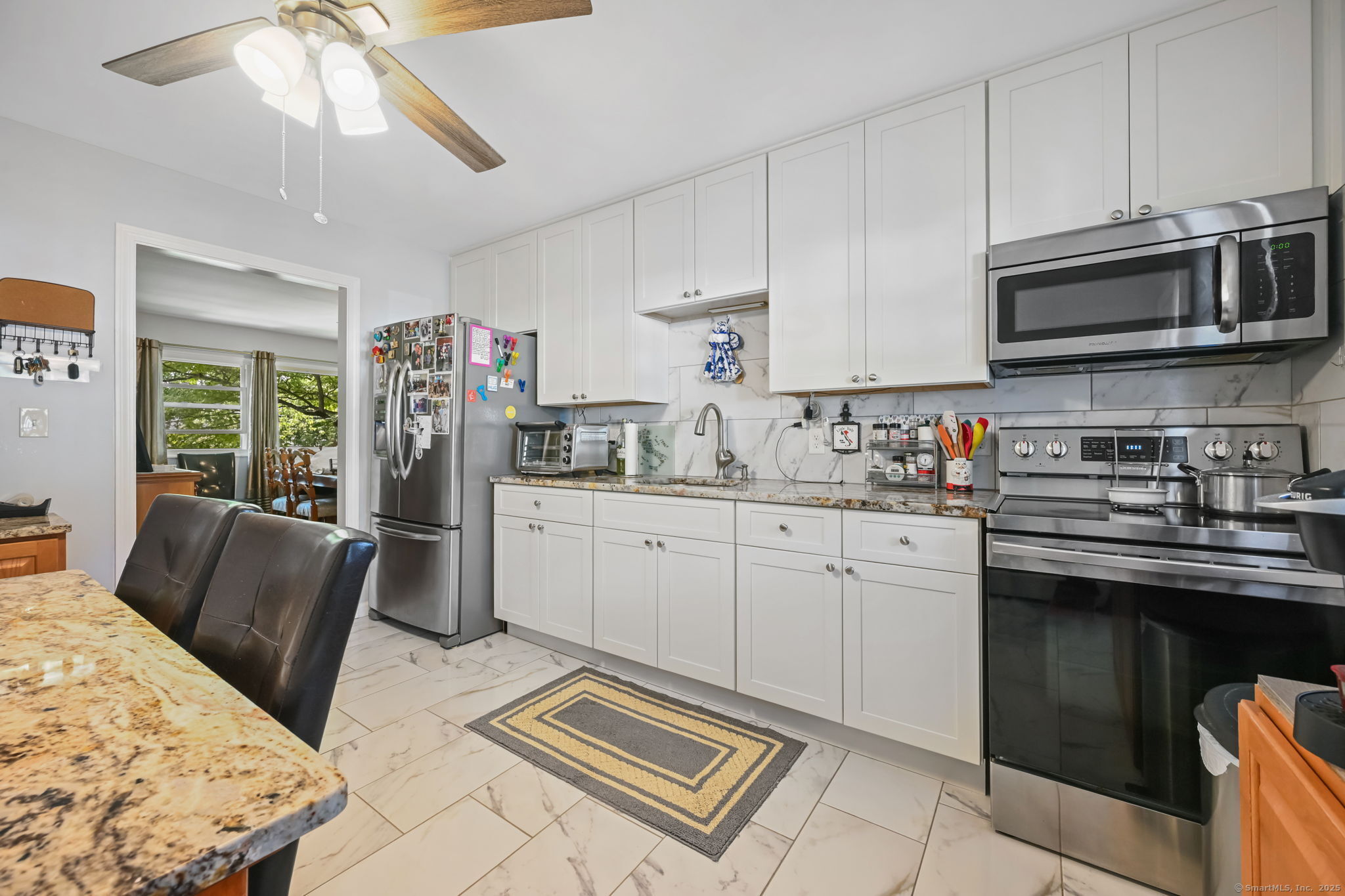 First time on the market in 25 years! Meticulously maintained by its long-term owner, this beautifully remodeled two-bedroom ranch-style unit has been totally renovated. Inside, you'll find all-new sheetrock, plumbing, electrical, and hardwood floors throughout. The modern kitchen features white shaker cabinets, a tiled backsplash, granite countertops, stainless steel appliances, and new fixtures. The updated bathroom offers stylish new tile, a shower with a glass door, a sleek vanity, and modern fixtures. Additional highlights include two spacious bedrooms, in-unit washer/dryer, and a deck off the kitchen-perfect for relaxing or entertaining. The complex provides reserved parking and private basement storage. Common charges conveniently cover heat, hot water, and sewer, making this unit exceptionally affordable. Pets are welcome! Located in the desirable Upper North End, this home is close to Sacred Heart University, parks, shopping, and all major highways. CASH OFFERS ONLY - Schedule your showing today!