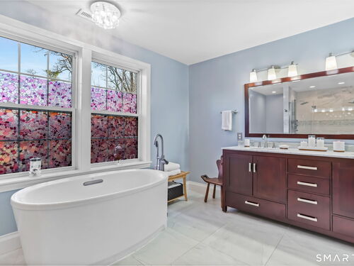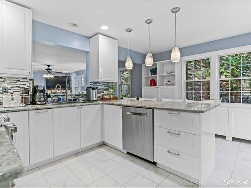 Welcome to 155 N Taylor Avenue, a sun-filled 4-bedroom, 2.5-bath colonial set back from the street with privacy hedges and backing onto a nature preserve. Built in 2000, this 2,770-square-foot home offers thoughtful updates throughout, including a 2015 kitchen renovation with granite countertops, gas stove, Bosch dishwasher, tile backsplash, and bar peninsula opening to a deck with French doors. The large bay window floods the living room with afternoon light. The second floor showcases hardwood flooring installed in 2020. The spacious master suite features a walk-in closet and a luxurious marble bathroom updated in 2018 with a double rain and jet shower, soaking tub, and double vanity. The other 3 bedrooms share an updated bathroom with a rain jet shower system and floor-to-ceiling tile. A huge bonus room adds flexible living space as a possible 4th bedroom. Additional highlights include gas forced air heat (2026), central AC (2026), a gas fireplace, solar panels installed in 2014, and a radon mitigation system. The attached 2-car garage provides direct access, with laundry conveniently located in the tall-ceilinged unfinished basement. Situated on 0.37 acres, this south-facing home offers privacy and tranquility while remaining minutes from SoNo, Costco, Target, Wegmans, and abundant dining and shopping along Connecticut Avenue. Enjoy the low-maintenance condo living with the privacy of a single family home--in a desired West Norwalk location.
