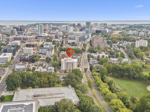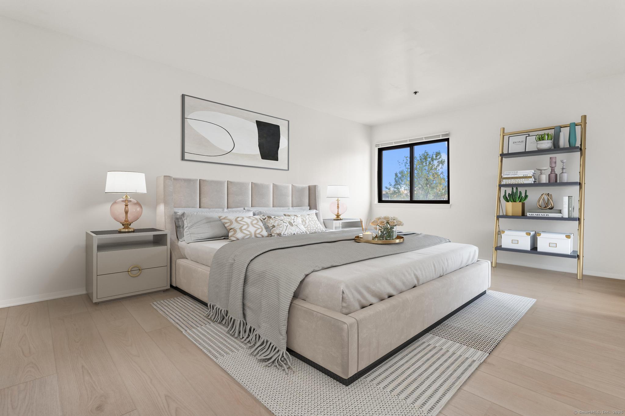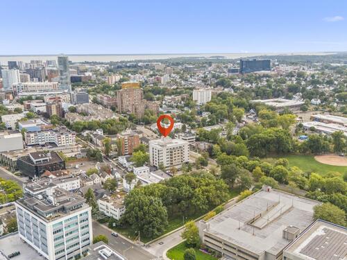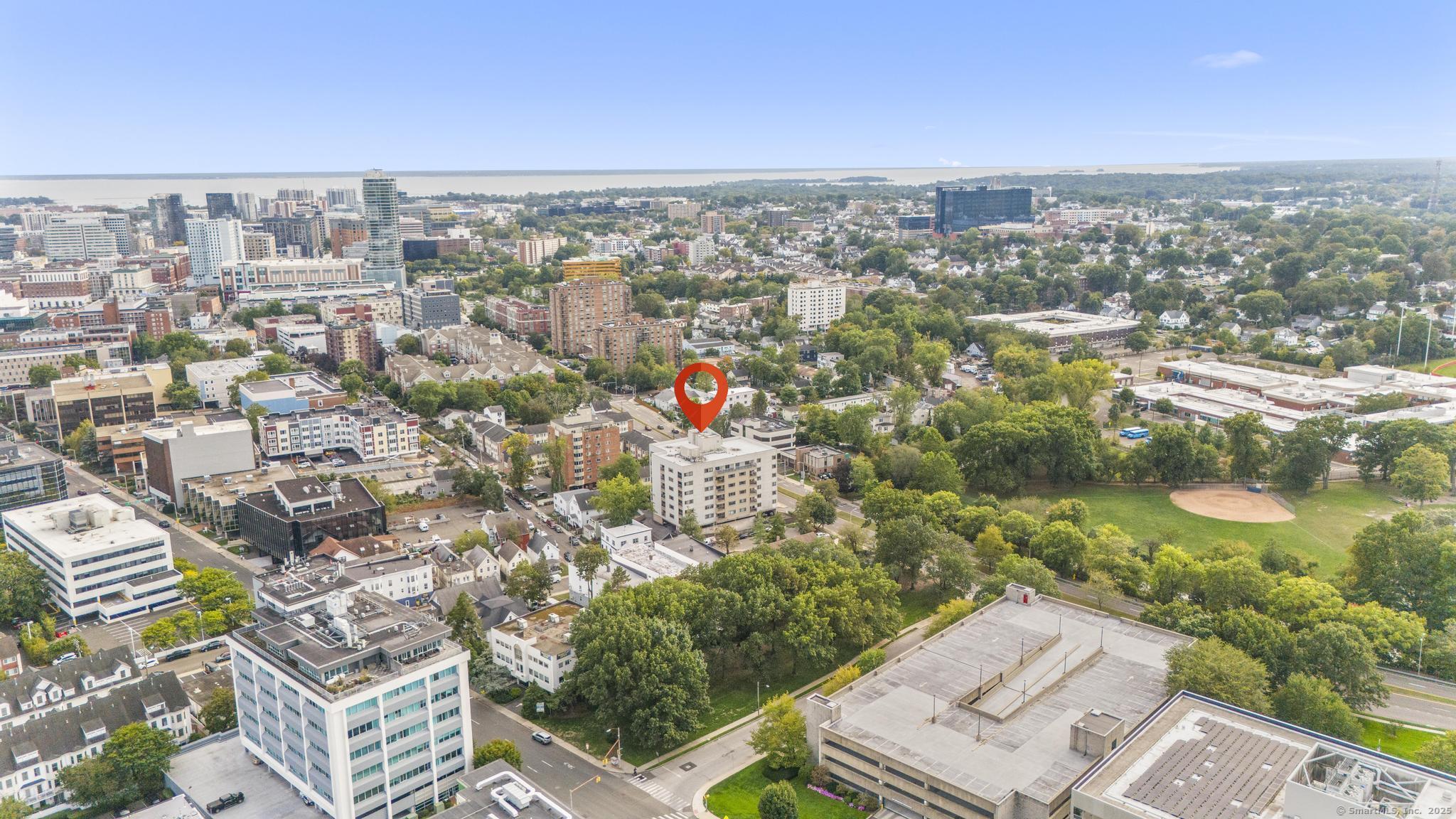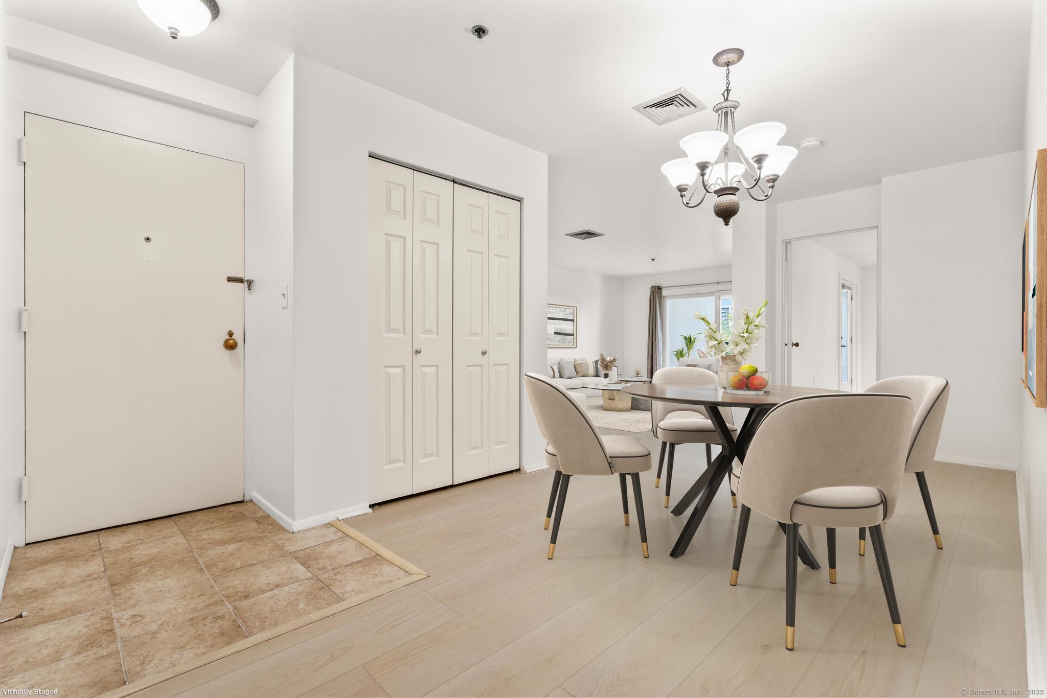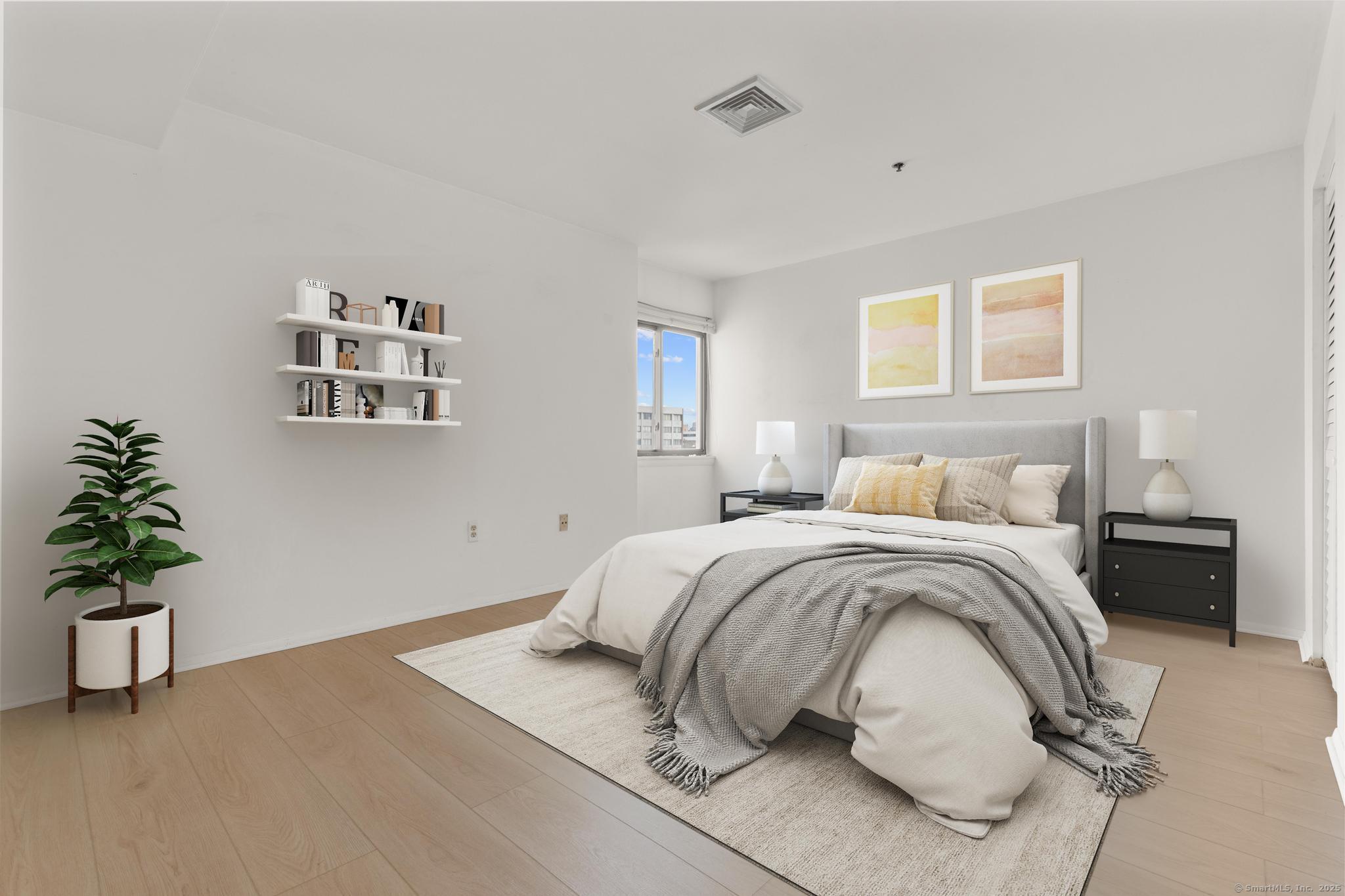 Discover elevated living in this turnkey 2 bedroom 2 bathroom condo perfectly situated in a private building in downtown Stamford. Offering 1,407 square feet of open concept living space, this condo combines comfort, convenience and style with thoughtful updates throughout. Step into a sun-filled oversized living and dining area, with a large slider leading out to a spacious private balcony overlooking the city, the perfect spot to enjoy morning sunrises quietly located in the back of the building, off the street. Back inside, the kitchen features a breakfast bar designed for both entertaining and everyday living. Luxurious primary bedroom features an en-suite bathroom and a walk in closet. Second bedroom is oversized w/ ample closet space. A second full bathroom serves the second bedroom and guests with ease. Features include a newer HVAC system, a newer hot water heater, all new flooring & in-unit full size laundry. Residents of this well maintained elevator building enjoy outstanding amenities including a state of the art fitness center w/ sauna and two parking spaces with one reserved garage spot and an additional covered space on a first come first serve basis. Located just steps from downtown Stamford, Mill River Park, Scalzi Park, shopping, dining, entertainment & the train station, this home delivers the perfect combination of luxury and convenience.