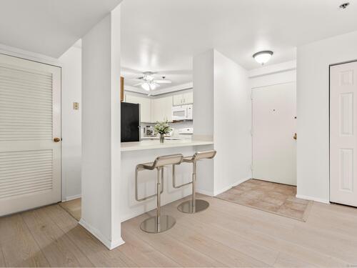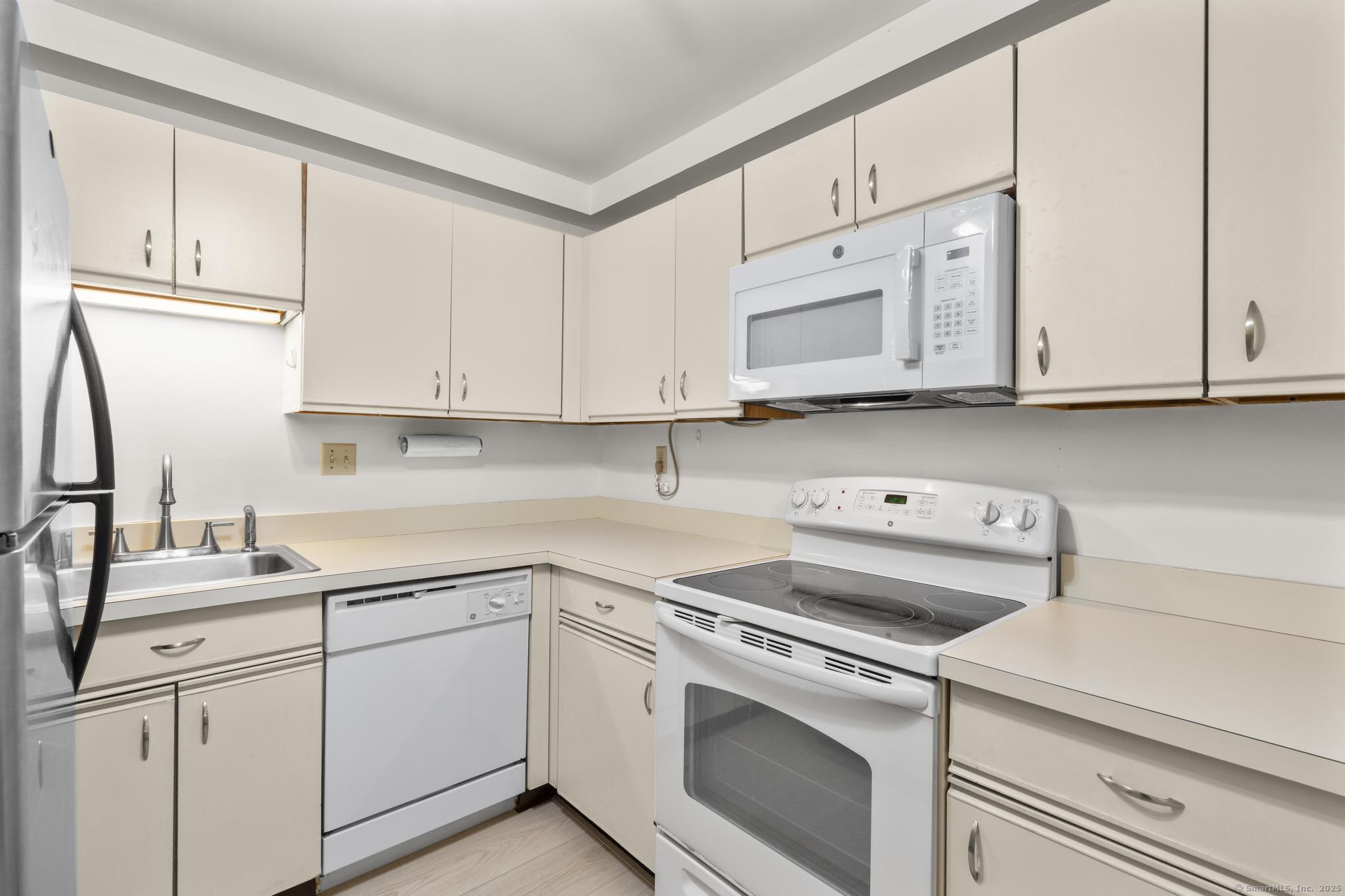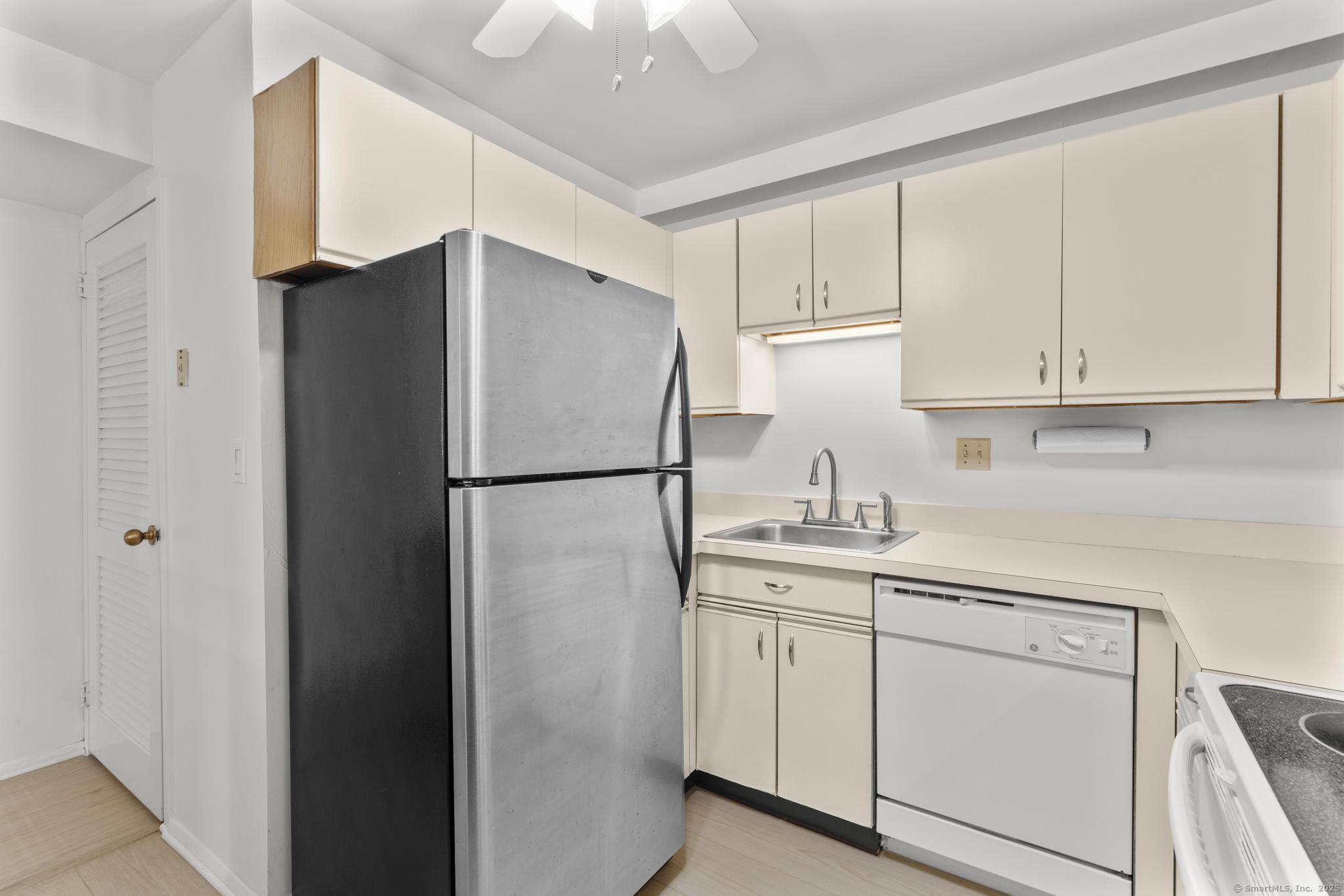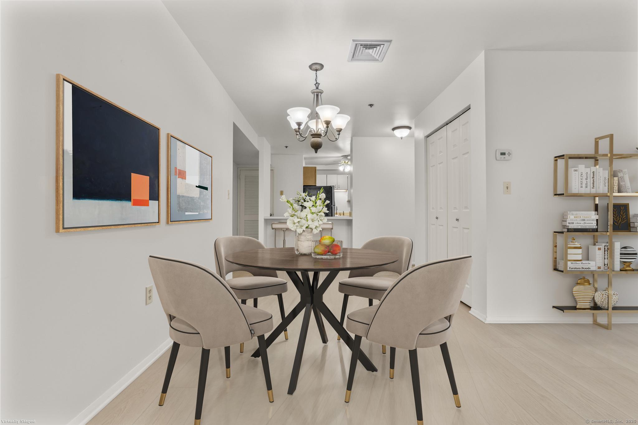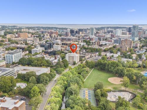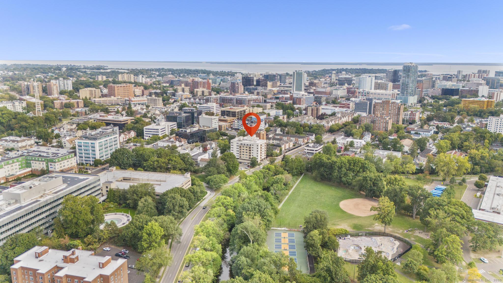 Discover elevated living in this turnkey 2 bedroom 2 bathroom condo perfectly situated in a private building in downtown Stamford. Offering 1,407 square feet of open concept living space, this condo combines comfort, convenience and style with thoughtful updates throughout. Step into a sun-filled oversized living and dining area, with a large slider leading out to a spacious private balcony overlooking the city, the perfect spot to enjoy morning sunrises quietly located in the back of the building, off the street. Back inside, the kitchen features a breakfast bar designed for both entertaining and everyday living. Luxurious primary bedroom features an en-suite bathroom and a walk in closet. Second bedroom is oversized w/ ample closet space. A second full bathroom serves the second bedroom and guests with ease. Features include a newer HVAC system, a newer hot water heater, all new flooring & in-unit full size laundry. Residents of this well maintained elevator building enjoy outstanding amenities including a state of the art fitness center w/ sauna and two parking spaces with one reserved garage spot and an additional covered space on a first come first serve basis. Located just steps from downtown Stamford, Mill River Park, Scalzi Park, shopping, dining, entertainment & the train station, this home delivers the perfect combination of luxury and convenience.