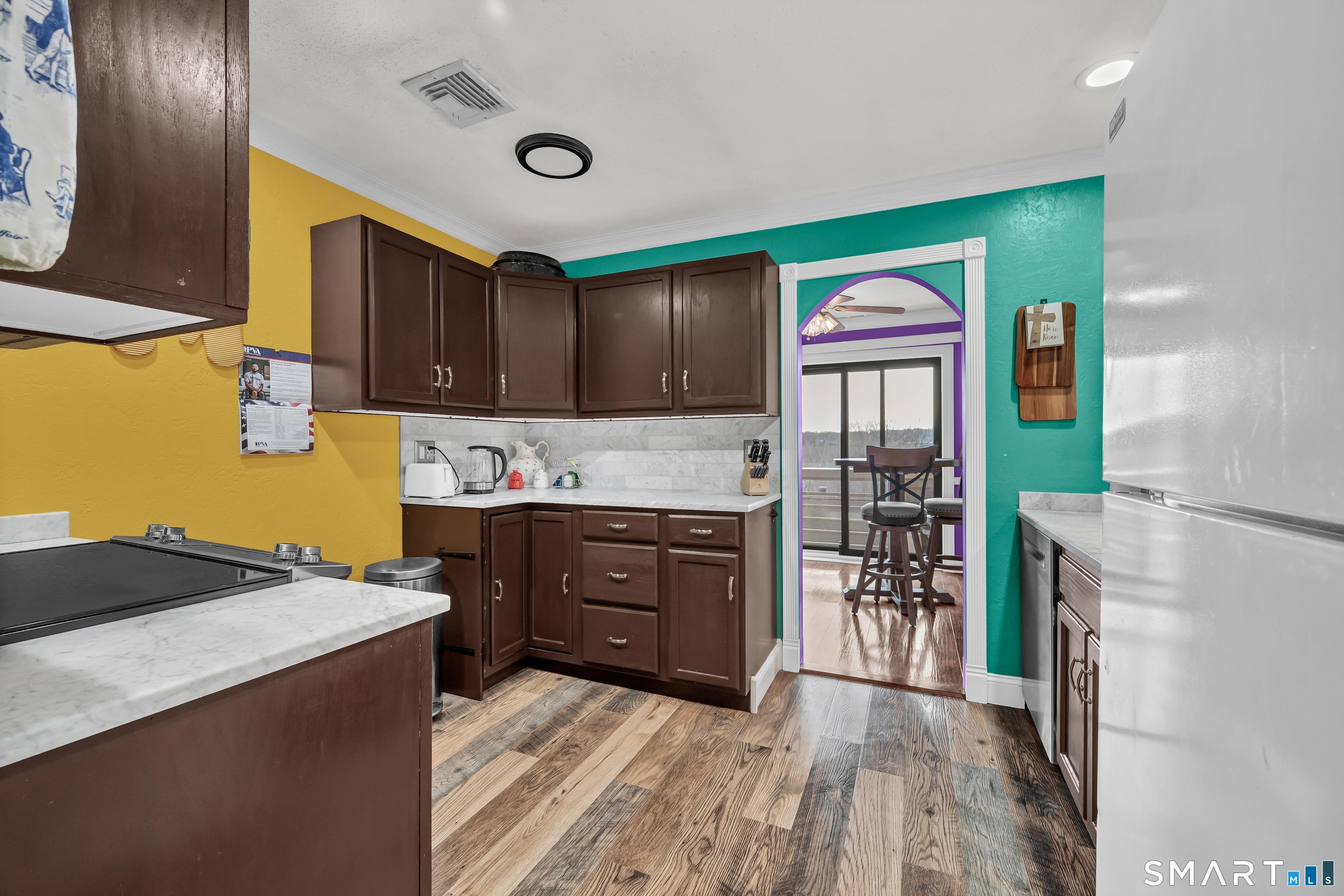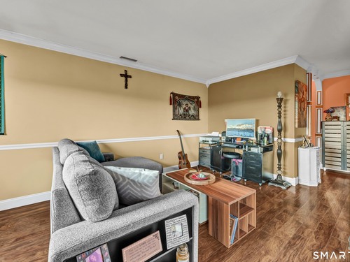 This charming and cheerful 1 bedroom condo in the popular Shepherd Hill community welcomes you home. Well maintained by long term owner, this unit offers a beautiful custom built-in book case, crown molding and chair rail accents. Easy flowing floor plan for entertaining or daily living. Updated kitchen with newer appliances and a double oven. Marble counters, pretty backsplash and plenty of cabinet space. Step out to the deck offering hilltop views, lovely any season- local fireworks can be enjoyed from this perch! The balcony door is newly installed and the warranty transfers to the new owners. Primary bedroom has an electric fireplace with fan, thermostat and remote control-adding function and ambiance. Generous closet space. Practical in-unit laundry. The community offers residents an inground pool, playground and ample visitor parking. Minutes to major shopping, services, restaurants & commuter routes make this an ideal spot. Visit today.