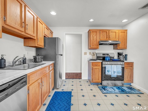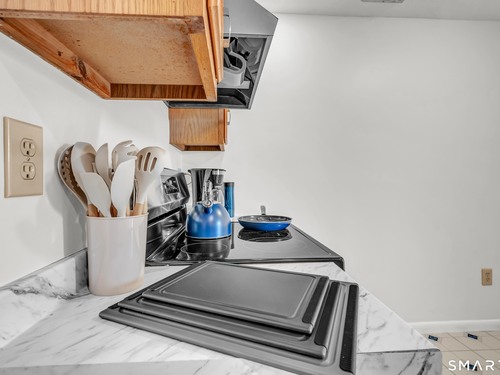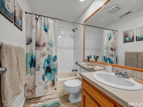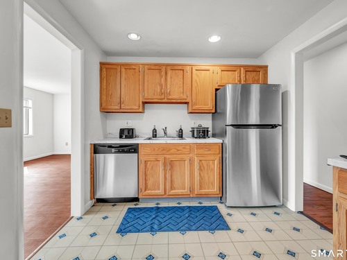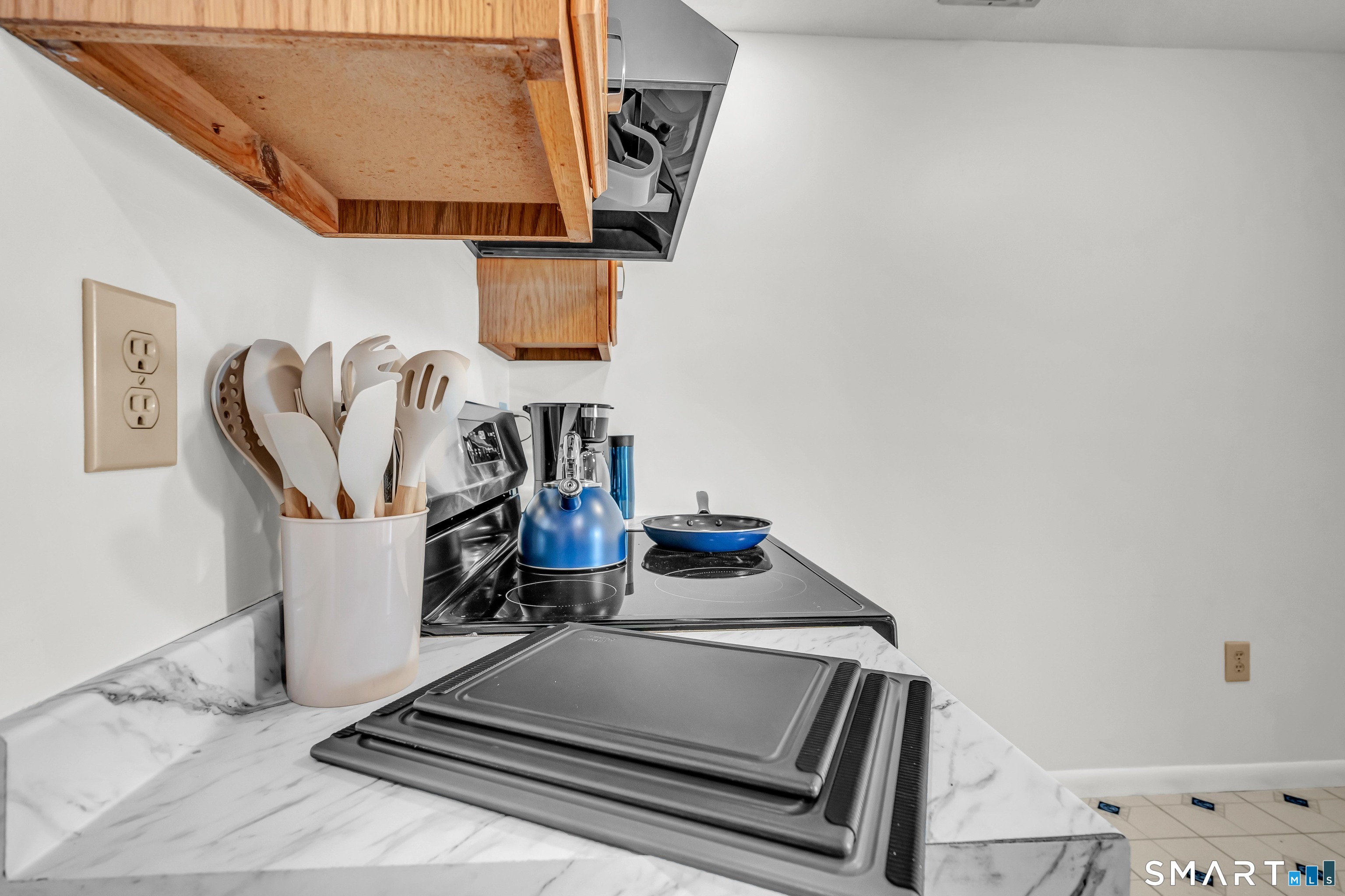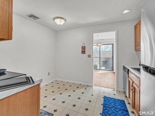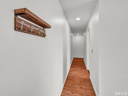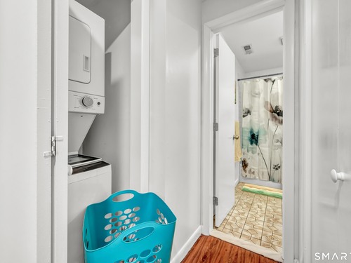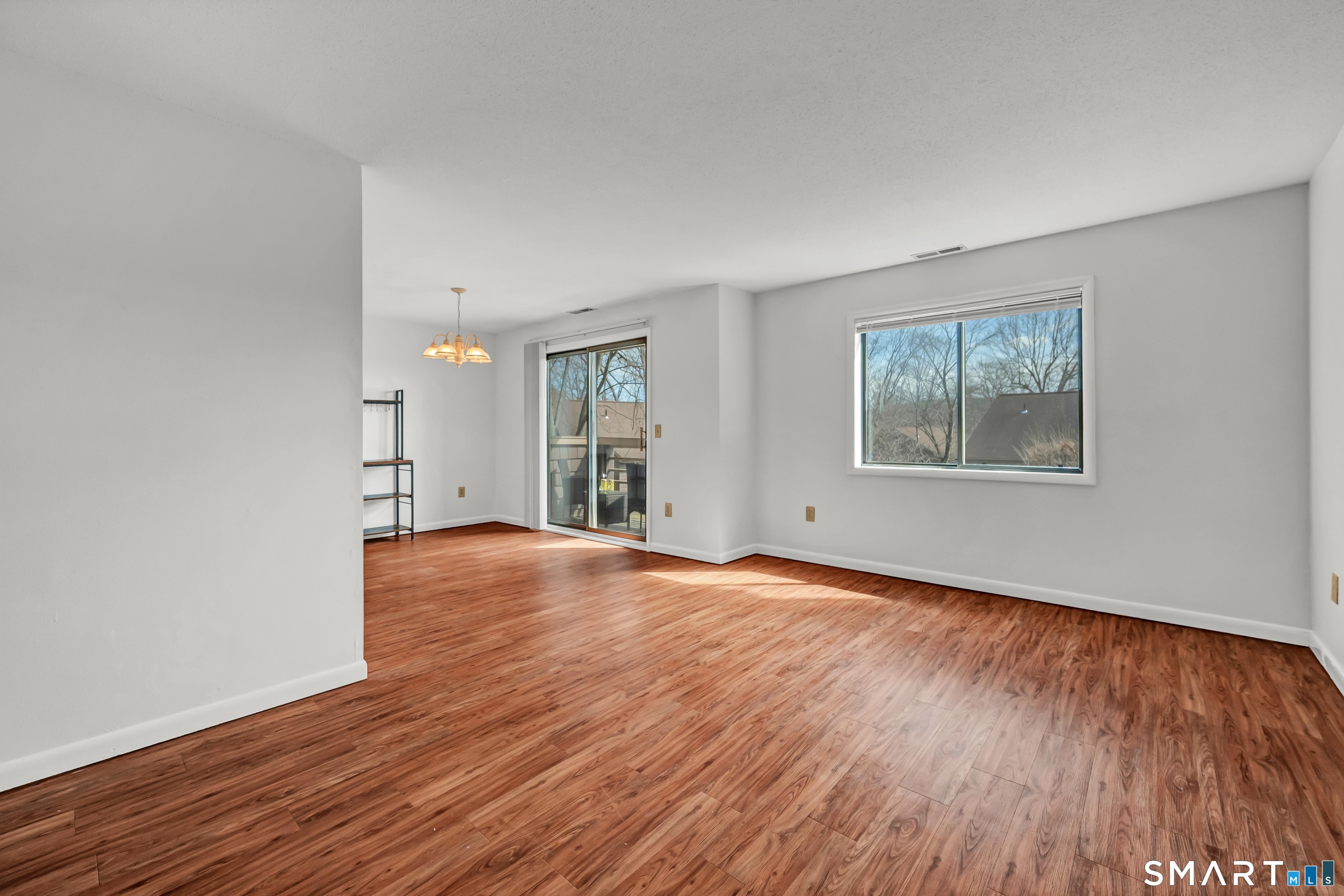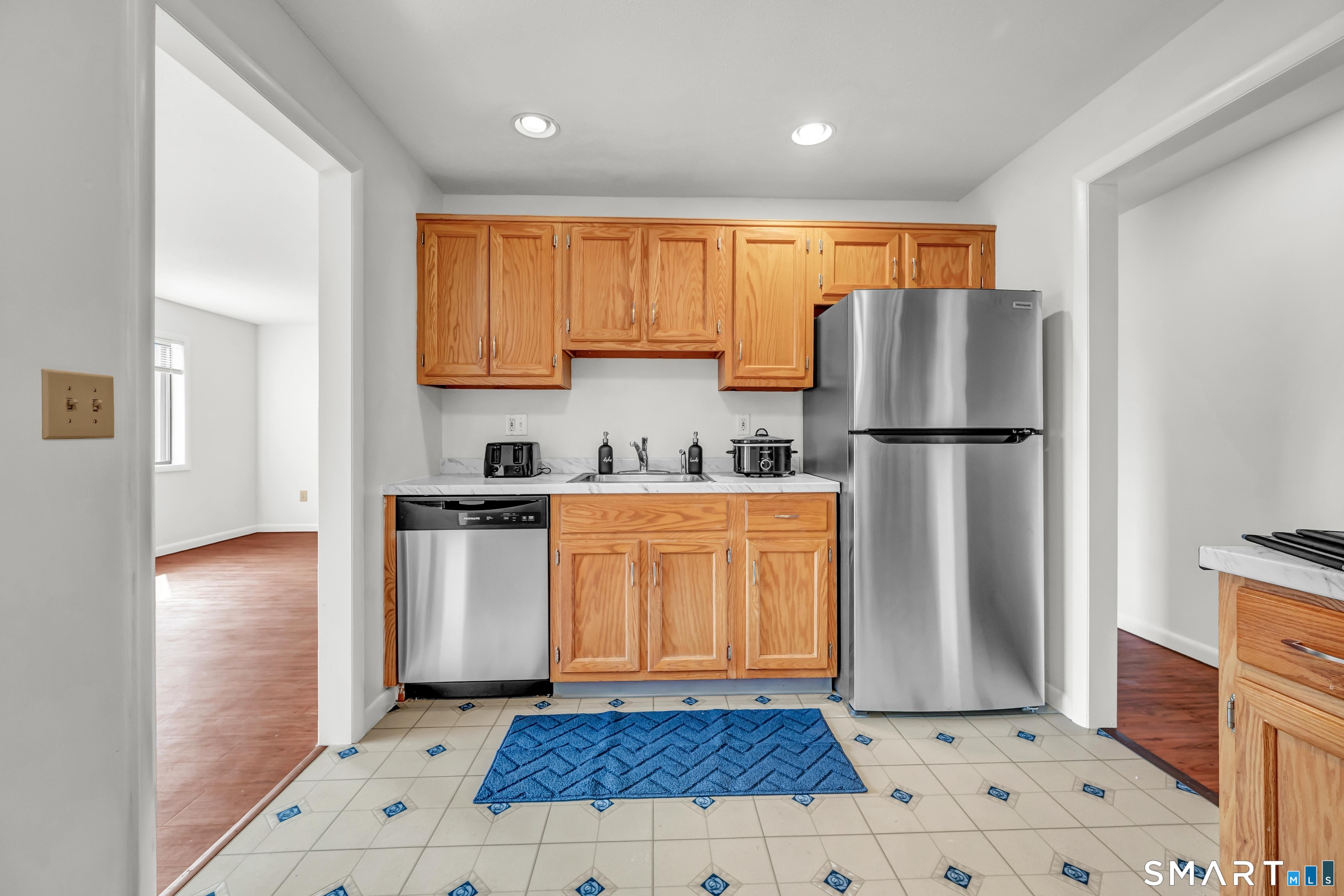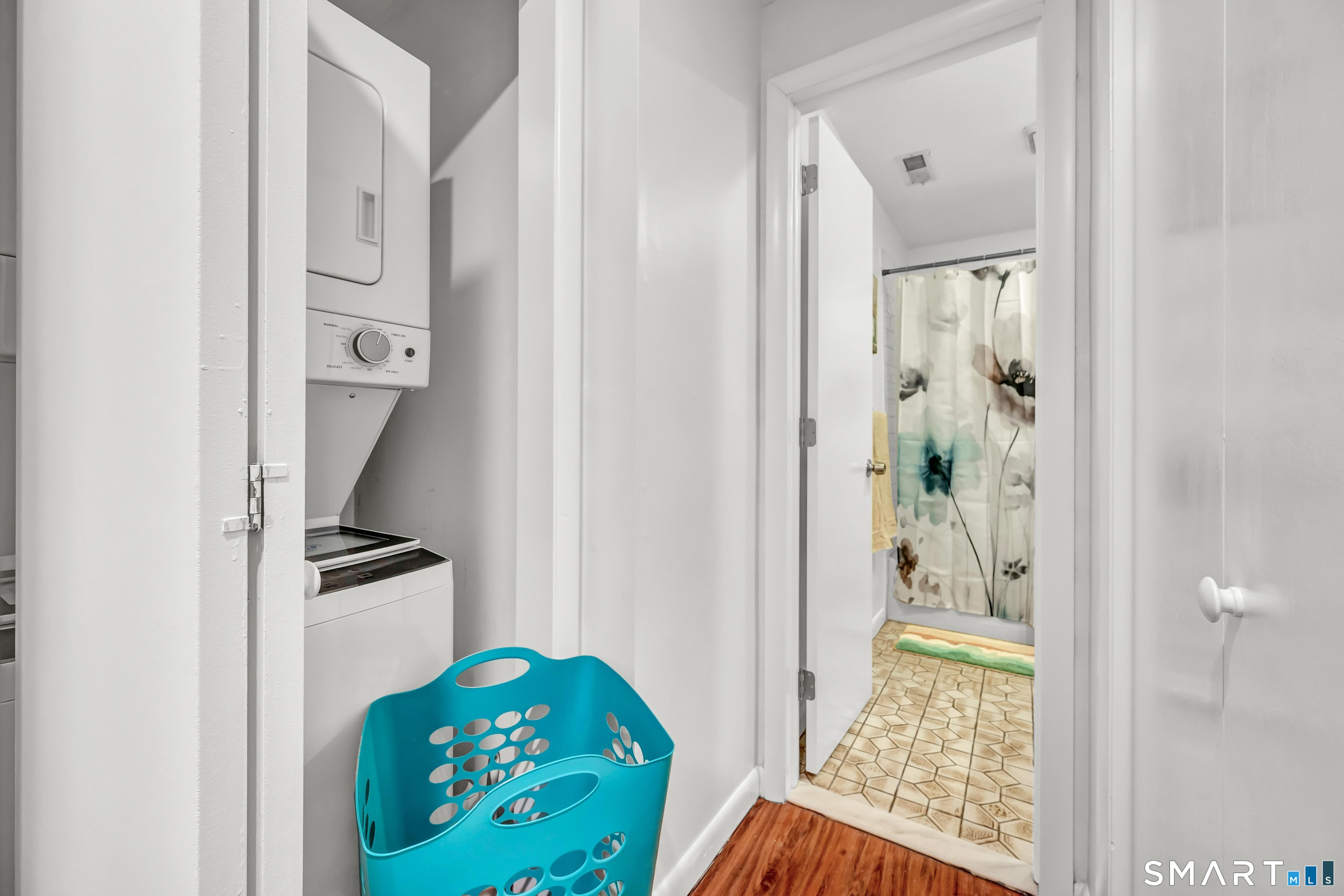 This bright, spacious, and move-in ready lower level condo located in coveted Good Shepard Hill is waiting for its next owner. The open-concept living and dining room area is filled with natural light and gleaming flooring. The updated eat-in kitchen boasts brand new stainless steel appliances with ample cabinetry and room for a table to dine on. The bedroom is a generous size, perfect for a king size bed and has an enviable closet. The full bath with tiled tub completes this special unit. Additional highlights include in-unit laundry with new washer/dryer, central air, and a private outdoor space ideal for relaxing or enjoying your morning coffee. Good Shepherd Hill offers a quiet setting while still being just minutes from shopping, dining, major highways,, and all that Danbury has to offer.