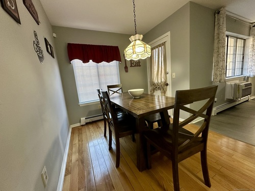 Beautiful 1-Bed/1 bath condo at Foxledge! Enjoy the comfort and convenience of this 1st floor unit. As you enter, you're greeted by a bright and spacious Living Room with vinyl flooring, a large window and access to the balcony. The Living Room seamlessly connects to the Dining Room providing an easy and open flow between both spaces. The Kitchen is well-appointed with white cabinets, stainless steel refrigerator and gas range. A well-sized Bedroom has a walk-in closet and wall-to-wall carpet. The bathroom has a tub/shower combo and stylish sink with gray undercabinet. A all-in-one washer and dryer in the unit adds convenience and space savings. Additional storage space at the lower level. The private balcony with views to the pool is a perfect spot for relaxing, reading or savoring a cup of coffee. This property is in excellent condition. HOA INCLUDE HEAT, HOT WATER, WATER and SEWER, offering great savings throughout the year! Assigned parking space plus plenty of open spots and visitors' parking. The GATED entrance provides an added layer of security, ensuring that only residents and authorized guests can enter the complex. Enjoy the summers by the POOL! Excellent location in the North End close to mall, restaurants, park, shopping, public transportation, library, Sacred Heart University and Merritt Parkway! This property is move-in-ready!! Make your appointment today!