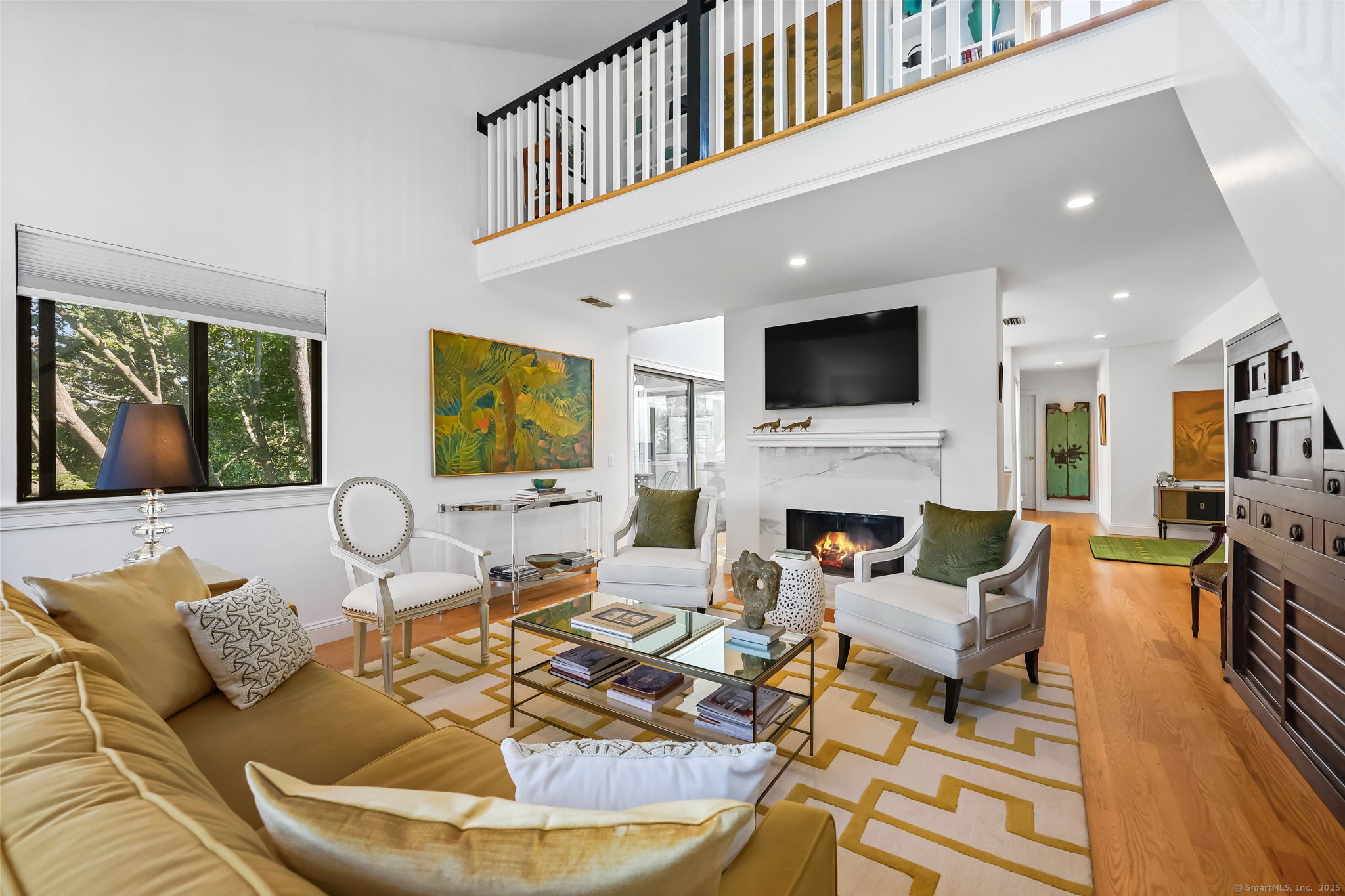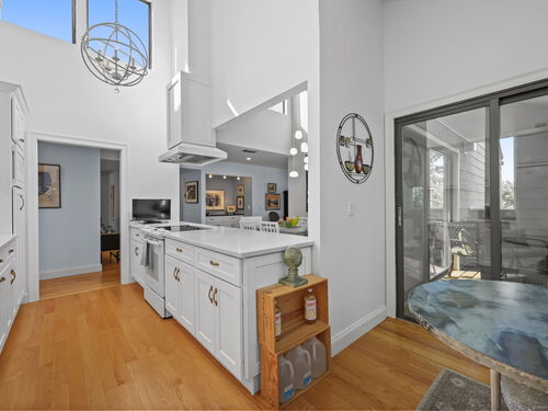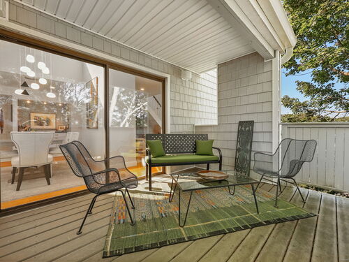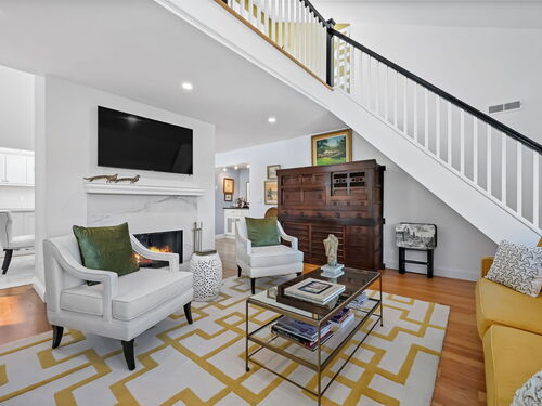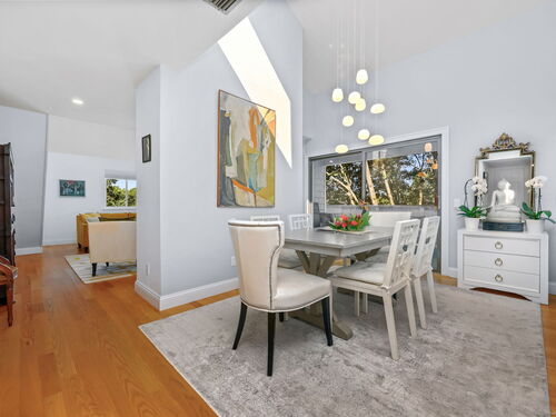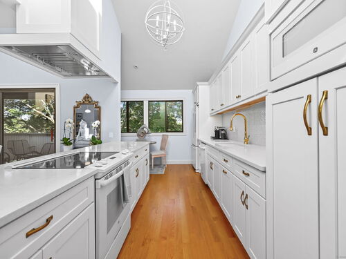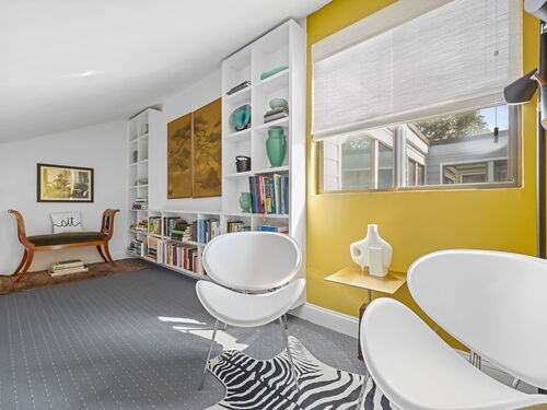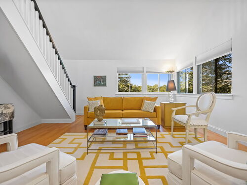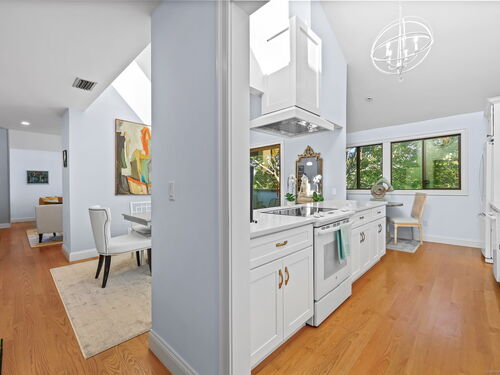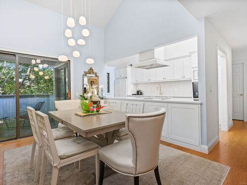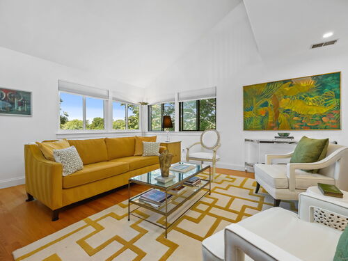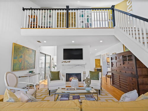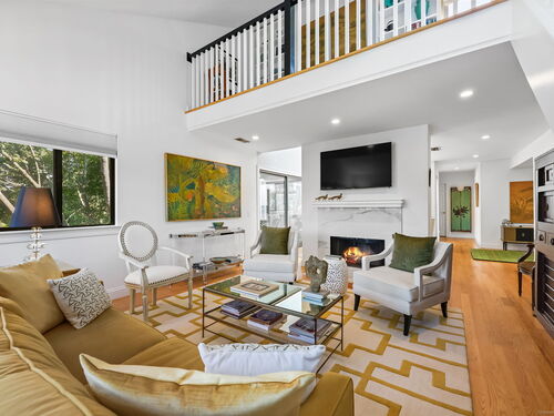 Welcome to the magnificent home of a connoisseur of art and design. Masterfully remodeled, floor to ceiling in 2020, every room was appointed with high-end finishes and selections, epitomizing luxury and style. Features include a custom designed open kitchen with white granite counter tops all new appliances and brass hardware that opens to a cathedral ceiling dining room. The living room offers panoramic views of the tennis court, pool and natural vistas with highlights that include porcelain surround fireplace, built-in dry bar with black marble countertop and a custom staircase that leads to a library loft with built-in bookshelves. Each secondary bedrooms includes a loft spaces. The private deck offers two entry sliders from both the dining room and breakfast nook. The master suite features walk-in closets and a marble-clad bath with jacuzzi a Kohler whirlpool soaking tub. Every corner of this bright and airy corner unit invites you to relax in a private sanctuary and revel in the elevated lifestyle it provides.