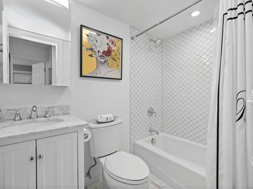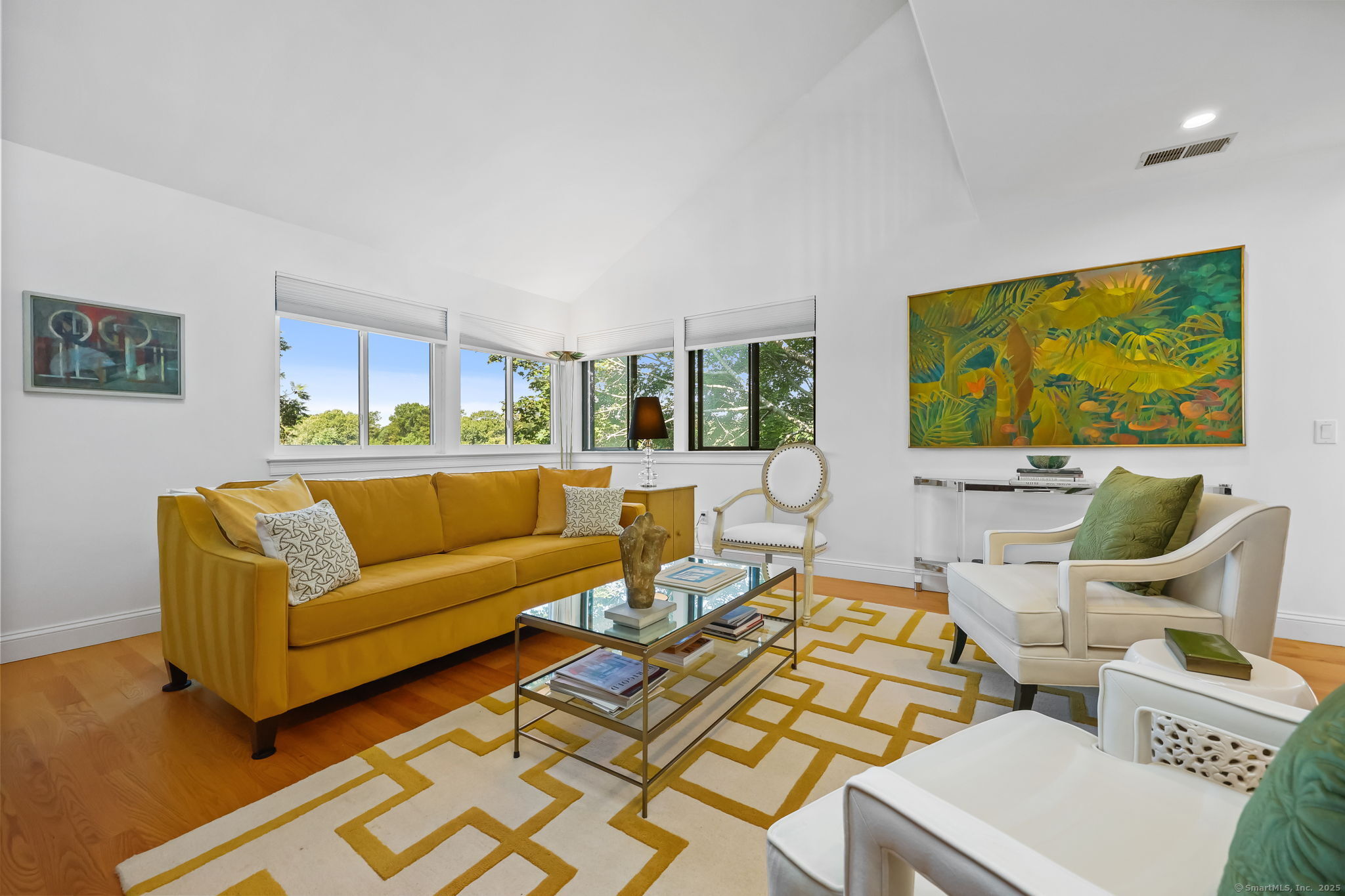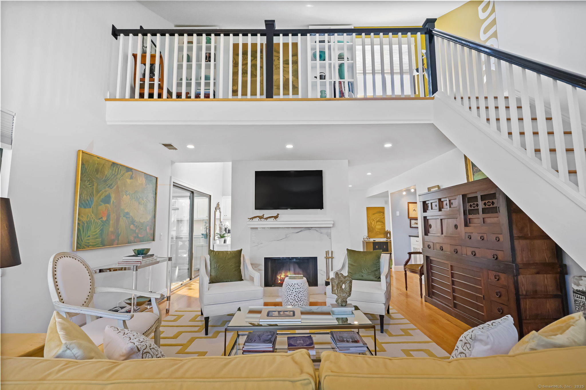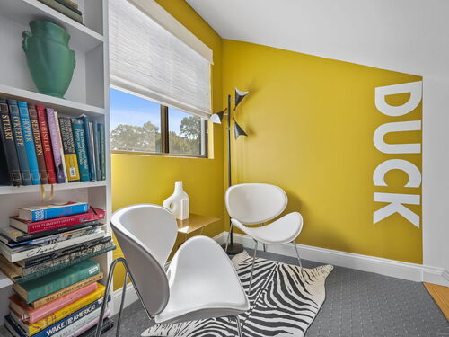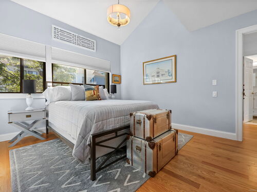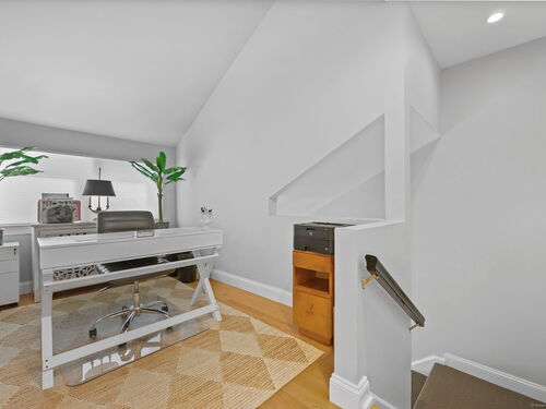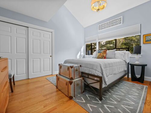 Welcome to the magnificent home of a connoisseur of art and design. Masterfully remodeled, floor to ceiling in 2020, every room was appointed with high-end finishes and selections, epitomizing luxury and style. Features include a custom designed open kitchen with white granite counter tops all new appliances and brass hardware that opens to a cathedral ceiling dining room. The living room offers panoramic views of the tennis court, pool and natural vistas with highlights that include porcelain surround fireplace, built-in dry bar with black marble countertop and a custom staircase that leads to a library loft with built-in bookshelves. Each secondary bedrooms includes a loft spaces. The private deck offers two entry sliders from both the dining room and breakfast nook. The master suite features walk-in closets and a marble-clad bath with jacuzzi a Kohler whirlpool soaking tub. Every corner of this bright and airy corner unit invites you to relax in a private sanctuary and revel in the elevated lifestyle it provides.