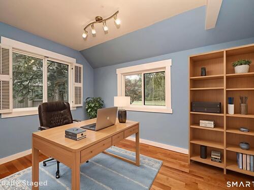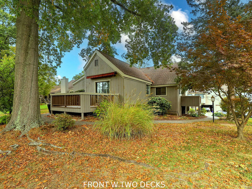 True 2-bedroom Whittier model, one of Oronoque Village's most coveted and spacious floor plans, beautifully maintained and ideally set on a quiet cul-de-sac with generous parking. The inviting main level features vaulted ceilings, hardwood floors, and a cozy gas fireplace, with sliders from the living area opening to a private deck. The thoughtfully designed kitchen offers granite countertops, hardwood flooring, plantation shutters, and a bright breakfast nook. The main level includes a serene primary suite with a walk-in closet, full bath, and sliders to a private deck with an electric awning. A second bedroom, featuring built-ins, a Murphy bed, and new carpet, provides excellent flexibility for guests or everyday living. A separate den/office offers peaceful views and an ideal space for work or relaxation. The finished lower level adds over 955 square feet of additional living space, including a large open area, a half bath with expansion potential, a cedar closet, and abundant storage-perfect for guests, media, or recreation. A rare opportunity to enjoy privacy, outdoor living, and a highly functional 2-bedroom layout in one of Oronoque Village's most desirable settings-offered at an exceptional value of $499,000.
