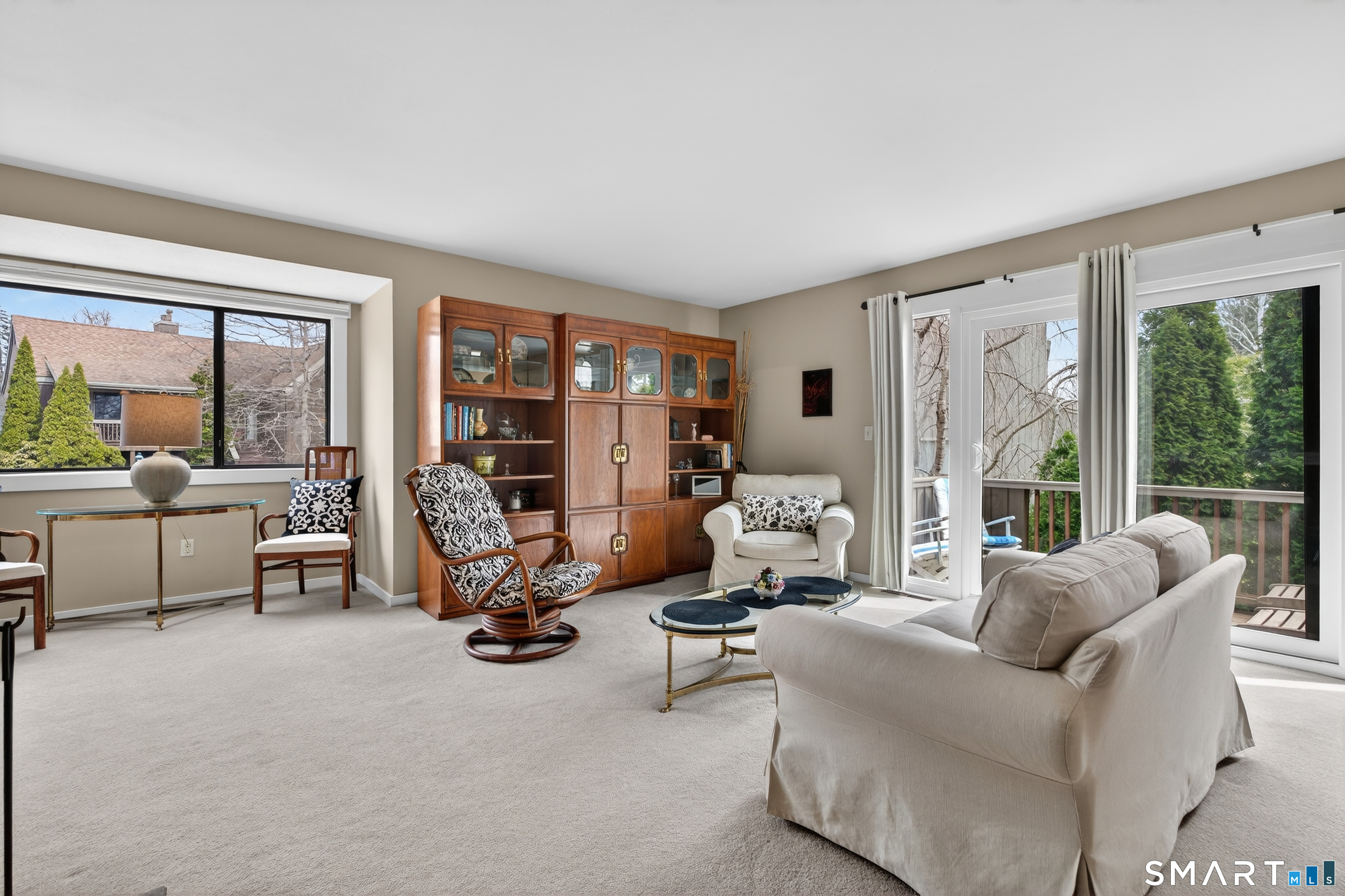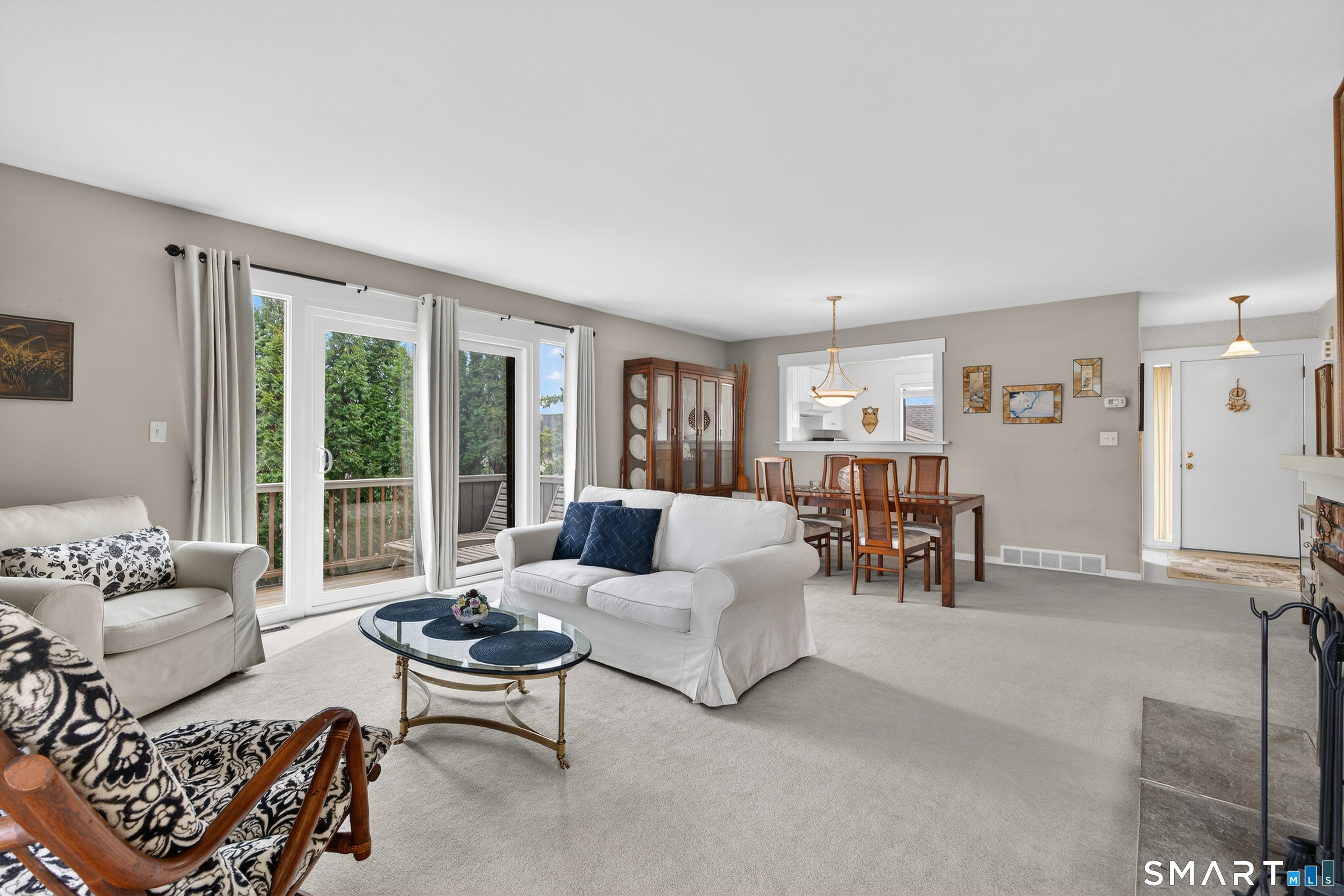 Balcony/Deck, Fireplace, Sliders, Wall/Wall Carpet