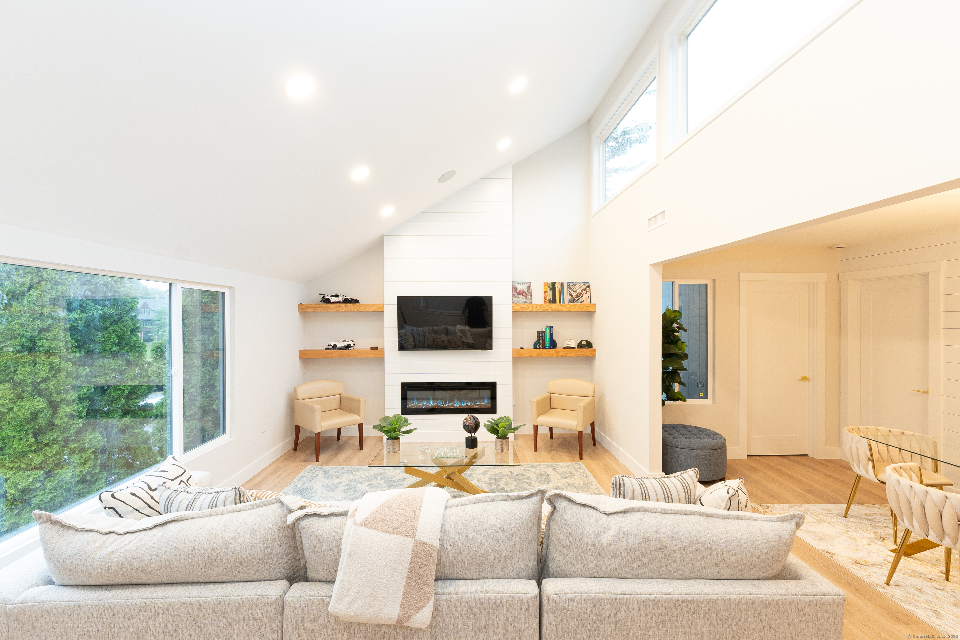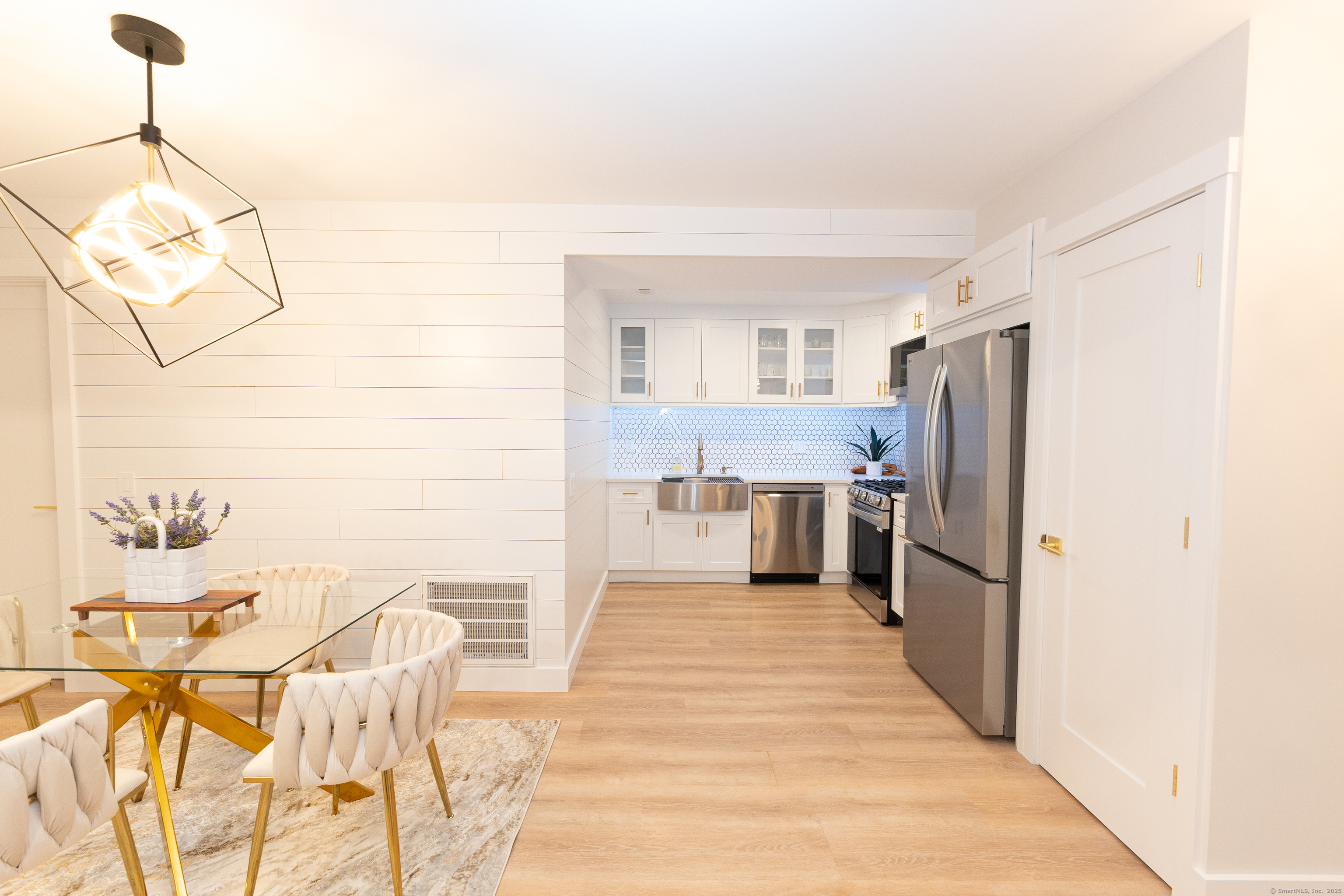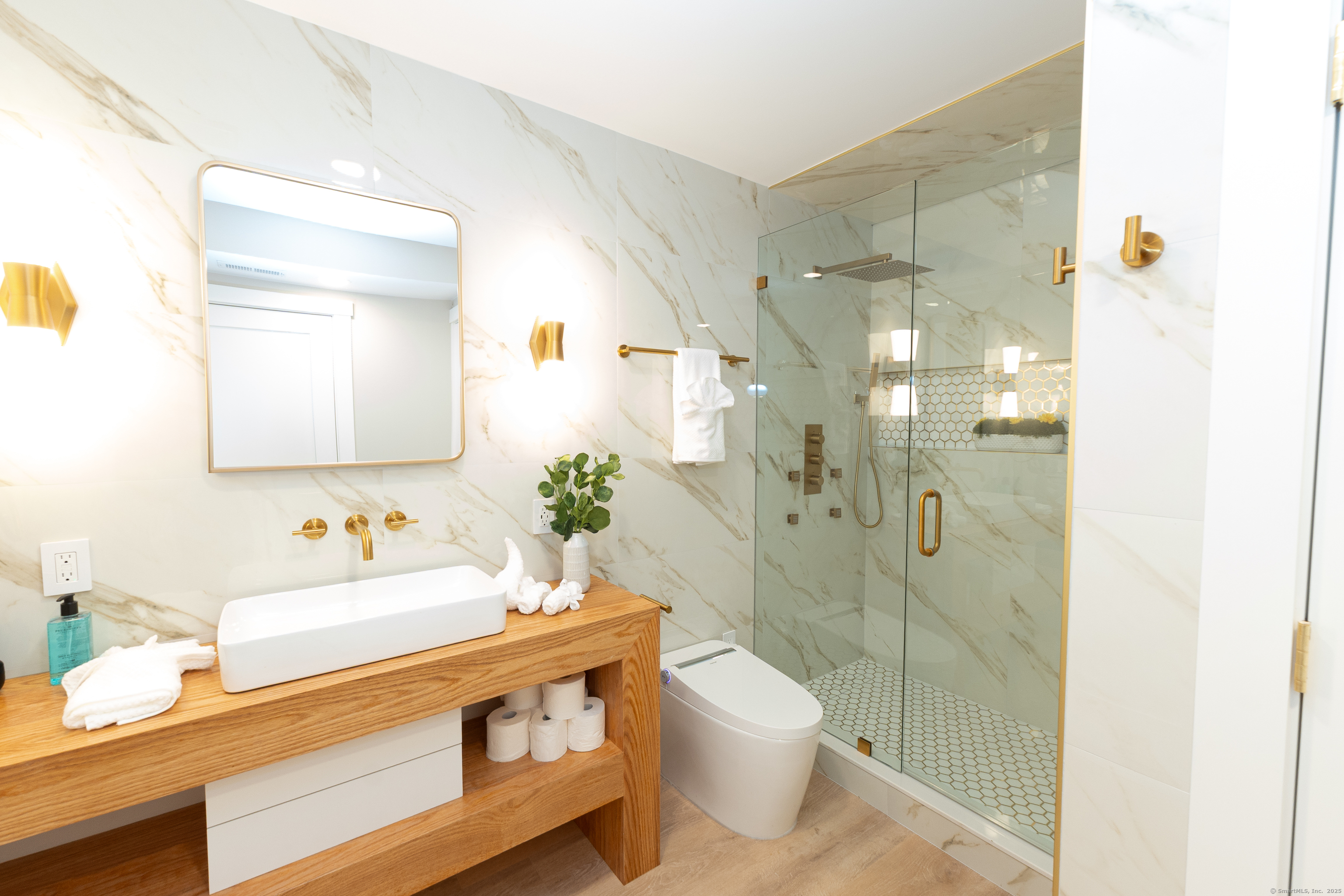 Welcome to this beautifully renovated 1-bed, 1-bath condo in the desirable Fox Hill community of Ridgefield, CT. Blending style and function, this home features an open layout that effortlessly connects living, dining, and kitchen spaces-ideal for both entertaining and everyday living. The kitchen is a true statement-maker, with honeycomb tile backsplash, sleek gold fixtures/hardware, and matching stainless steel appliances that bring in a classy, modern feel. The spacious bedroom offers plenty of room for rest and relaxation, while the home's design details elevate the space from every angle. The shower is adorned with floor-to-ceiling tile, a frameless full glass door, and a spa-worthy setup complete with a rainfall shower head, body jets, and handheld wand-all accented in luxurious gold. Not to mention the heated toilet and gorgeous custom vanity. But THE place to be is the living room. Electric fireplace, built-in speakers, hidden AV/cable setup behind TV... a fantastic open space to dress up however you like. Truly a room to LIVE in. Living in Fox Hill means enjoying not just your beautiful home, but also Ridgefield's exceptional offerings. You're just minutes from downtown Ridgefield's boutique shops, Ridgefield Playhouse performances, local farmers' markets, and the Aldrich Contemporary Art Museum. Outdoor lovers will appreciate the nearby Ballard Park, hiking trails, and scenic nature preserves. You cannot miss this, come take a look today!