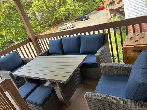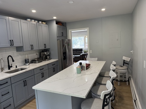 Beautifully Renovated 2-Bedroom Condo in Bridgeport's Desirable North End! Step into modern comfort in this fully updated condo featuring gleaming hardwood floors, recessed lighting, and custom design touches throughout. The spacious living room boasts a stunning built-in bar area complete with custom shelving, cabinetry, and a mini fridge - perfect for entertaining! Enjoy the convenience of a custom-built closet system offering generous storage. The renovated kitchen includes a stylish new island with added cabinetry, brand-new appliances, and a sliding glass door leading to a private deck - ideal for relaxing or outdoor dining. Additional highlights include in-unit laundry on the main floor, shared basement storage, and dedicated parking. Located in a well-maintained complex in Bridgeport's North End, close to shops, schools, parks, and major highways. Move-in ready and a must-see!