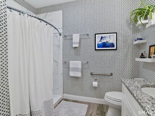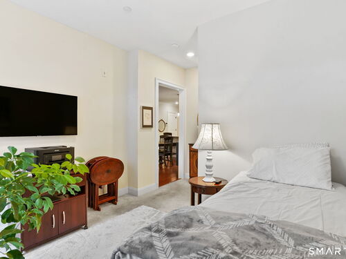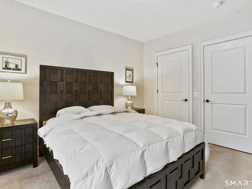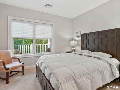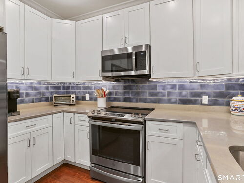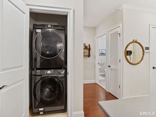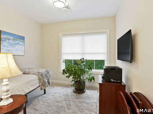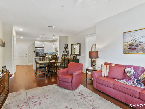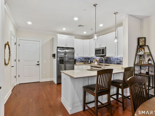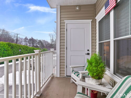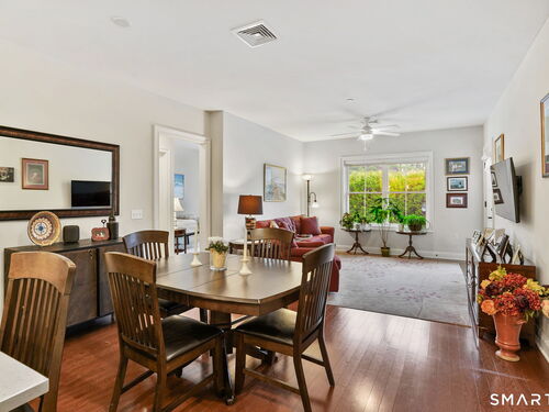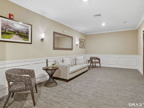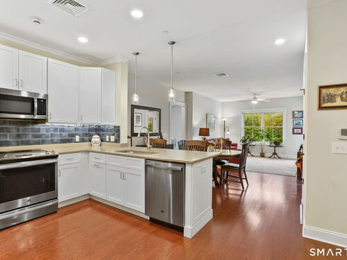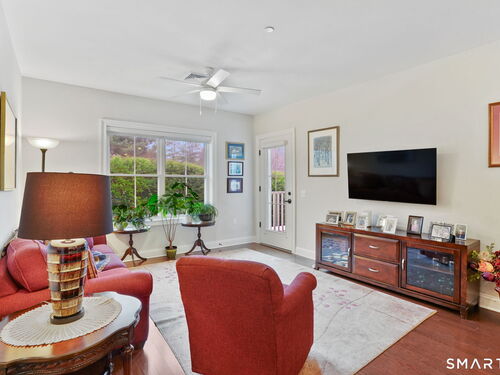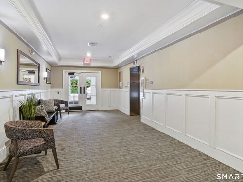 Enjoy effortless living in this beautifully appointed condo located in a sought-after 55+ community in Ridgefield, CT. Newer construction with lovely high ceilings creates a bright, open feel throughout. The residence features a spacious primary bedroom with a walk-in closet and a renovated full bath, thoughtfully designed for comfort and style. The open-concept kitchen flows seamlessly into the dining and living areas, all opening to a private balcony-perfect for morning coffee or relaxing outdoors. A versatile den with a convenient half bath adds flexibility for guests, a home office, or hobby space. Laundry is located in the unit for everyday ease. A parking space in the secure garage and a storage unit are included in this sale. Ideally situated, the building backs directly to the Recreation Center and Founders Hall (Ridgefield's senior center), connected by a scenic walking trail. Just minutes from town, shopping, medical facilities, and the library, this home also offers access to the many clubs, classes, cultural events, and activities that make Ridgefield such a vibrant place to live.