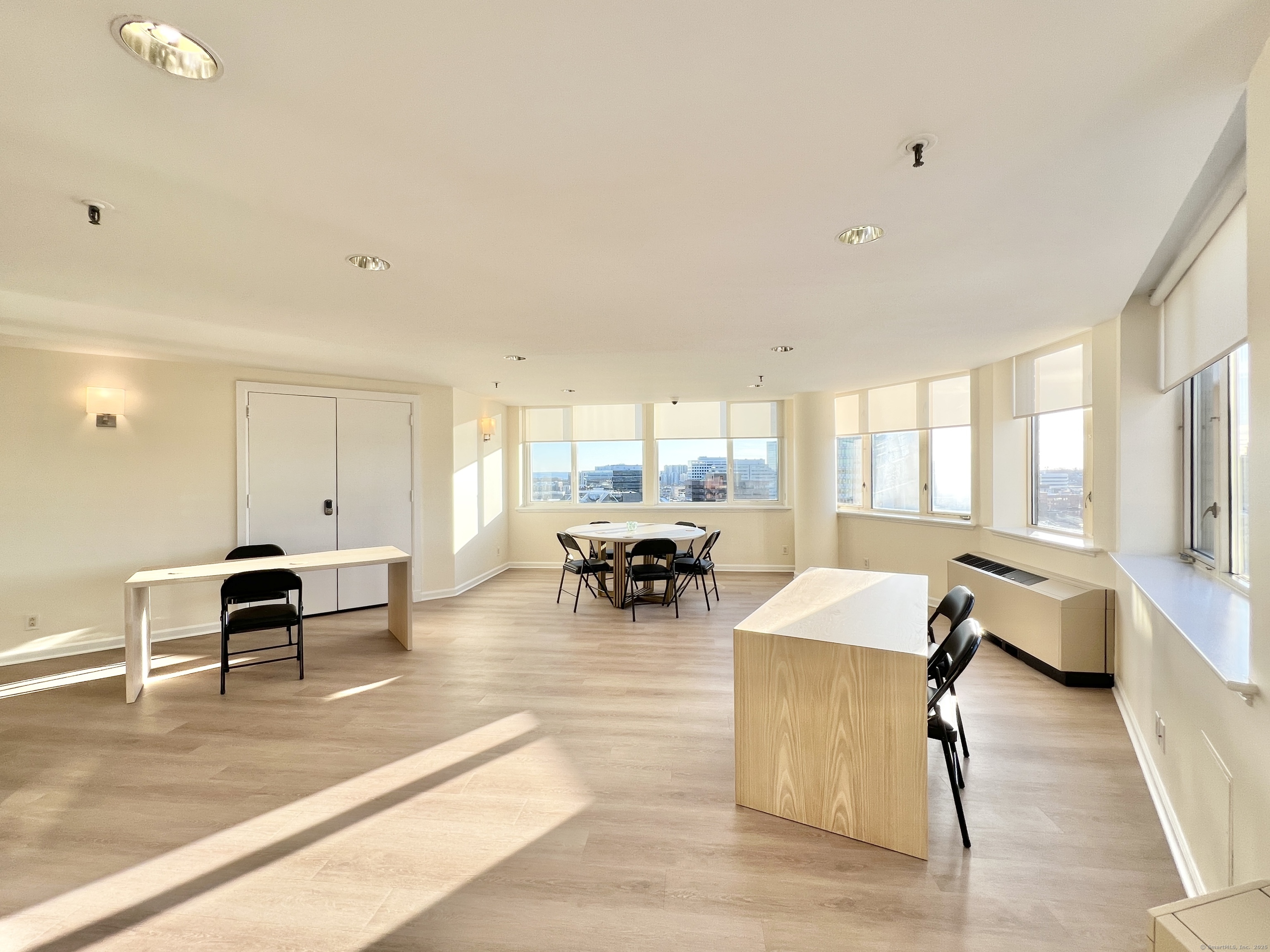 Experience Luxury Living at The Classic - 25 Forest Downtown Stamford. Offers a prestigious 24/7 concierge service and an upscale high-rise lifestyle. RENOVATED Stunning Large 1-BD, 1.5-BA, Den-Dining boasts an expansive floor plan designed to elevate your everyday living. A versatile Den/Dining/Office Area provides valuable 9x9 space. New Wood Floors in every room! The gourmet kitchen gleaming White marble countertops and cabinetry. Step out onto the double sized south-facing balcony. The generous Primary BD offers space for king size bed and abundant closets. Beautiful white bath has double sinks. W/D in Unit. 1 Deeded Garage Space Included. 11M is Cost Savings Alternative to a 2BR. The Classic Club with top-tier amenities: All-Season Pool, fitness center, lounge. Enjoy City Living at its finest!