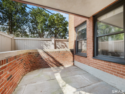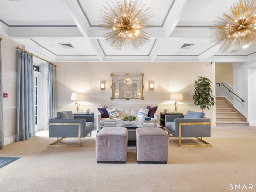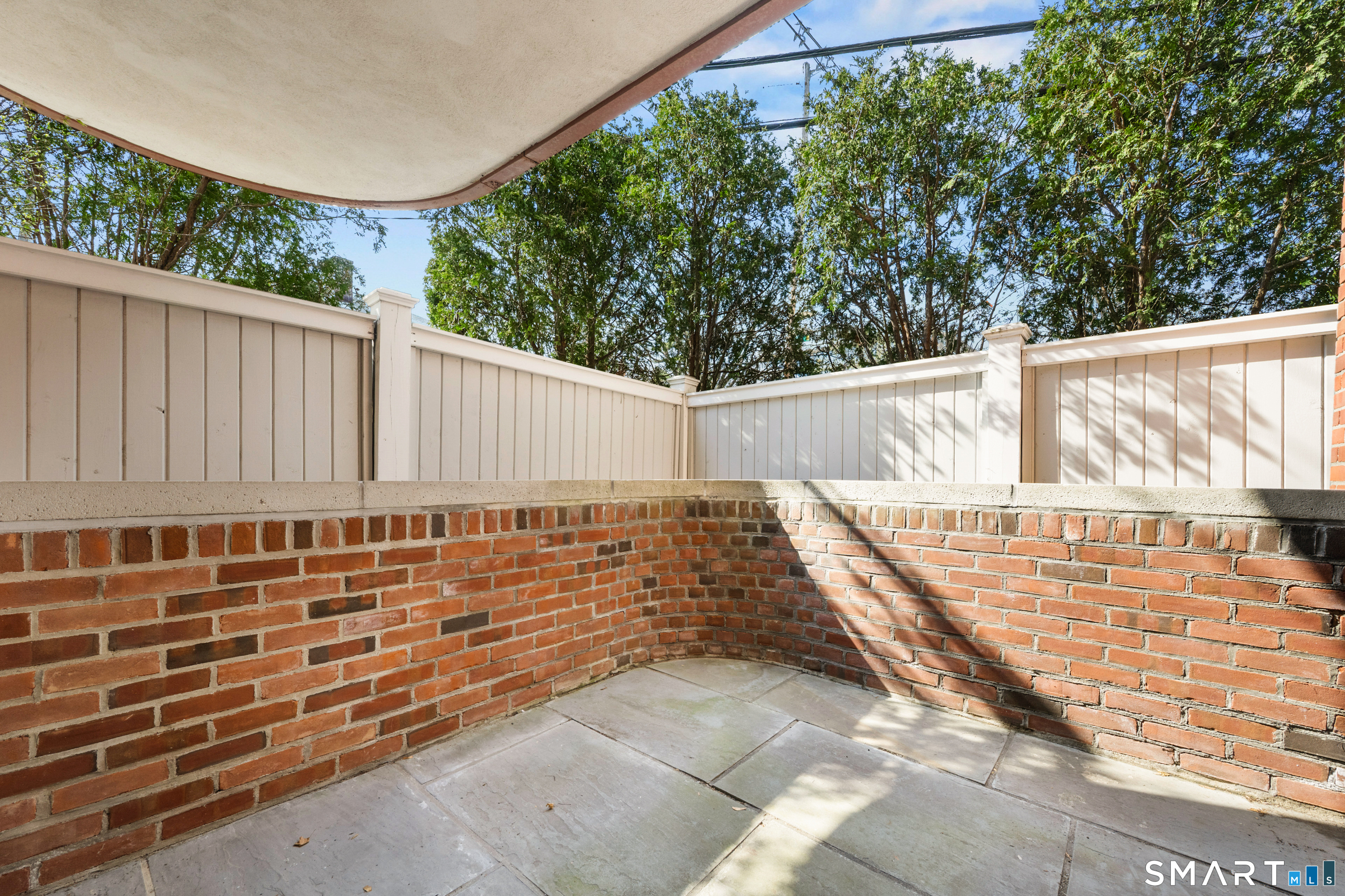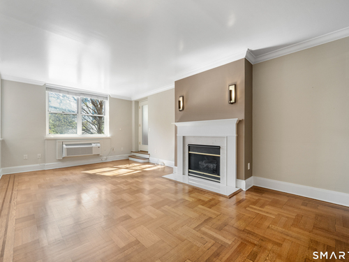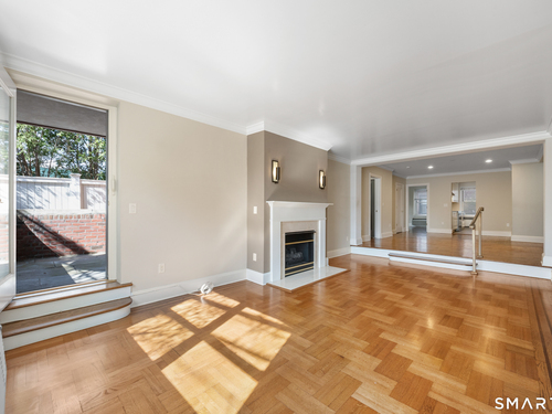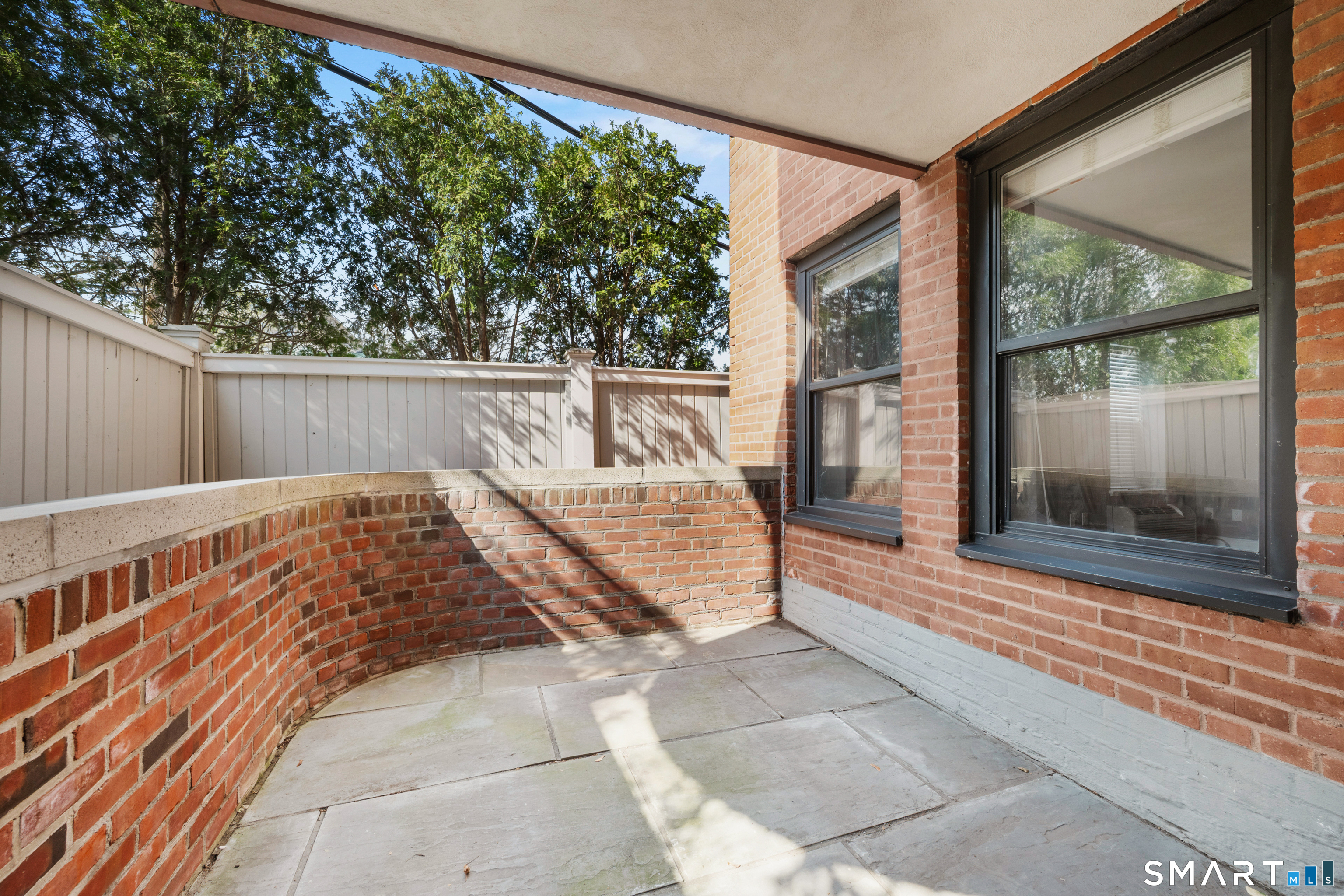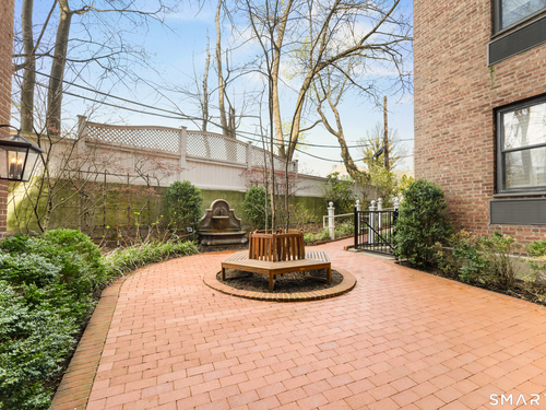 Exquisite, turnkey 2 bedroom, 2 bathroom residence located on the first floor of an elegant, full-service doorman building in the heart of downtown Greenwich. This beautifully renovated 1,250 sq ft home offers a seamless blend of sophistication and comfort. The thoughtfully designed interior features a chef's kitchen outfitted with premium Bosch appliances, opening into a gracious dining area and an additional sitting space ideal for both everyday living and entertaining. A sunken living room with a fireplace creates a warm, inviting atmosphere and leads to a private, covered terrace perfect for outdoor dining. Additional highlights include hardwood floors throughout, high ceilings, and generously proportioned rooms. Located just moments from Greenwich Avenue, 25 W Elm offers exceptional amenities, including a full-time doorman, assigned parking, and private storage unit. Move-in ready and ideally situated this is downtown Greenwich living at its finest.
