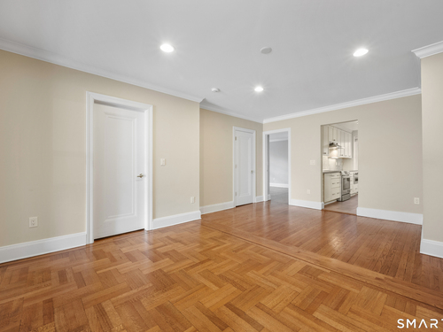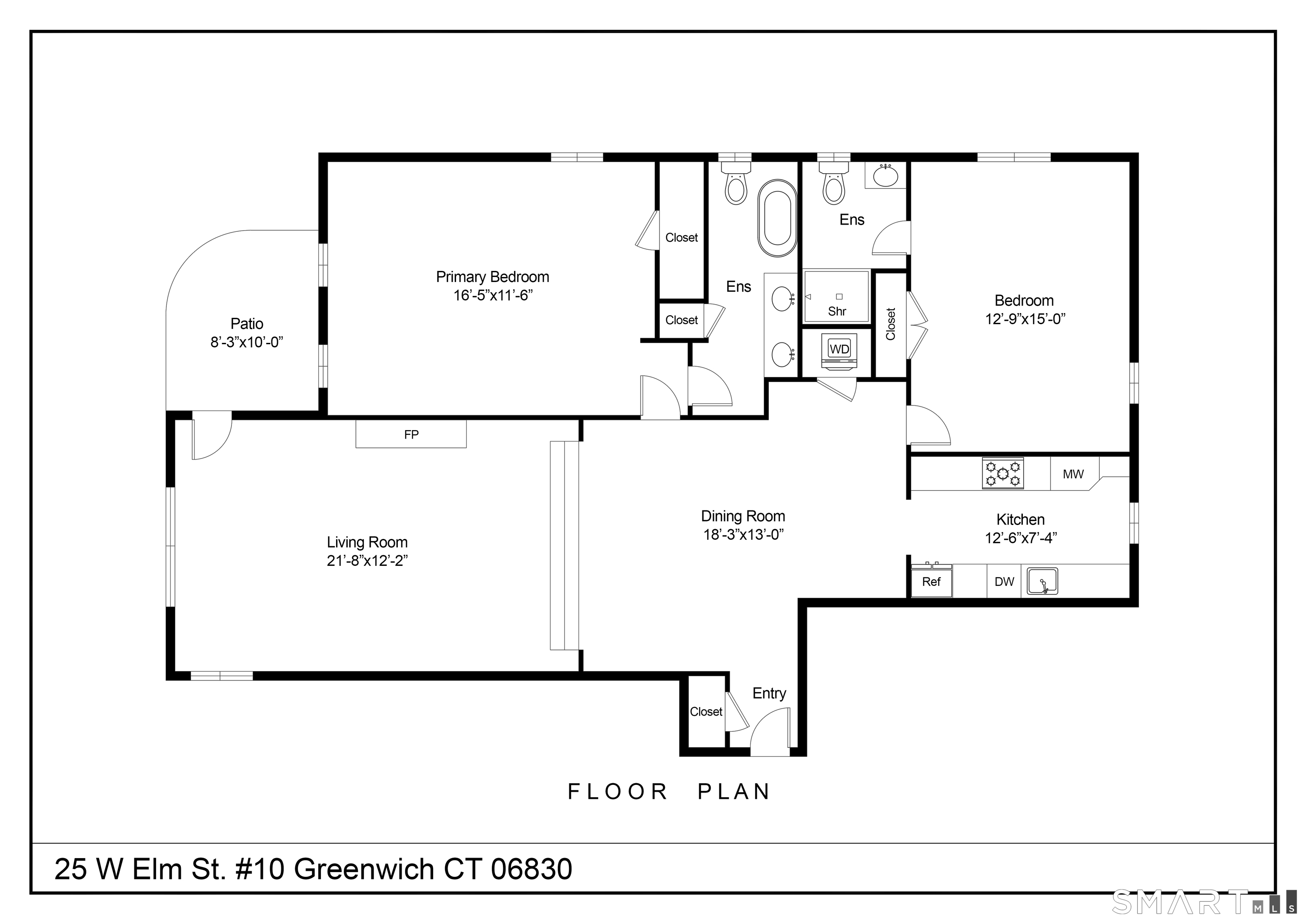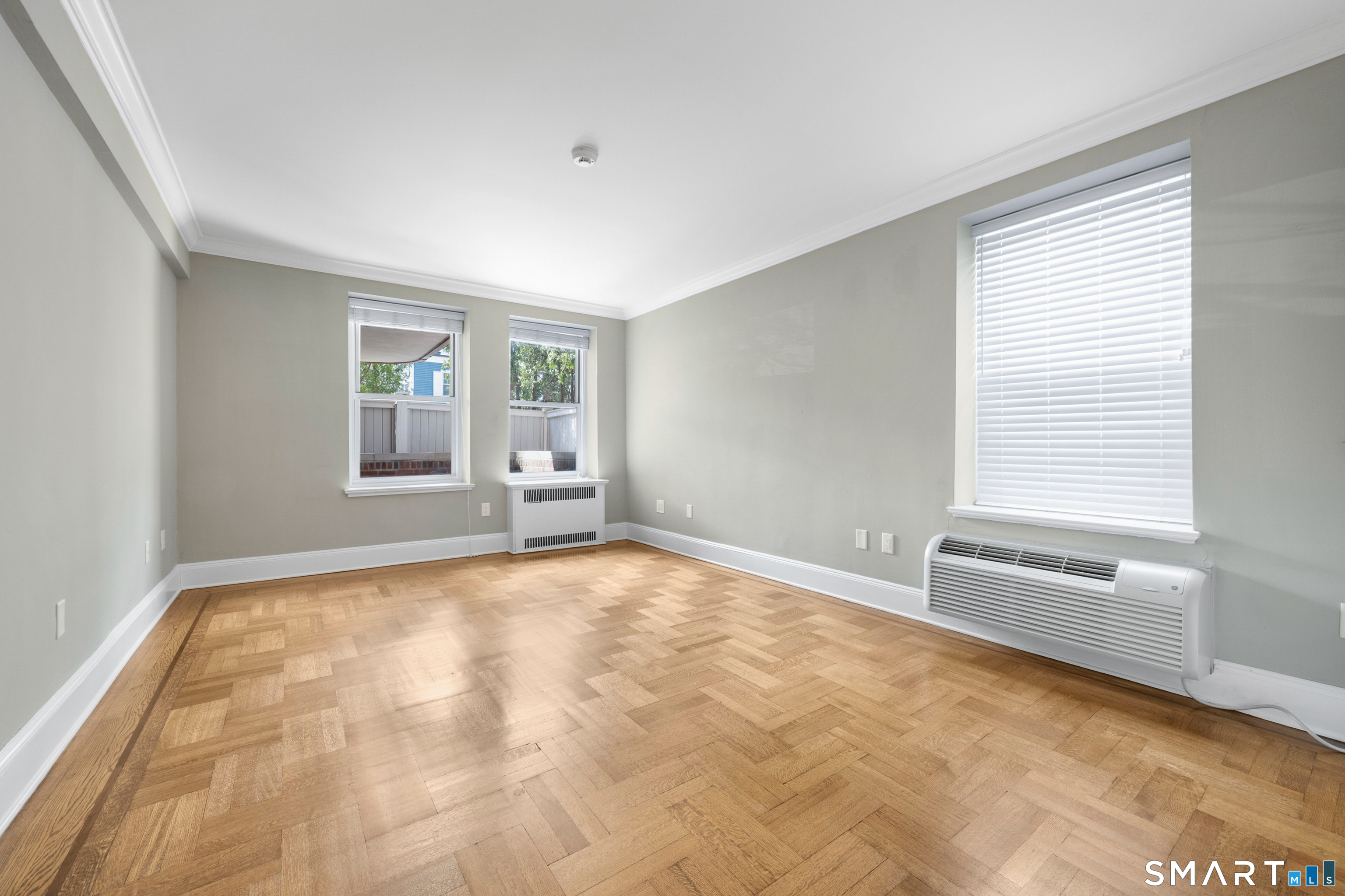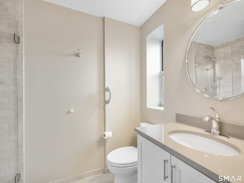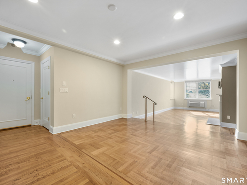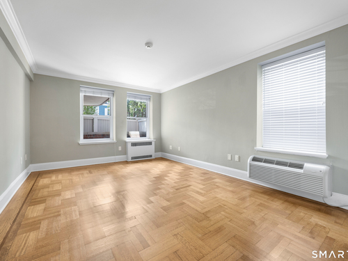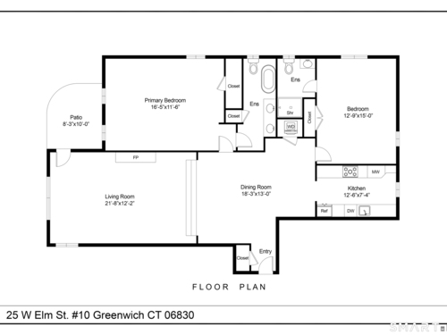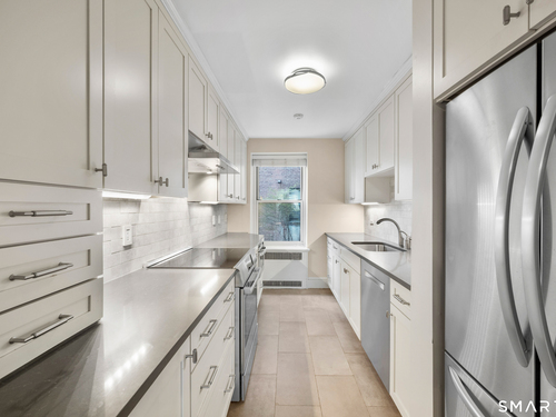 Exquisite, turnkey 2 bedroom, 2 bathroom residence located on the first floor of an elegant, full-service doorman building in the heart of downtown Greenwich. This beautifully renovated 1,250 sq ft home offers a seamless blend of sophistication and comfort. The thoughtfully designed interior features a chef's kitchen outfitted with premium Bosch appliances, opening into a gracious dining area and an additional sitting space ideal for both everyday living and entertaining. A sunken living room with a fireplace creates a warm, inviting atmosphere and leads to a private, covered terrace perfect for outdoor dining. Additional highlights include hardwood floors throughout, high ceilings, and generously proportioned rooms. Located just moments from Greenwich Avenue, 25 W Elm offers exceptional amenities, including a full-time doorman, assigned parking, and private storage unit. Move-in ready and ideally situated this is downtown Greenwich living at its finest.