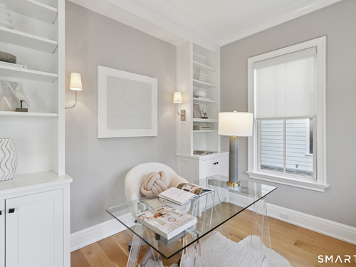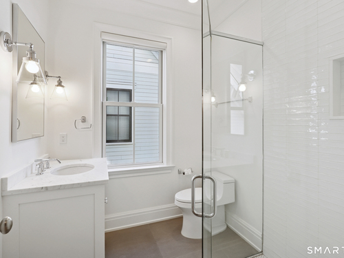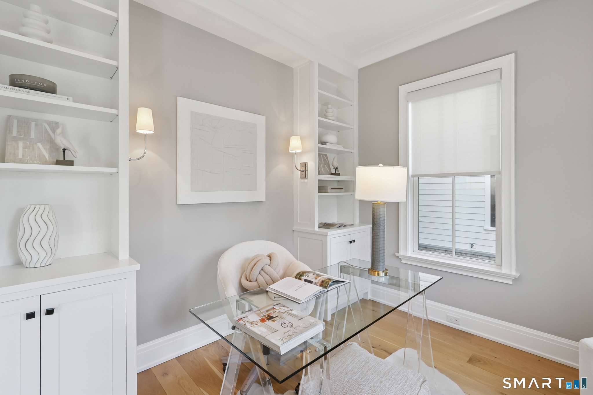 Single-family home, positioned at the rear of Avenue Terrace, a private six-home enclave in Downtown Greenwich constructed by Orlando Development. Exceptionally bright family room, Sub-Zero and Wolf appliances, gas fireplace, custom built-ins, separate first-floor office, and space available for future elevator installation. Primary bedroom beamed ceiling, fully outfitted walk-in closet and dressing room, luxurious primary bath, and separate laundry room. Second bedroom with private bath and large custom closet. Lower-level family/media room or gym with built-ins and gas fireplace. Sun-filled bedroom with full bath. Multiple closets for storage. Private fenced backyard and patio with professional landscaping. Four-minutes to the center of Greenwich Avenue and to Metro-North!