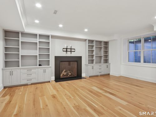 9 ft+ Ceilings, Built-Ins, Entertainment Center, Gas Log Fireplace, Hardwood Floor, Wide Board Floor