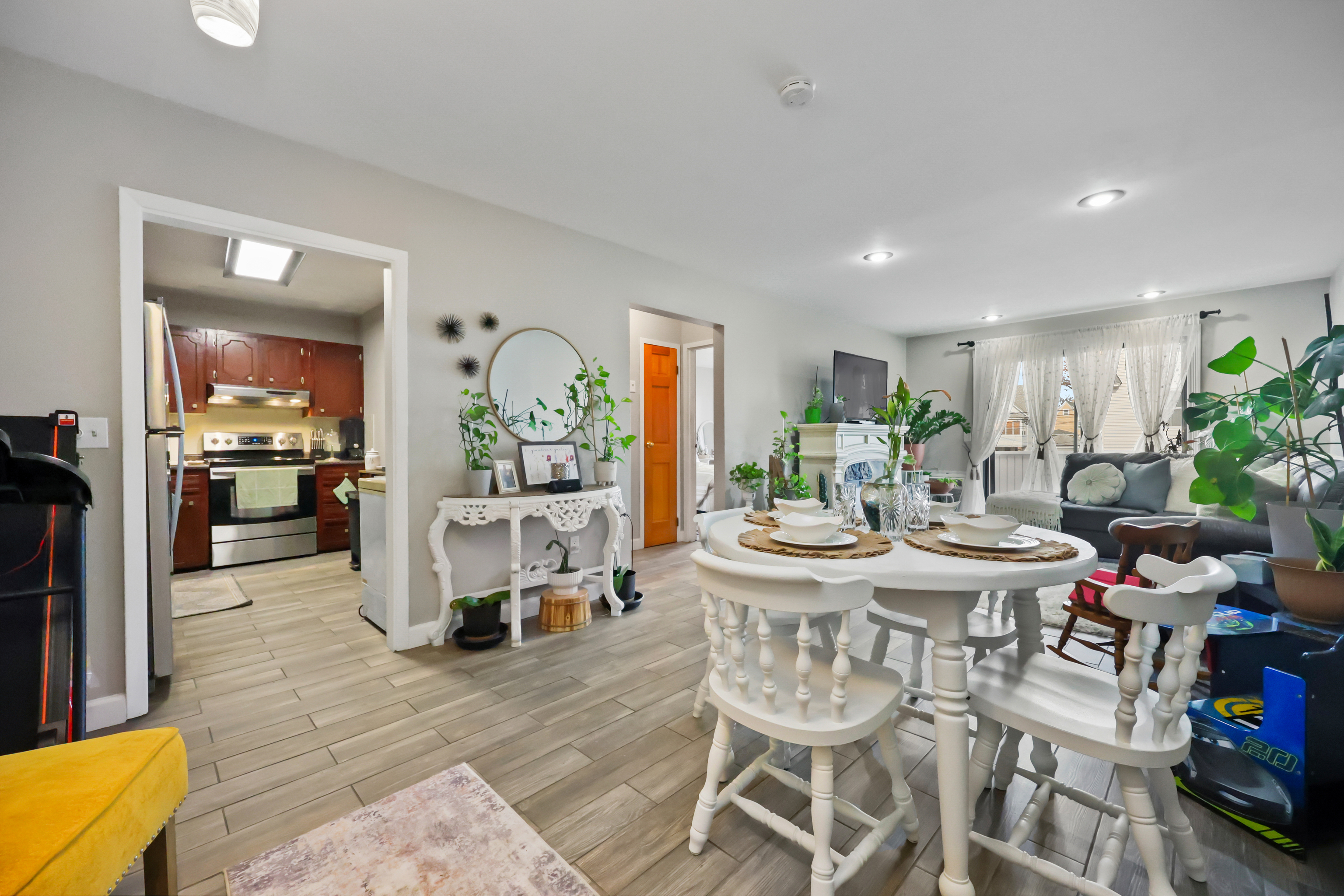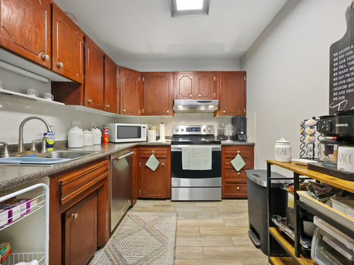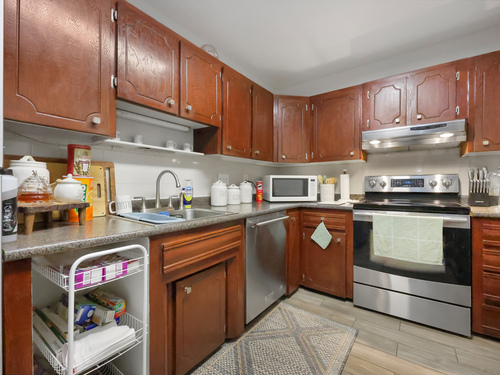 Cute & cozy ranch-style condo in a smaller well-kept complex, ideally located in Bridgeport's desirable North End. Enjoy close proximity to Sacred Heart University, the University of Bridgeport, major highways, and the train station-perfect for commuters. This adorable unit features a bright living room with sliders leading to a private deck, a dining area, a spacious bedroom, a well-appointed kitchen, and a full bathroom. Recent upgrades include new flooring throughout, plush bedroom carpeting, newer stainless steel kitchen appliances, and a brand-new A/C wall unit (2025). The bedroom A/C unit was also replaced within the last five years. The complex offers on-site laundry, private storage, and secure garage parking. Common charges conveniently cover heat, hot water, sewer usage, and insurance, keeping costs low making this unit very affordable. Investor-friendly with no rental restrictions, and pets are welcome. Move right in and enjoy low-maintenance living in a fantastic location!