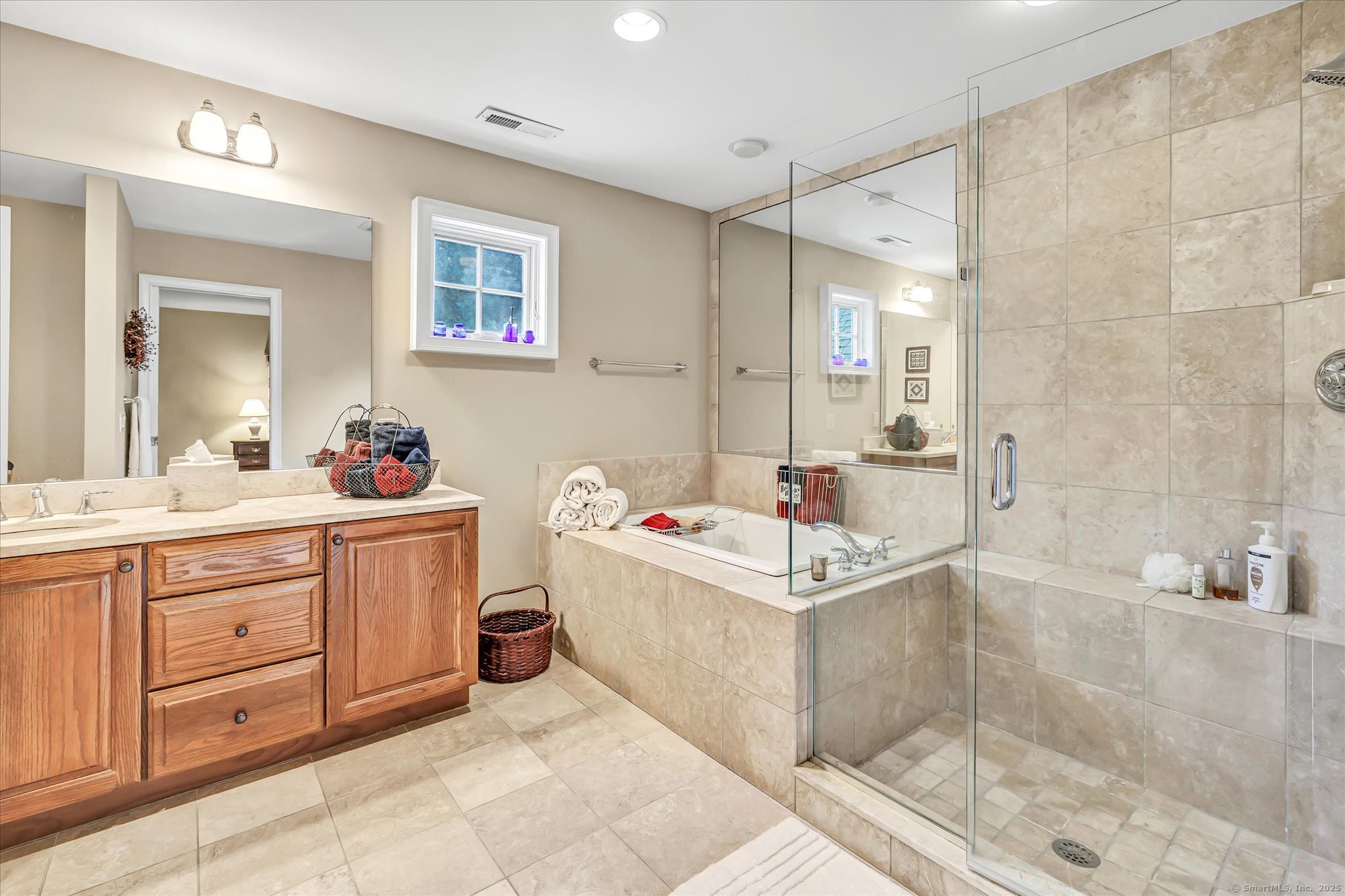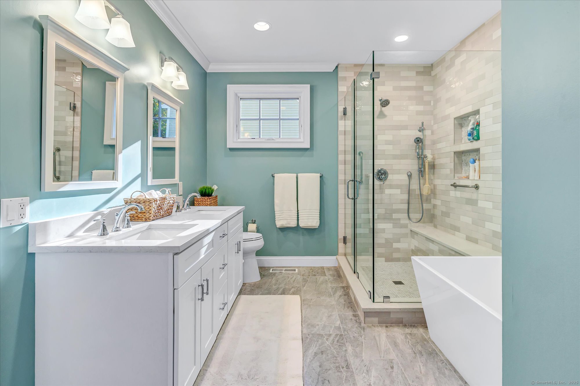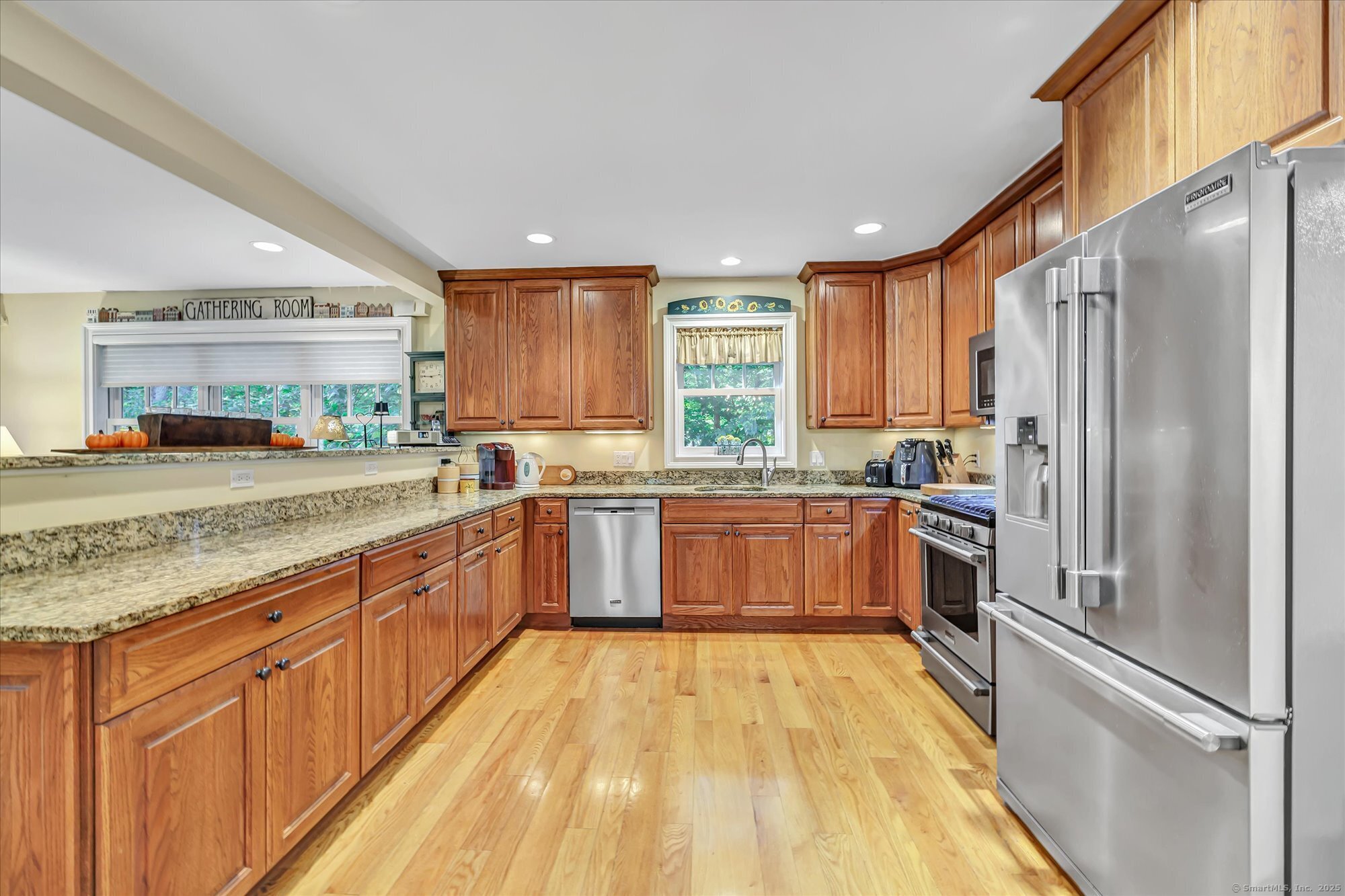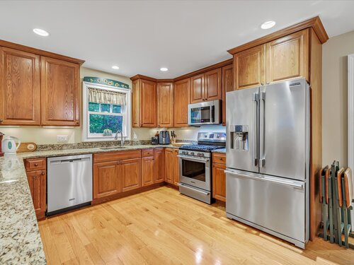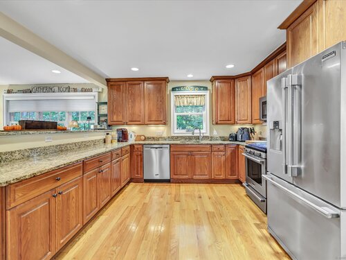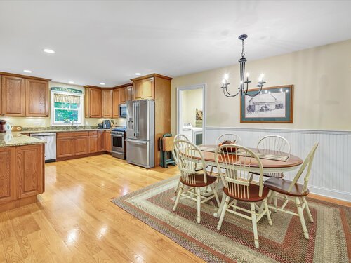 Charming New England Cape Cod with Modern Comfort & Convenience Welcome to this beautifully maintained and thoughtfully updated Cape Cod-style home, offering classic New England charm with all the modern amenities. Featuring 3 spacious bedrooms, 2 full and 2 half baths, and a smart layout that could easily allow for one-level living, this home is perfect for any lifestyle. The main level boasts an attached garage for easy access, a desirable first-floor primary suite with a remodeled master bath, and a main-level laundry for ultimate convenience. The bright and up to date kitchen flows effortlessly into living area and affords a large eat in area. Economical gas heat and cooling keep the home comfortable year round. Step outside to a low-maintenance private composite deck, ideal for outdoor entertaining or relaxing. The finished walk-out lower level is a true bonus, complete with a game room and family room with kitchenette, and abundant closet and storage space-perfect for hosting or creating your own personal retreat. Located just minutes from major highways, top-rated restaurants, and shopping, this home offers both serenity and accessibility. Whether you're downsizing, right-sizing, or looking for room to grow, this home checks all the boxes.
