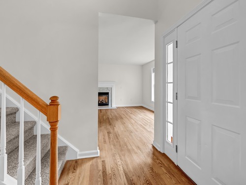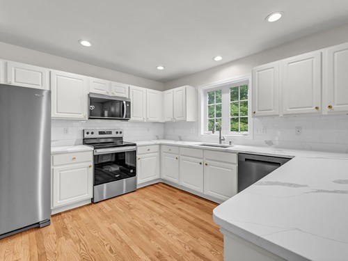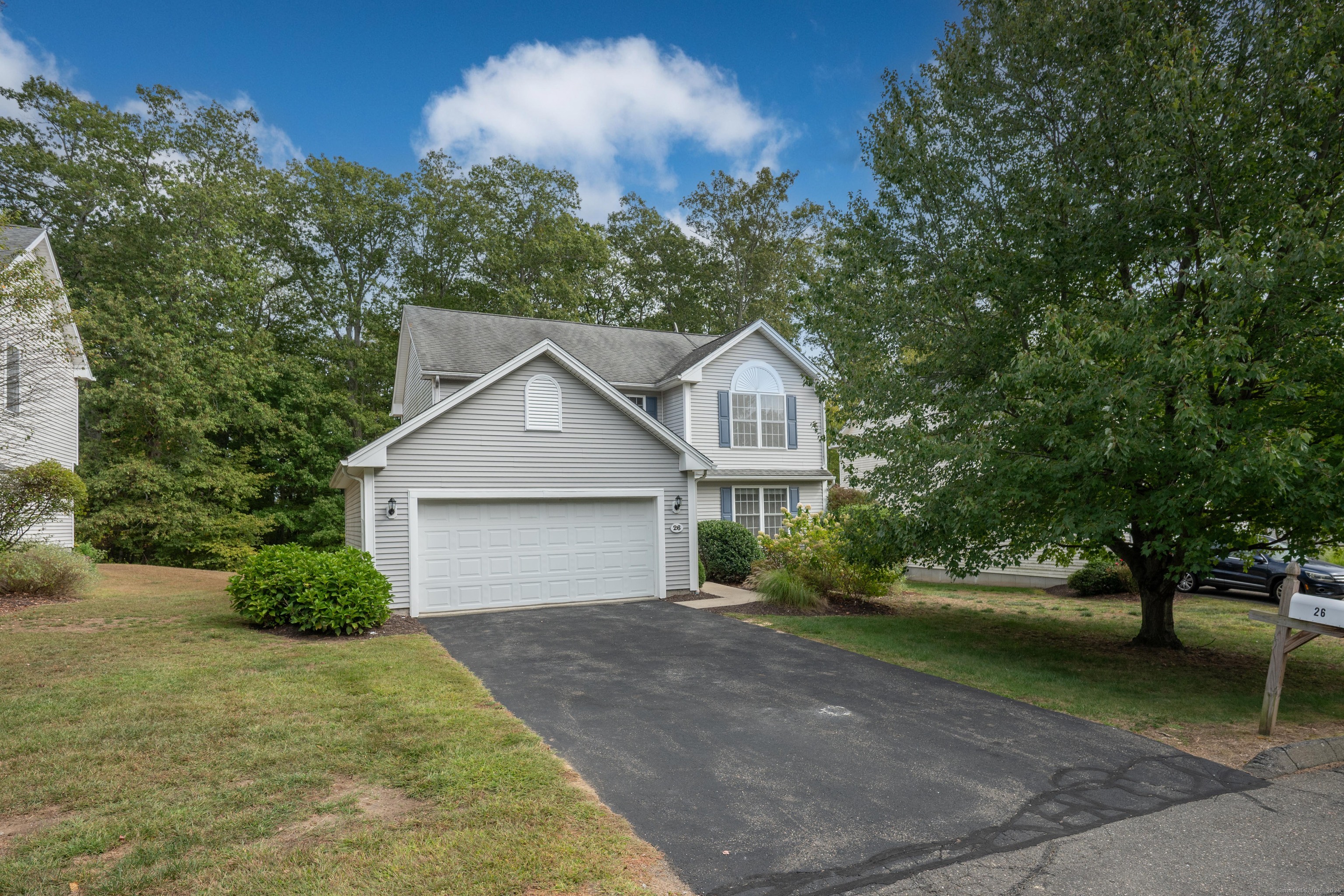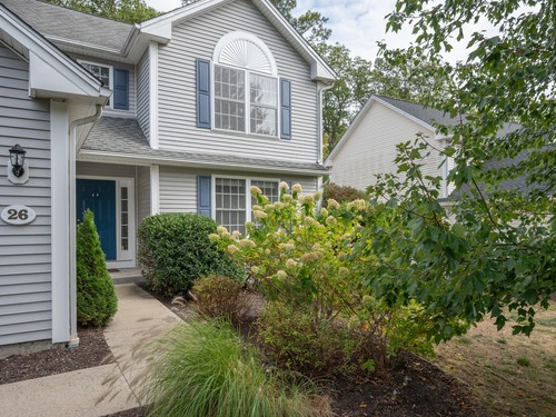 Beautifully updated 3 bedroom, 2.5 bathroom Colonial tucked away at the end of a quiet cul-de-sac. A two story entryway and newly refinished hardwood flooring greet you as you enter this bright and sunny home with new recessed lighting and paint throughout. The formal living room has a gas fireplace for staying cozy on chilly days and the formal dining room leads to the spacious eat-in kitchen with new Quartz counters, new stainless steel appliances, breakfast bar and dining area that walks out to the private back deck and yard. There is also a convenient half bathroom on the main level, plus a mudroom/laundry room leading to the two car garage. Upstairs there are three spacious bedrooms with brand new carpeting, plus two bathrooms, including a primary suite with walk-in closet and large full bath with dual sinks and walk-in shower. The lower level is fully finished with a huge bonus room, ideal as a home theater, office or play space. There are also numerous storage closets and a separate utility/storage room. All set on a perfectly level yard at the end of a cul-de-sac atop a hill, with easy access to the White Oak Estates playground and gazebo, yet located just a few minutes to I-84, Target, Walmart and tons of shops and restaurants. Common charges include exterior maintenance, including lawn care and snow removal, so come enjoy a mow-free summer and snow-free winter!