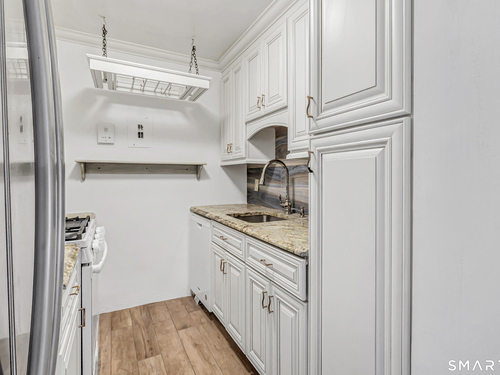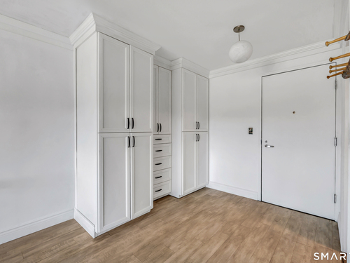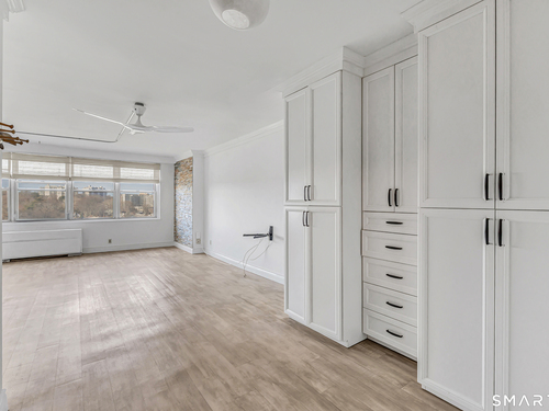 Simplified living in this upscale Condominium Association. If you're looking for a rental alternative, downsizing, or just wish to add to your real estate investment portfolio in a convenient and safe location, then this is worth your consideration. Secured building with a 24/7 security guard. This studio apartment has a great open floor plan with built-in storage space, custom cabinets and granite counter tops. Heat, hot water and gas are included in the HOA fees. Has a beautiful Olympic sized Heated Pool , Tennis Courts, Updated Workout Room, Library and the Green Room available to residents for entertaining. The beautifully landscaped grounds and a Park-like atmosphere help take you away from the daily grind! Close to 95, the Merritt Parkway, steps away from bus stop. Assigned parking in underground garage with additional parking outdoors. There is even a dog park behind the building. These units go fast!