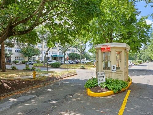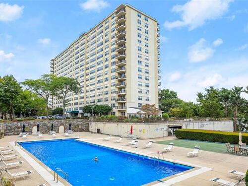 Beautiful Embassy Towers. This renovated unit features upgraded new flooring, open floor plan with extra-large living room open to dining room and kitchen. Kitchen features newer quartz counters, newer tile backsplash, newer gas range, microwave, ref, dishwasher, pantry. Large primary bedroom with terrific closet space and newer flooring. Newer bathroom with large walk-in shower. Olympic sized heated swimming pool with extra-large patio for all your entertaining wants and needs. Tennis court, gym, garage parking, library and green room for interior entertaining. Storage room in lower level. The only bills will be electric and cable.