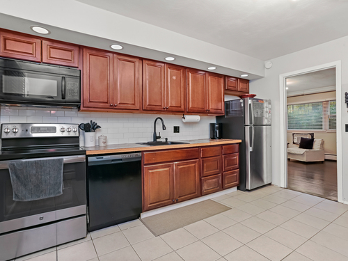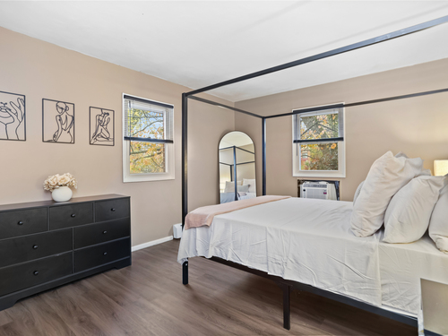 Remodeled two-bedroom ranch-style unit on first level. Features include-two spacious bedrooms, living room, and eat-in kitchen w/ newer appliances. The bathroom has been upgraded with white subway tile, a sleek vanity, and modern matte-black fixtures. Additional highlights include a deck off the kitchen-perfect for relaxing or entertaining, fresh paint and new flooring throughout. Washer/Dryer hook-up can easily be added in closet off bathroom. The complex provides reserved parking, private basement storage & common laundry. Common charges conveniently cover heat, hot water, and sewer, making this unit exceptionally affordable. Pets are welcome! Located in the desirable Upper North End, this home is close to Sacred Heart University, parks, shopping, and all major highways. CASH OFFERS ONLY - Schedule your showing today!