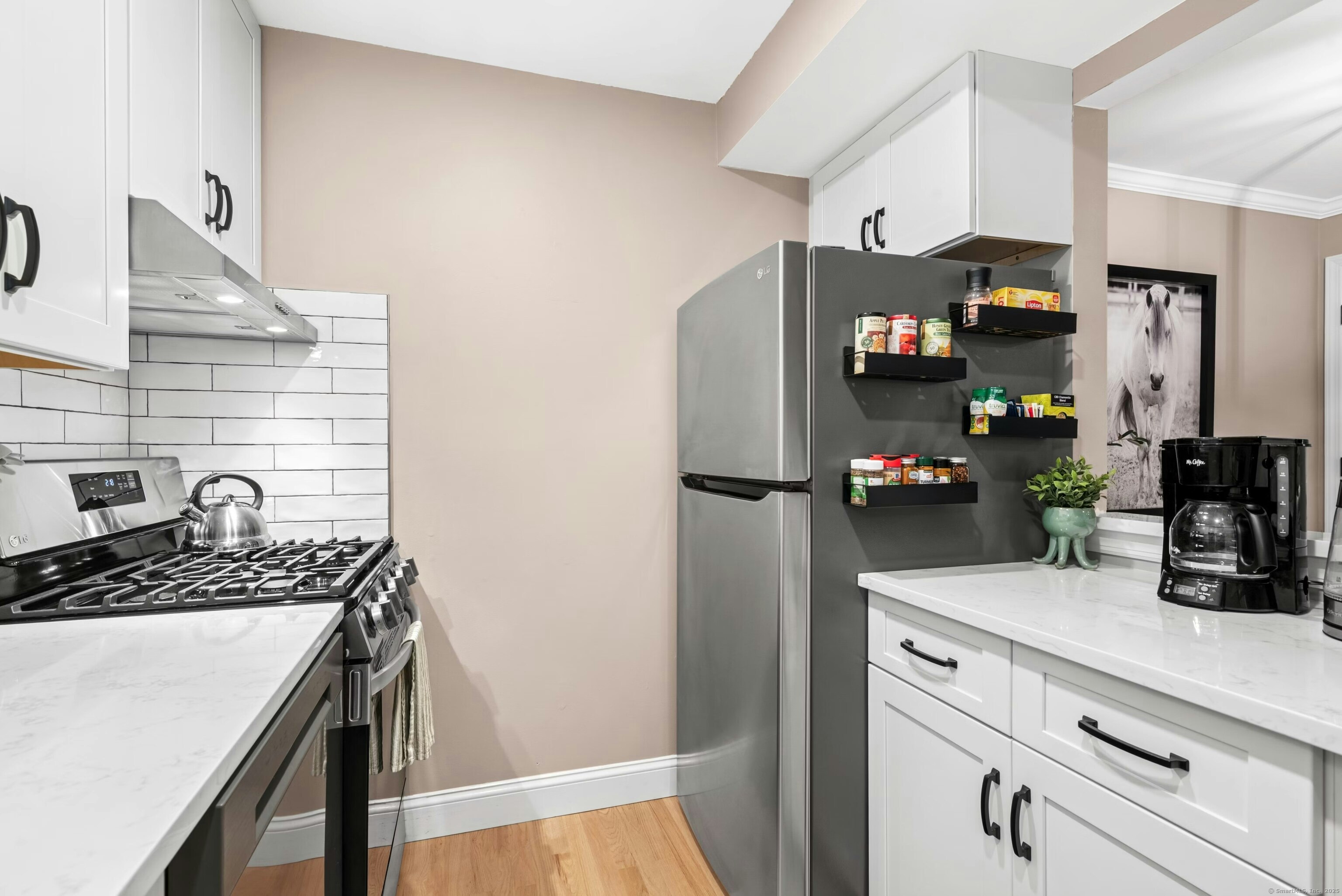 Welcome to Fox Hill! This beautifully updated 1-bed/1 bath unit offers modern comfort and a bright, open layout in one of Ridgefield's most desirable communities. Full renovation completed in 2024 with crown molding throughout, recessed lighting in every room, new kitchen, appliances, and refurbished hardwood flooring just to name a few. Enter into a spacious living room with an open floor plan that flows into your dining area and all new kitchen with shaker cabinets and quartz countertops. Relax the stress away in the luxurious bath with a soaking tub or enjoy a meal outside on your private patio. Fox Hill has so much to offer, including a pool, clubhouse, and walking paths. Just minutes from Ridgefield's vibrant Main Street with shopping, dining, and cultural attractions. Carefree, convenient living in a beautiful setting!
