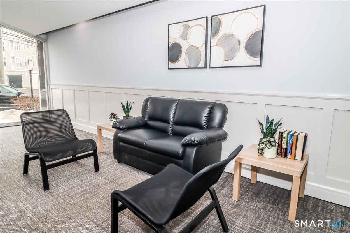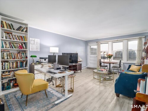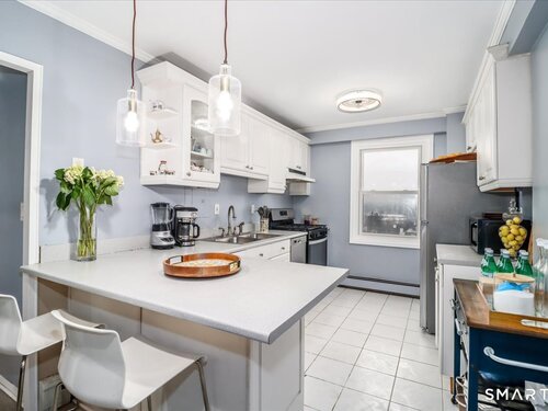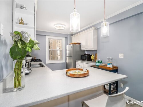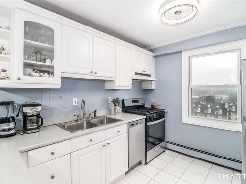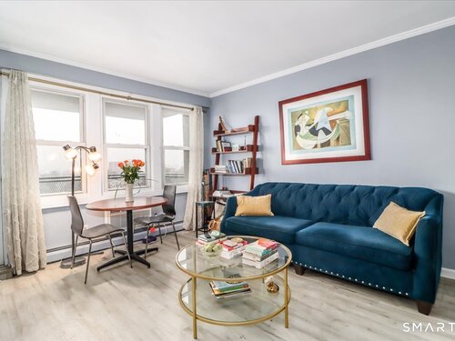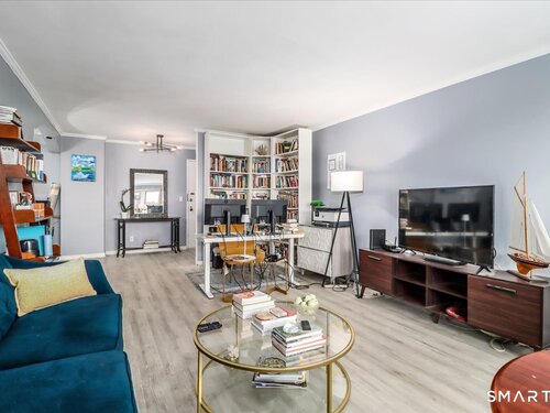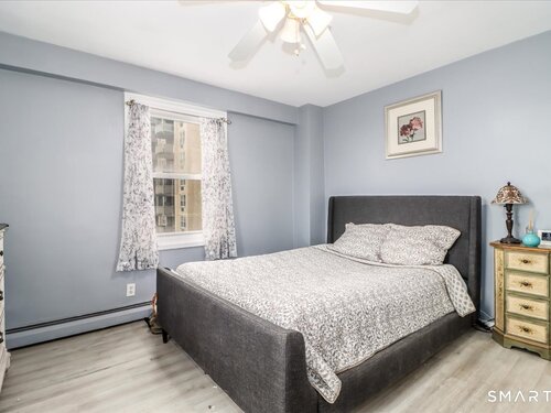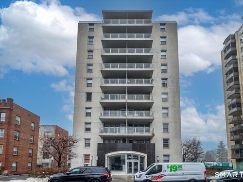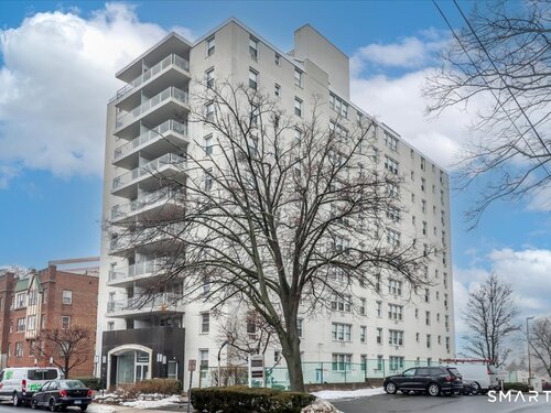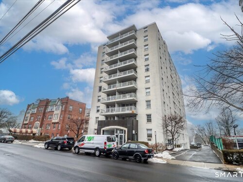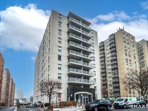 Bright, spacious one-bedroom condo with balcony, ideally situated on Glenbrook Road, just minutes from vibrant Downtown Stamford, Metro-North, and I-95 for effortless commuting. This move-in ready unit features new kitchen appliances (refrigerator, dishwasher, oven range, and microwave), and fresh paint throughout, offering a clean, modern feel from the moment you step inside. The open layout provides comfortable living and dining space, complemented by a generously-sized closet located just outside the bedroom, providing additional storage. Bathroom has a new vanity. One assigned parking space (#38) is available for $25/month. Heat and hot water are included in the monthly HOA, adding value and convenience to this low-maintenance home. Laundry rooms (floors 2-9) have new washers & dryers. Recently installed intercom system w/video feature. On-site Superintendent. No rental restrictions and no pets. Living room bookcases included in sale or can be removed. Please note that there is a 10-day right of first refusal, triggered by an accepted offer, per the Crosswinds Condominium Association By-Laws.