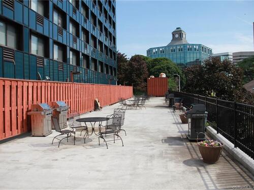 Investors take note, tenant in possession through end of July 2026. Fully updated, impeccable 1 bed that has everything a tenant looks for from walk to downtown location, covered, assigned, garage parking, washer/dryer in unit, patio w/ grills, a/c, and gym. This is a totally updated one bed w/ in unit washer/dryer steps to vibrant downtown Stamford's amazing dining and entertainment district. Kitchen is fully open to living room, open floor concept. Granite counters, stainless steel appliances (dishwasher, range, microwave), breakfast bar. Large living room with wall of windows, updated full bath. Good sized bedroom w/ two closets (plenty of storage), wall of windows, very bright throughout entire unit. All floors are high-end viynal, newer paint. Complex has onsite super, gym, and beautiful back patio w/ 3 gas Weber grills for summer BBQs. Hot water, parking, cold water, garbage, sewer, use of gym and BBQ patio, all included in monthly HOA fee's, no additional charges for these items. Lots of large capital improvements have already been performed, building is in great shape. Easy access to all major commute routes within minutes, I95, train, Merritt, etc. Walk to downtown, Target, all the bars and restaurants, ideal location, can't be beat for the price. Come have a look and be impressed.
