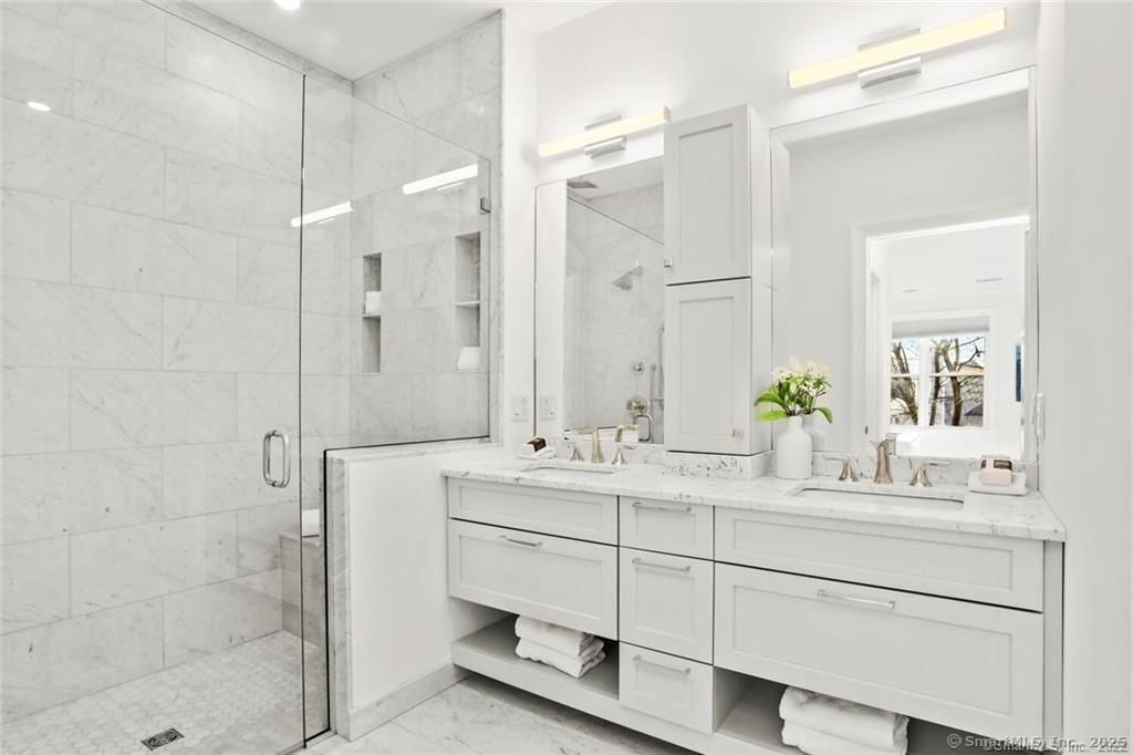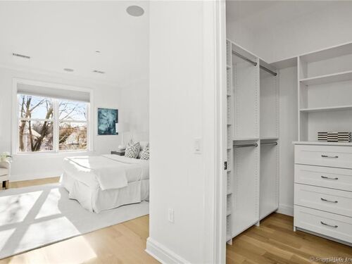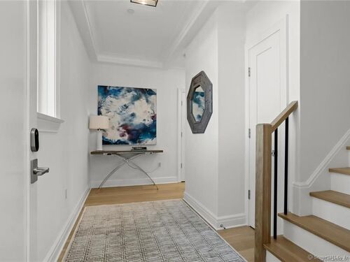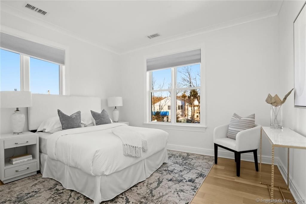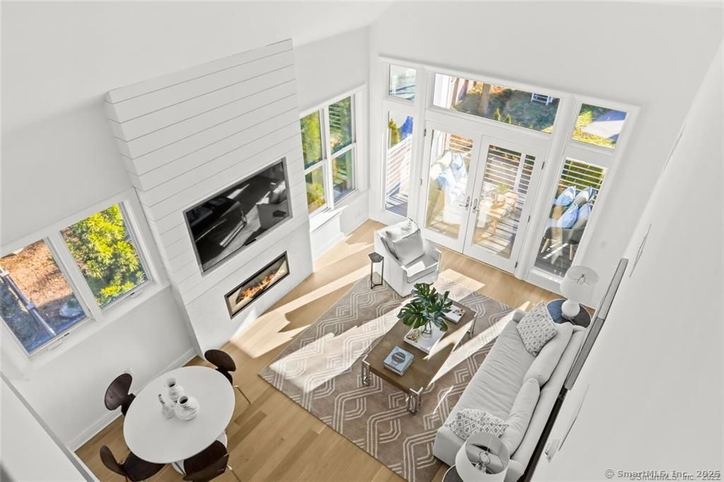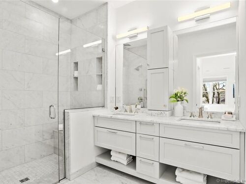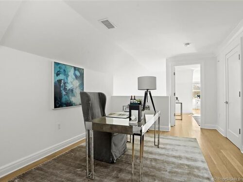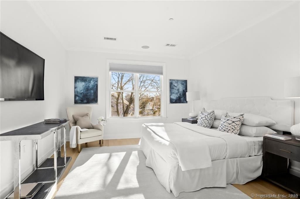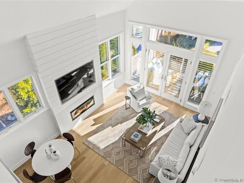 Welcome to Gramercy Park! Exquisite, boutique enclave of ten luxury residences nestled in the heart of sought-after New Canaan, CT. Private & pristine, this exceptional 3 bedroom, 3.1 bath penthouse residence seamlessly blends impeccable style with optimal function, across a generous 2,417sf of carefully curated living space, complete with elevator access. On the main level, a flawlessly appointed Chef's kitchen with top-of-the-line SubZero/Wolf appliances, wine refrigerator, custom cabinetry & marble countertops, w/easy flow to an elegant main living/dining area. Two light & bright primary bedroom options (1 main, 1 upper) with spa-like full baths w/marble finishes, generously-sized walk-in closets w/custom built-ins; plus, 3rd main floor bedroom w/en suite full bath & WIC; flexible office, private laundry & guest half bath. Soaring 20' ceilings & double height windows bring the outside in w/ample natural light throughout & a phenomenal upper-level family room, open to below. Outdoors, a stunning & private, oversized covered balcony overlooking the serene community garden for year-round enjoyment with private walkway access to East Avenue; 2 dedicated parking spaces (one covered - #302), plentiful guest parking & complimentary use of the community clubhouse with outdoor kitchen, seating and fitness center w/TV & Internet access. Offering secure entry & 24-hr package room for peace of mind, a modern sanctuary brimming with charm, steps from dining & shops - all 1 hour from NY