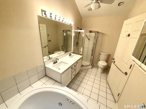 Primary Br Suite (Main Level)Cathedral Ceiling, Full Bath, Stall Shower, Whirlpool Tub, Walk-In Closet, Wall/Wall Carpet